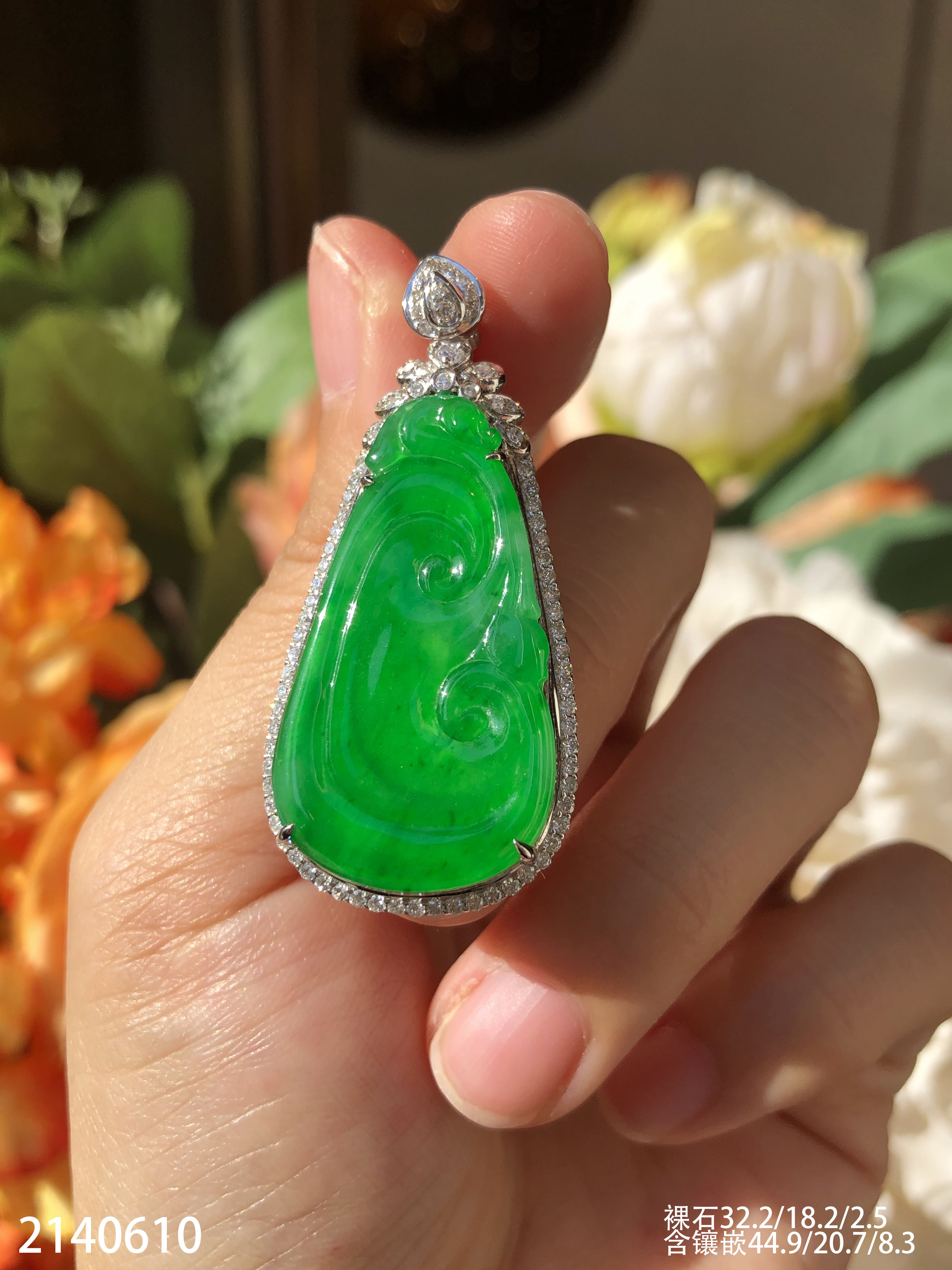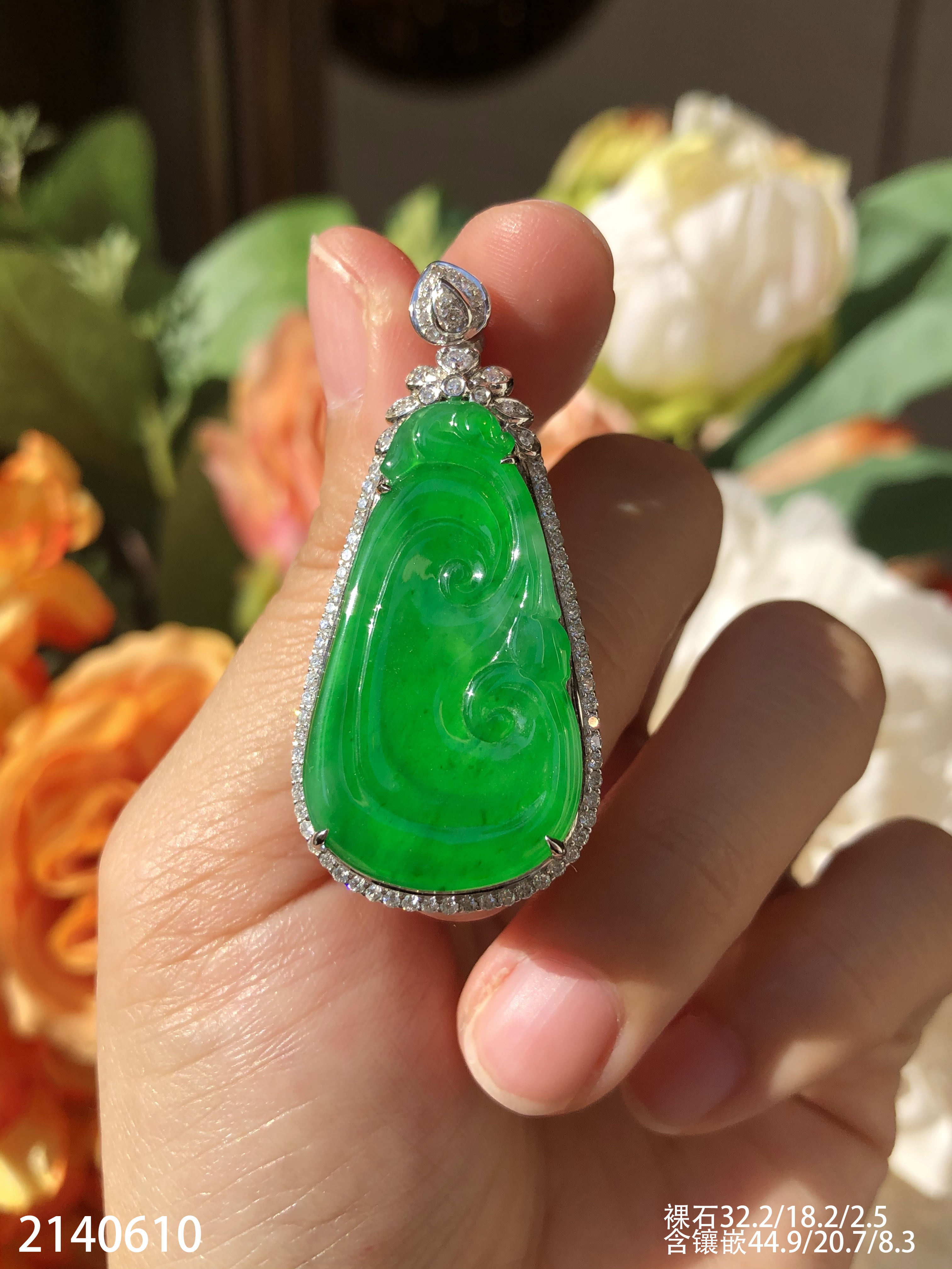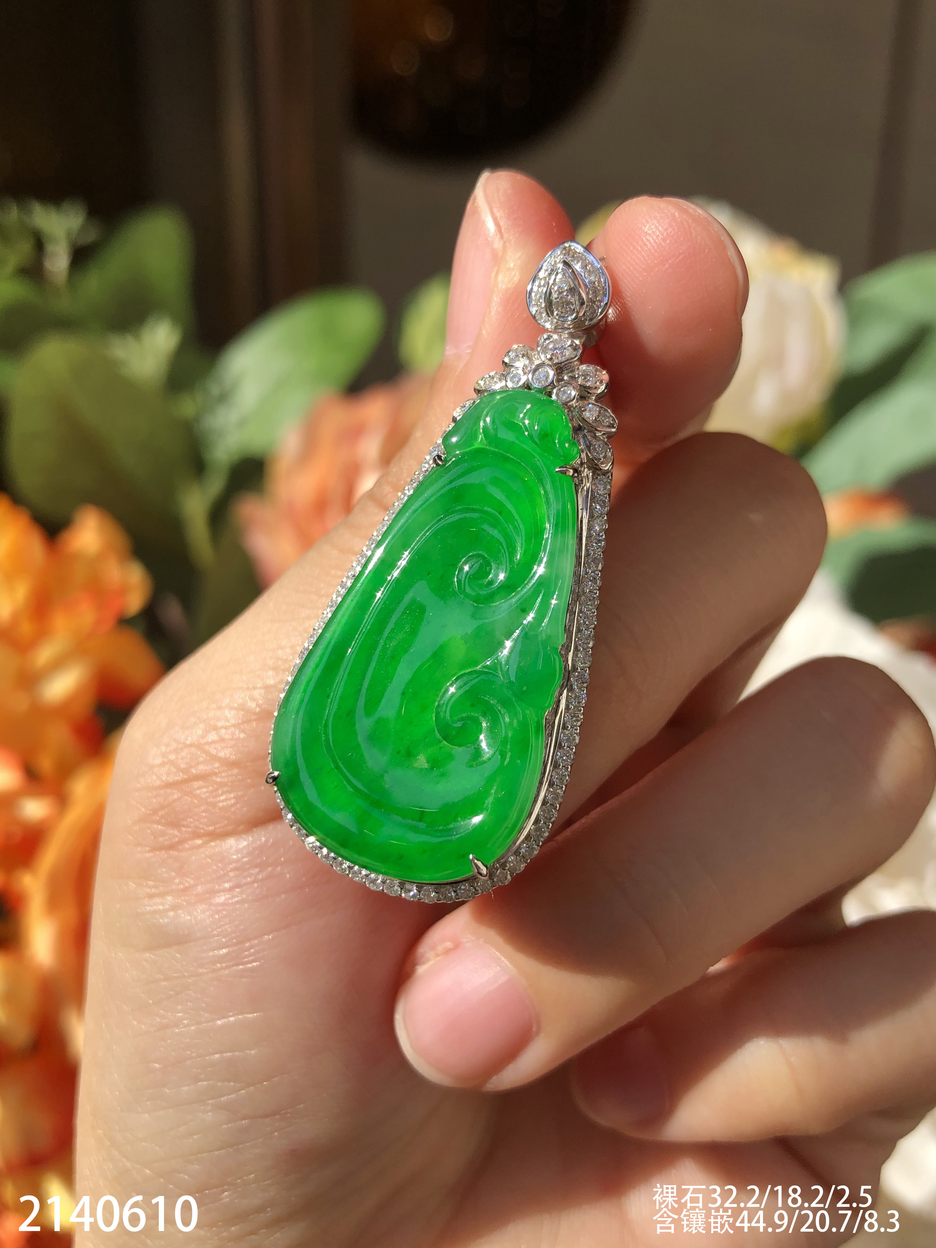 2140610,老坑冰艳绿如意吊坠,具体价格微信咨询