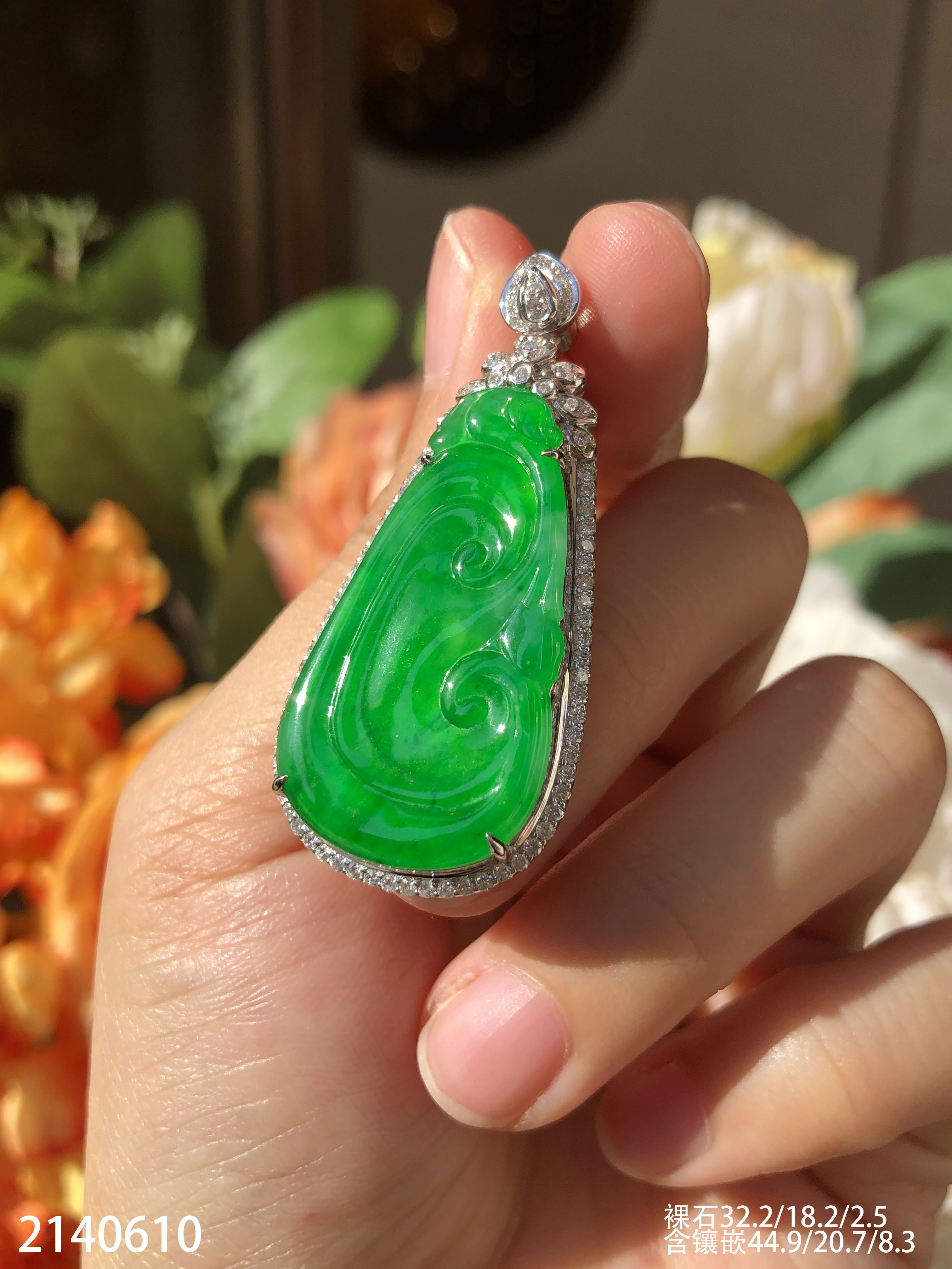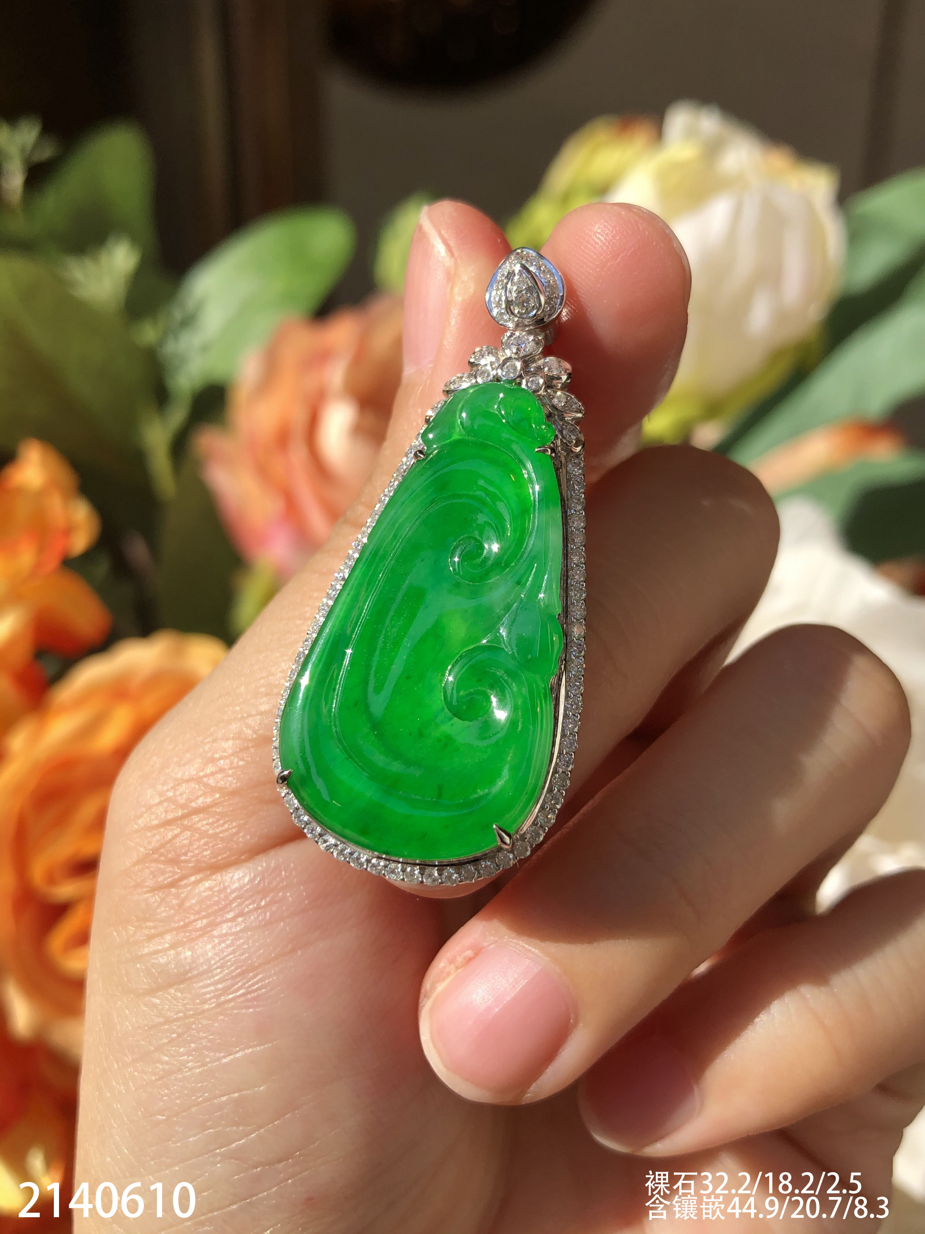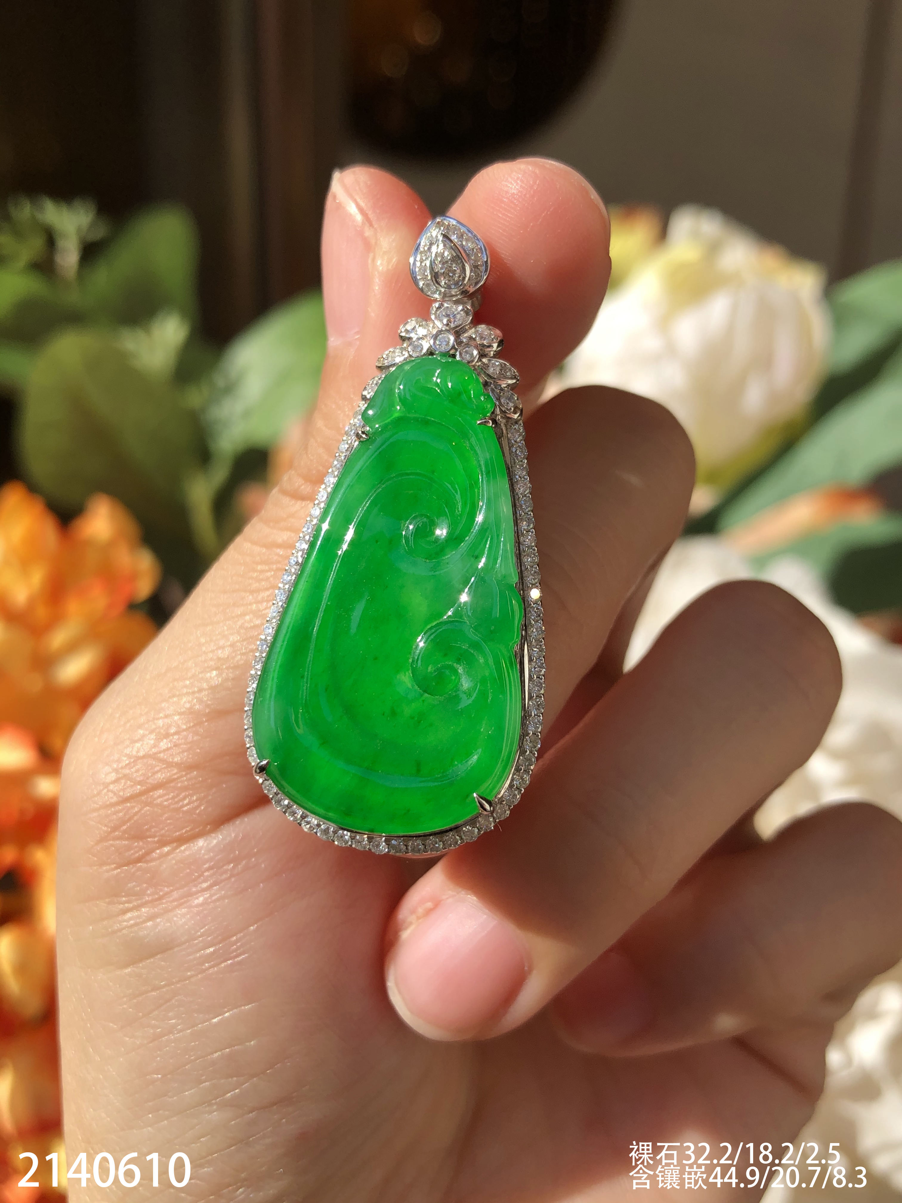 2140610,老坑冰艳绿如意吊坠,具体价格微信咨询