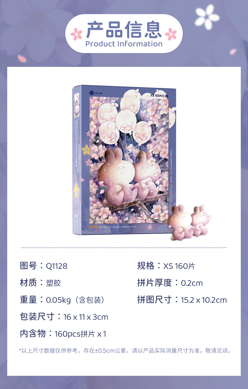 【折扣商品 不退不换】160片 迷你拼图 Q1128 Mai Tominaga-想与你一起赏樱