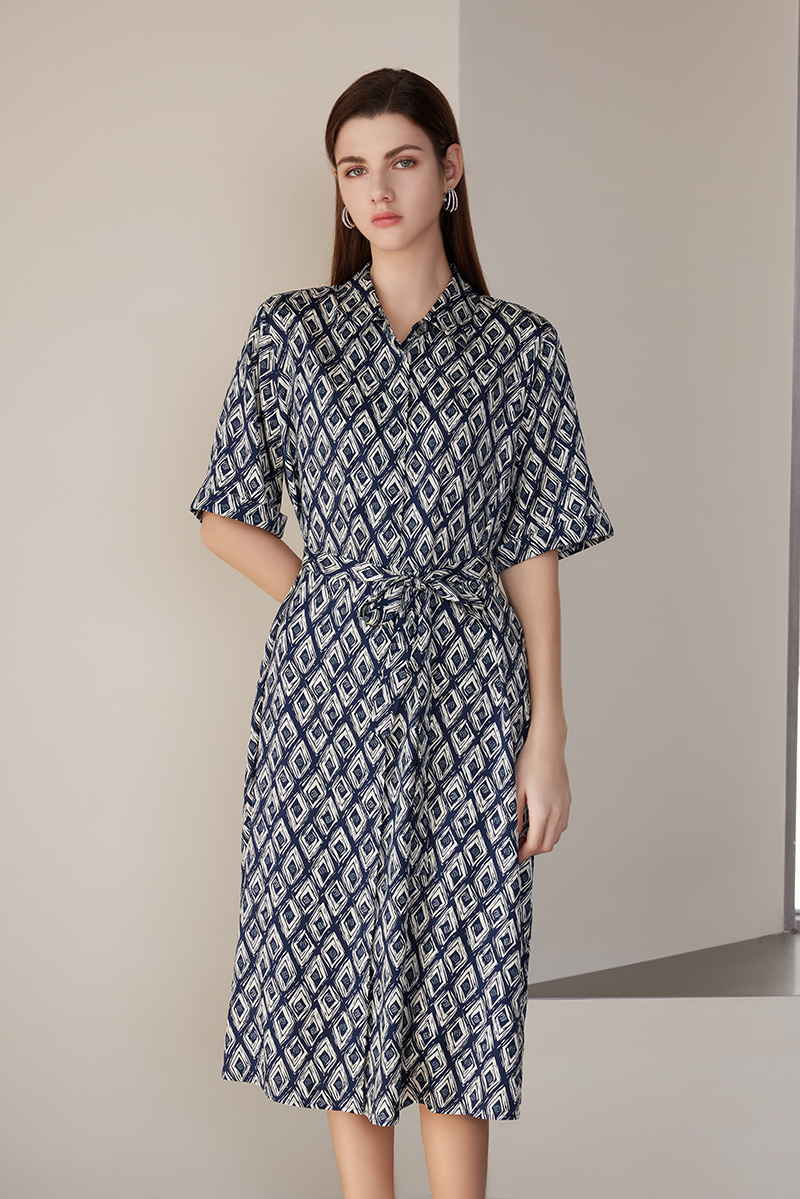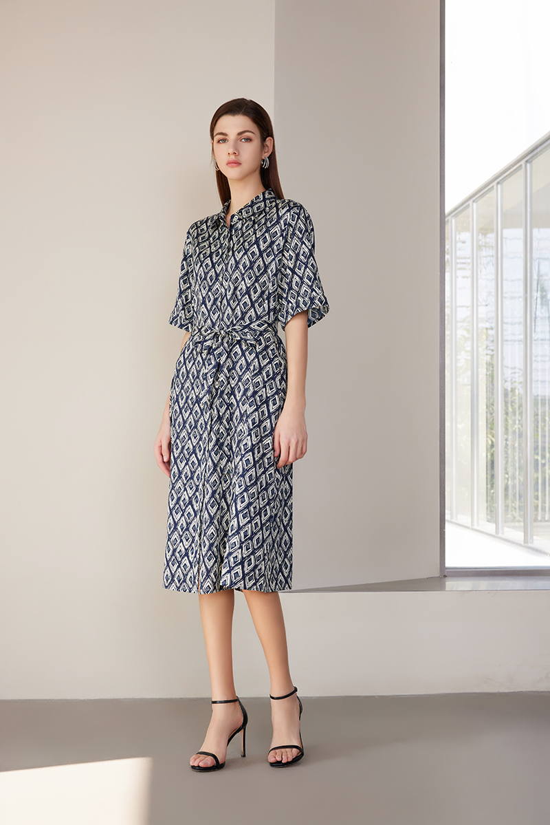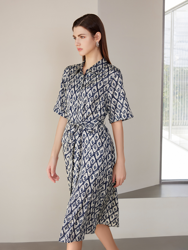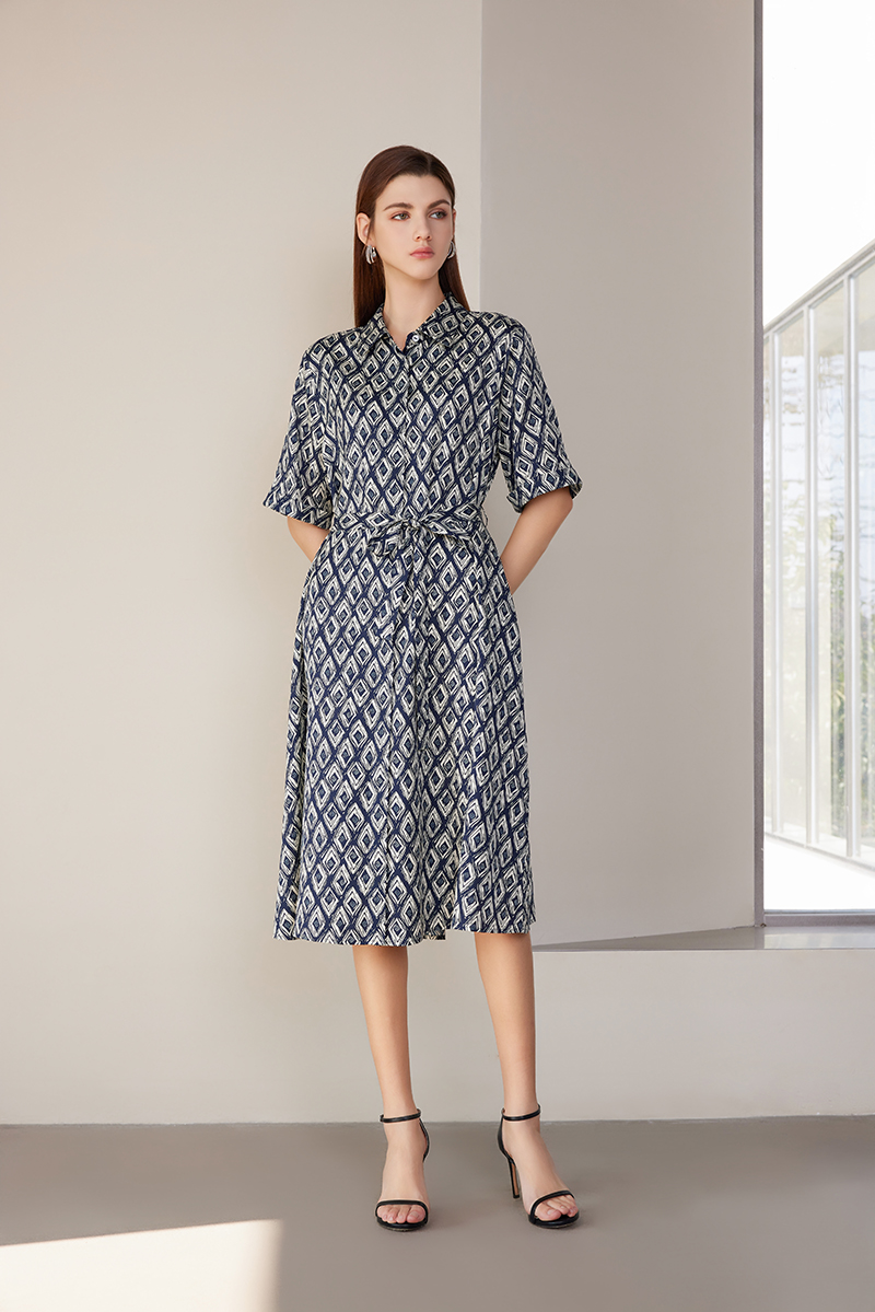 【桑蚕丝系带连衣裙】24年春夏新品女士中长款真丝系带收腰连衣裙