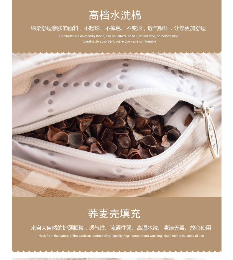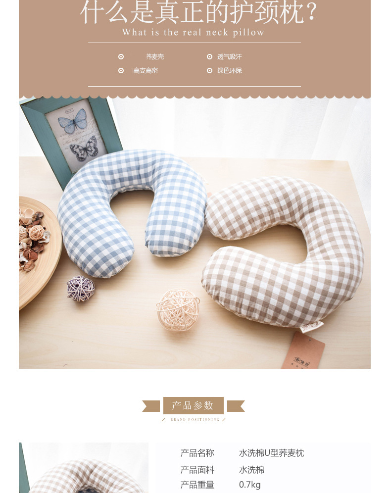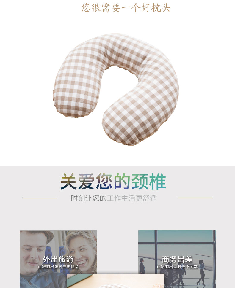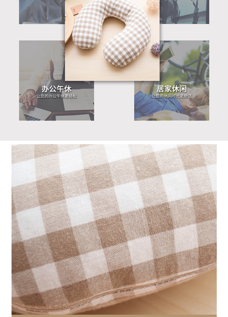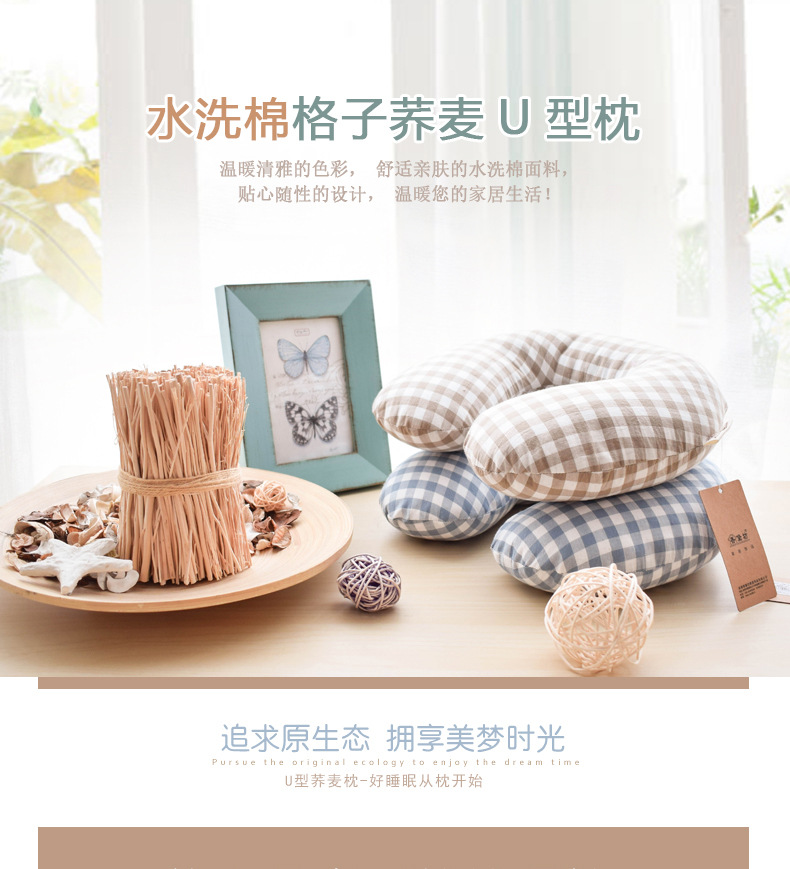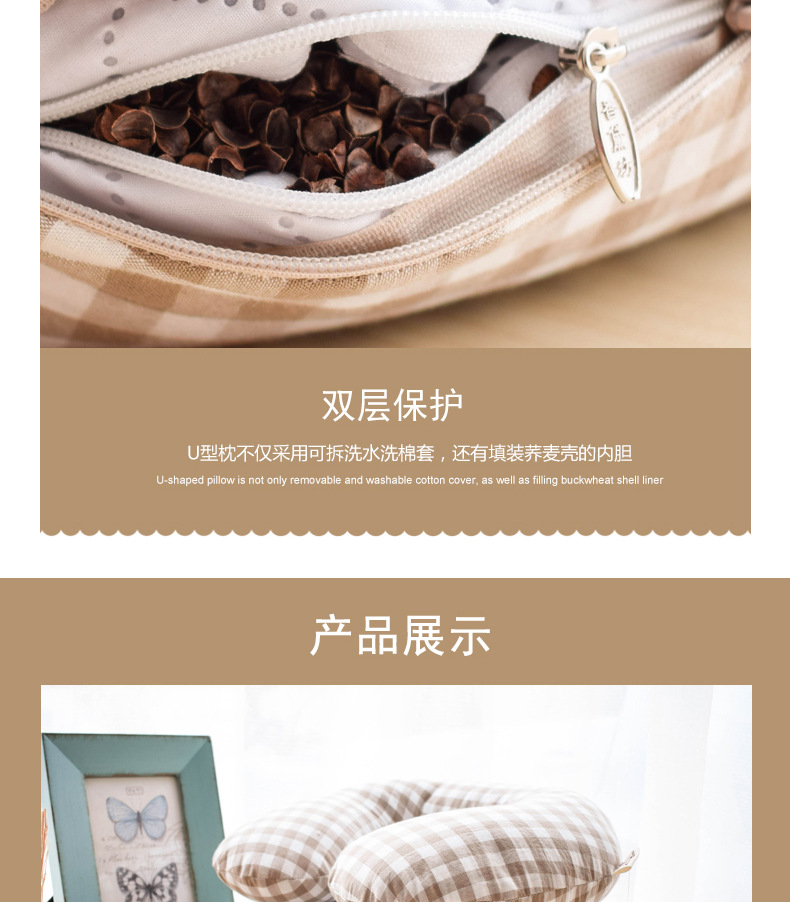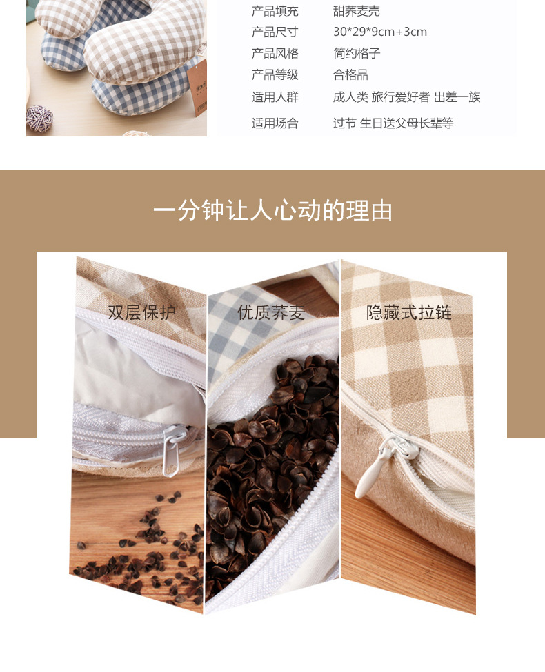 高枕无忧水洗棉U型枕 30*29*9CM U形护颈枕颈椎修复多功能办公室居家旅行荞麦壳可水洗