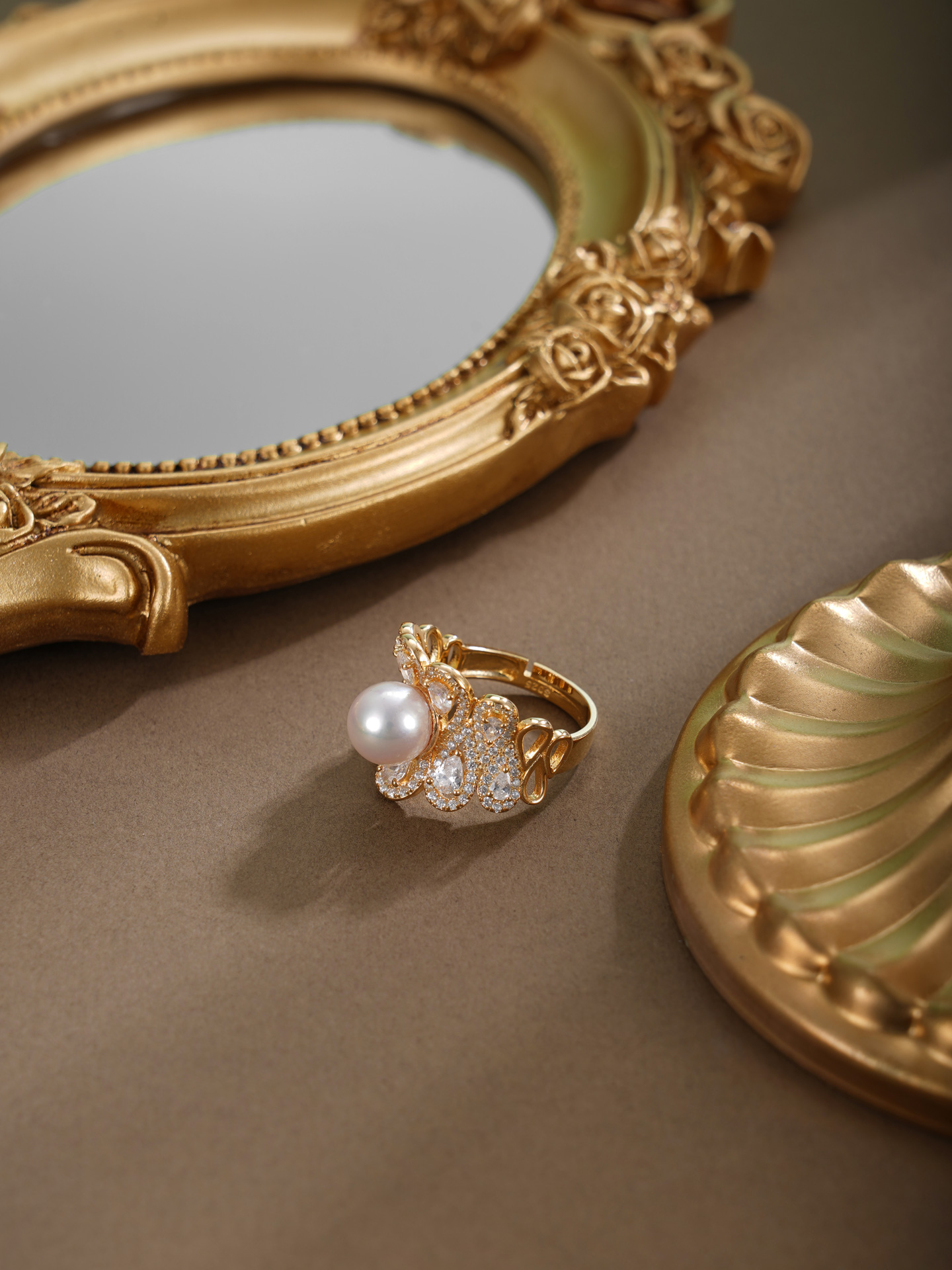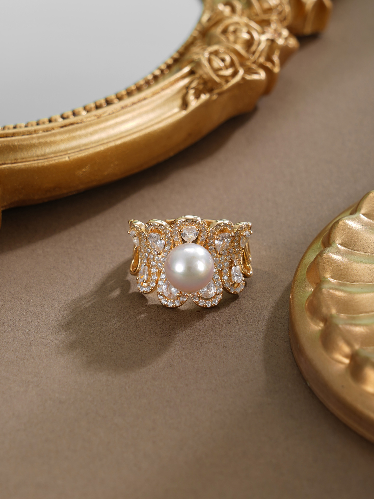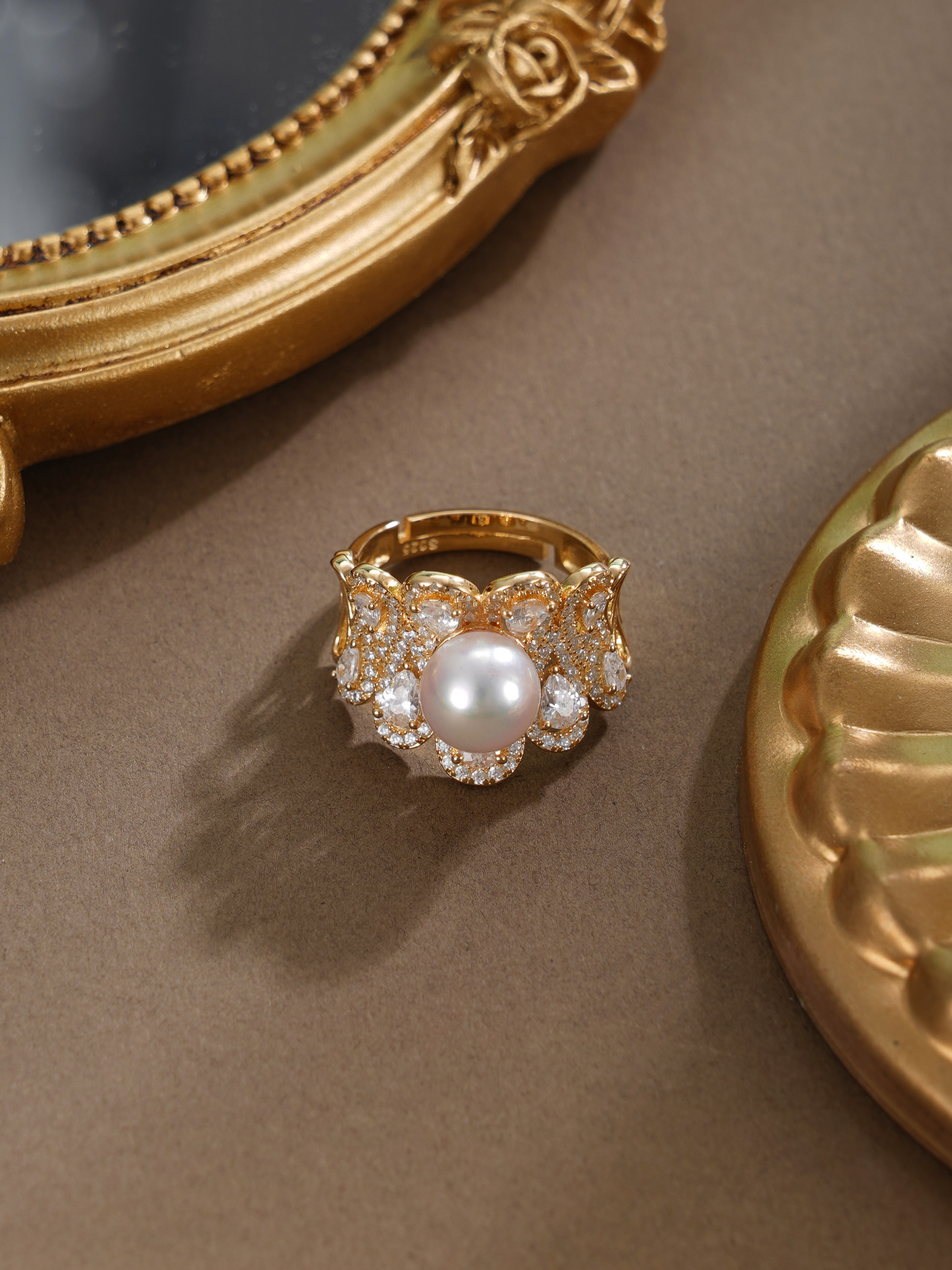 子佩集【女王加冕】银S925珍珠戒指【HJYJZ009】8mm珠镀金爱心水滴皇冠2512