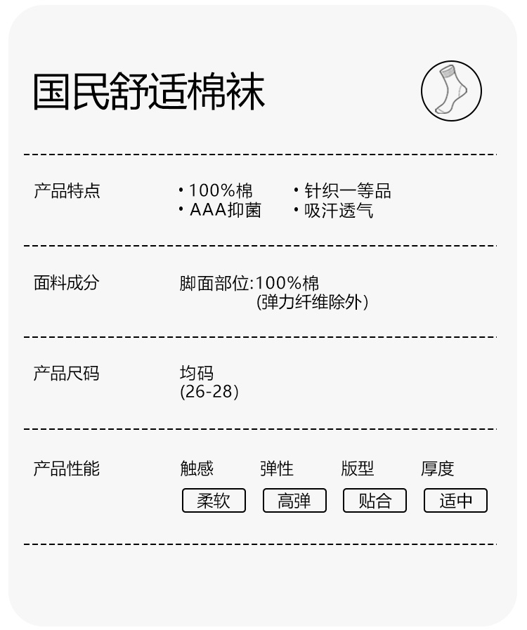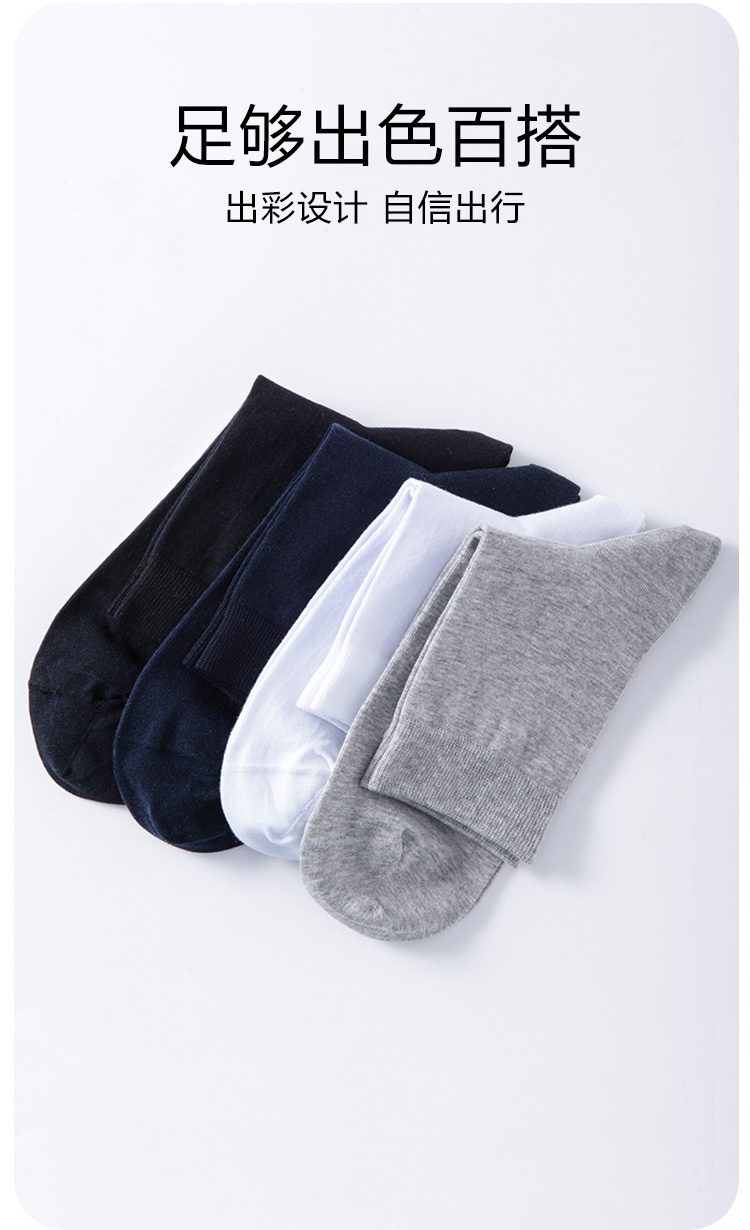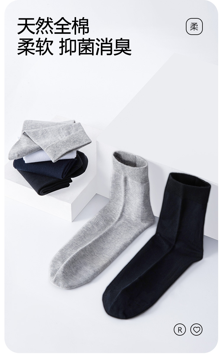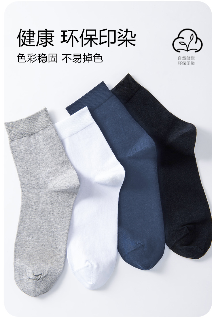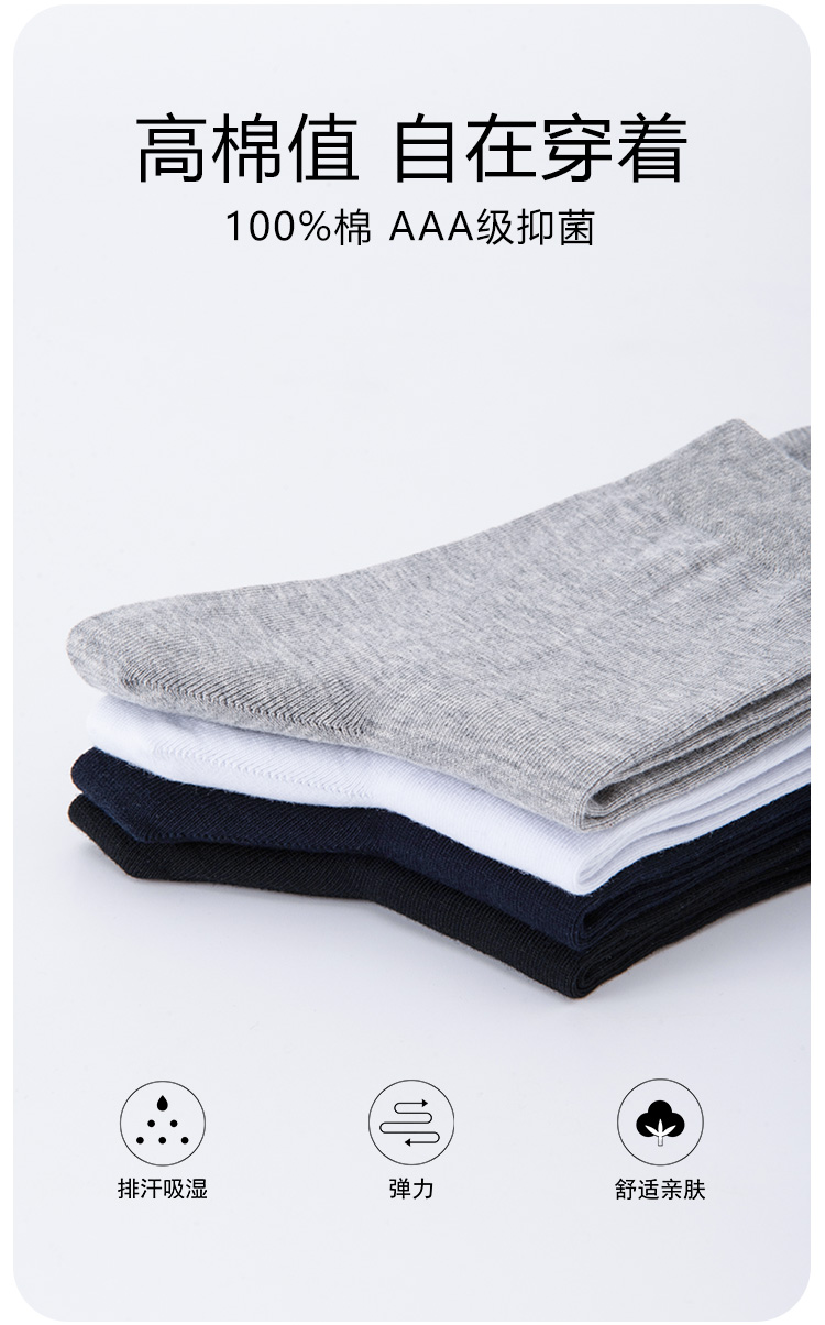 洁丽雅4双装纯棉男士中筒袜简约纯色舒适亲肤高弹百搭男袜