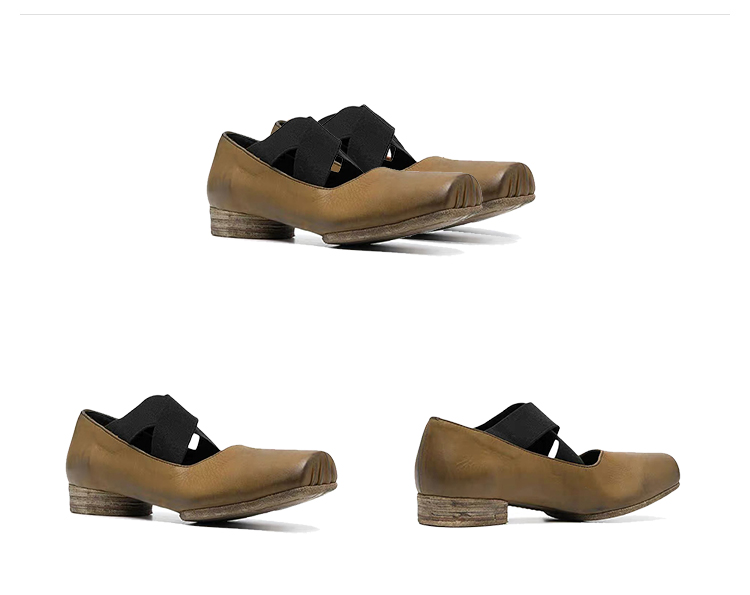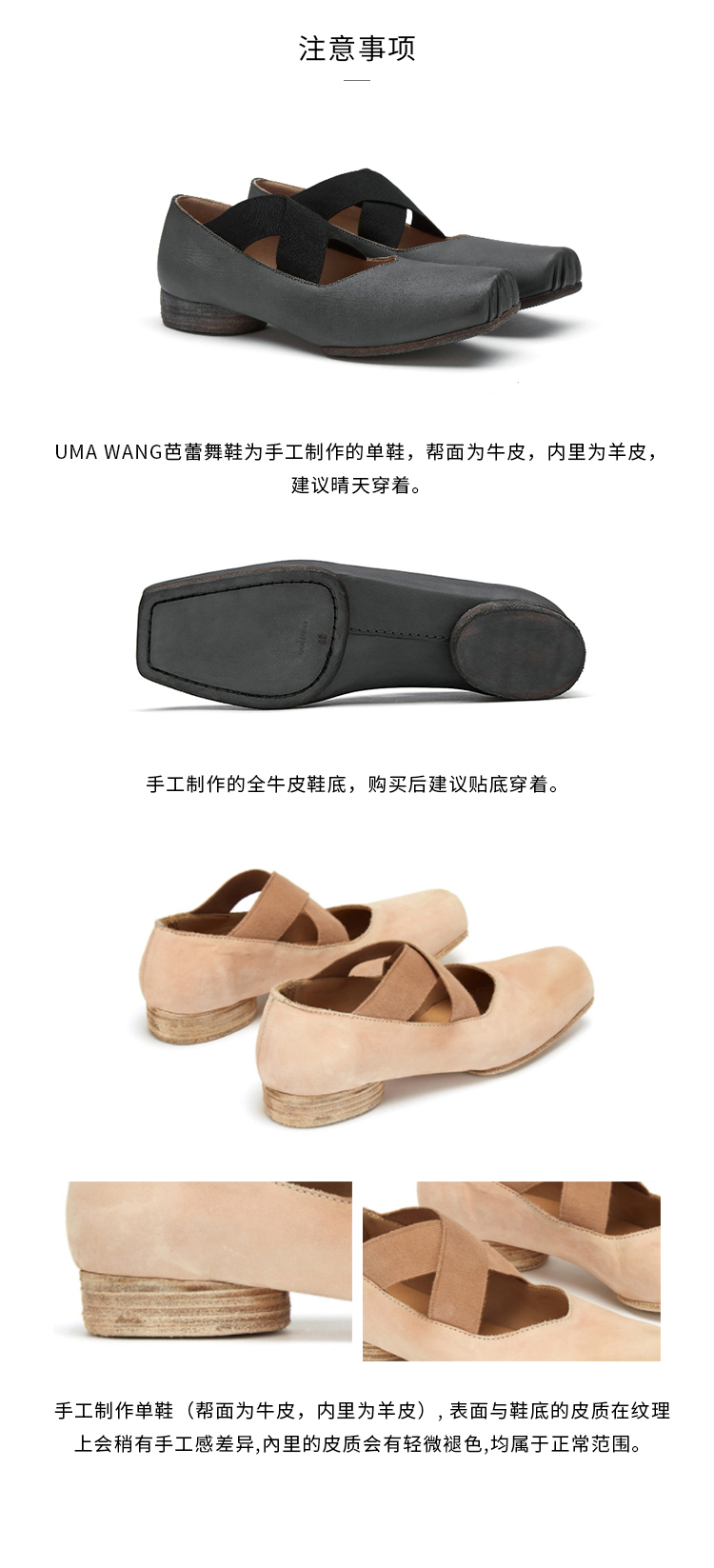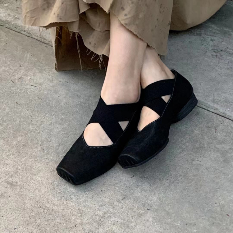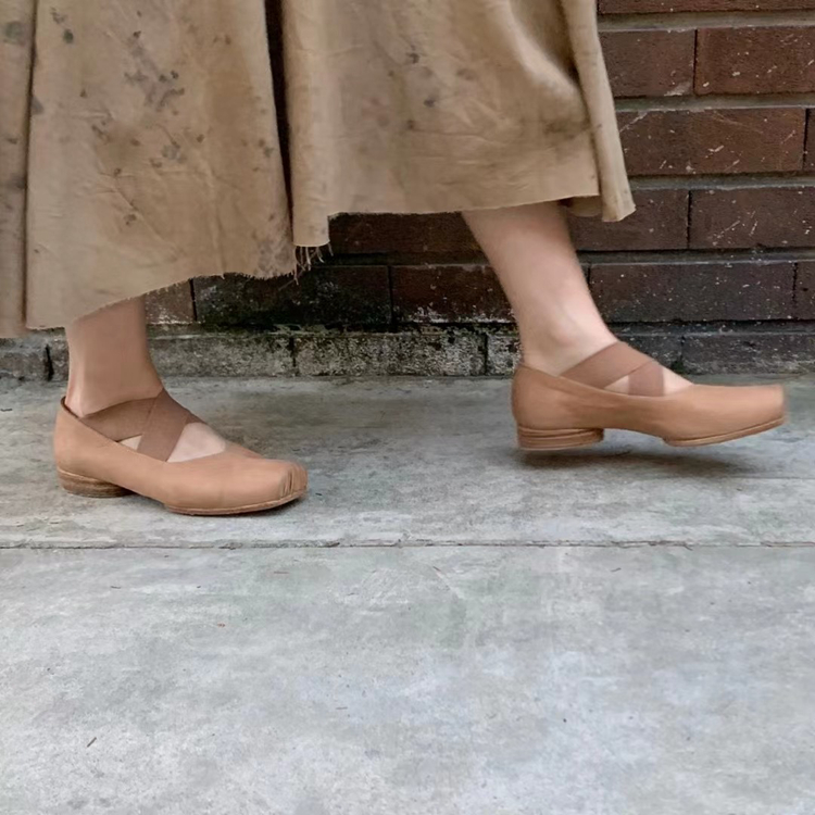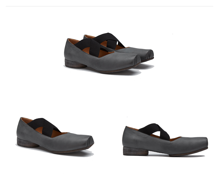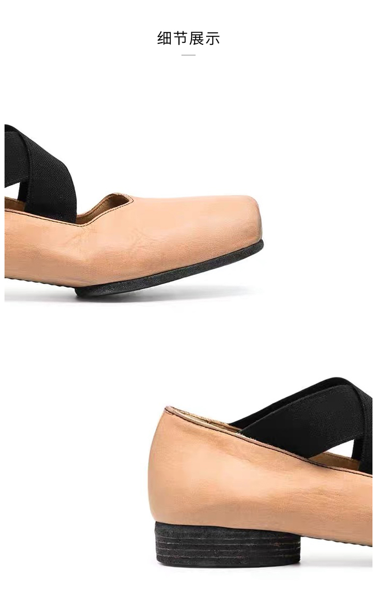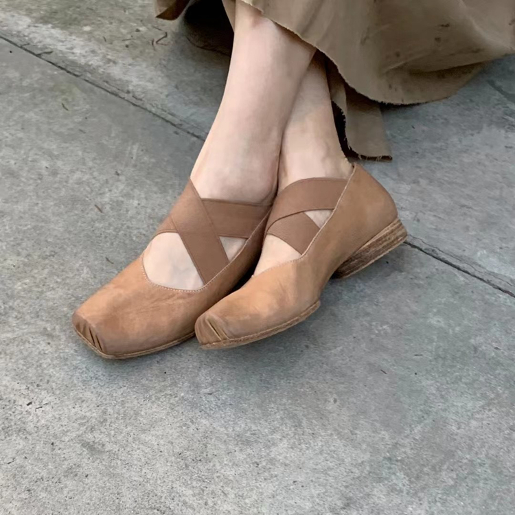【UMA WANG】蕾虎手工方头交叉绑带芭蕾舞鞋平底高跟鞋经典款单鞋