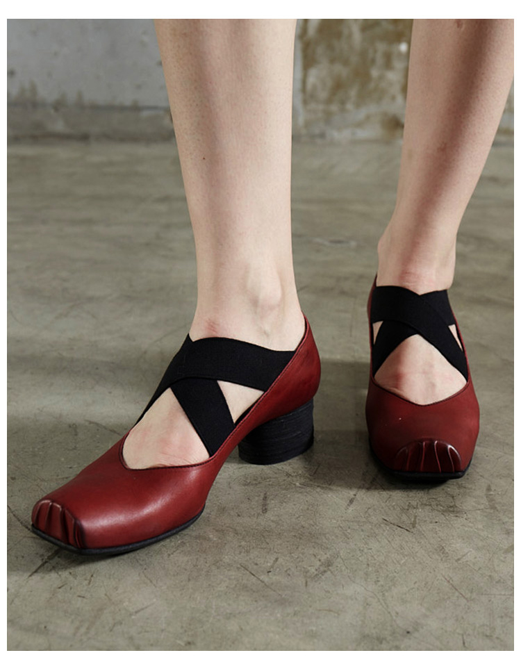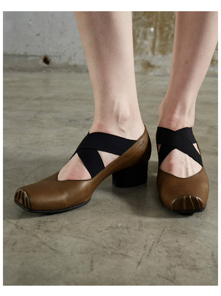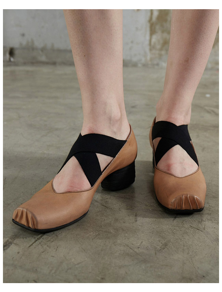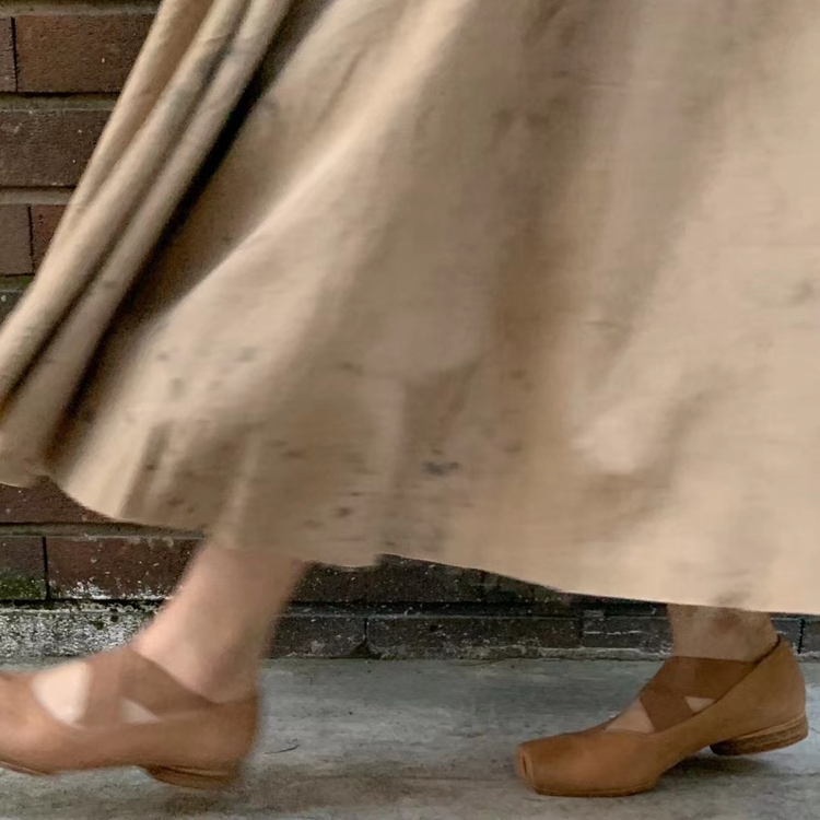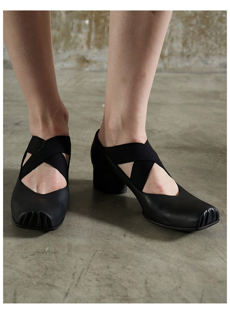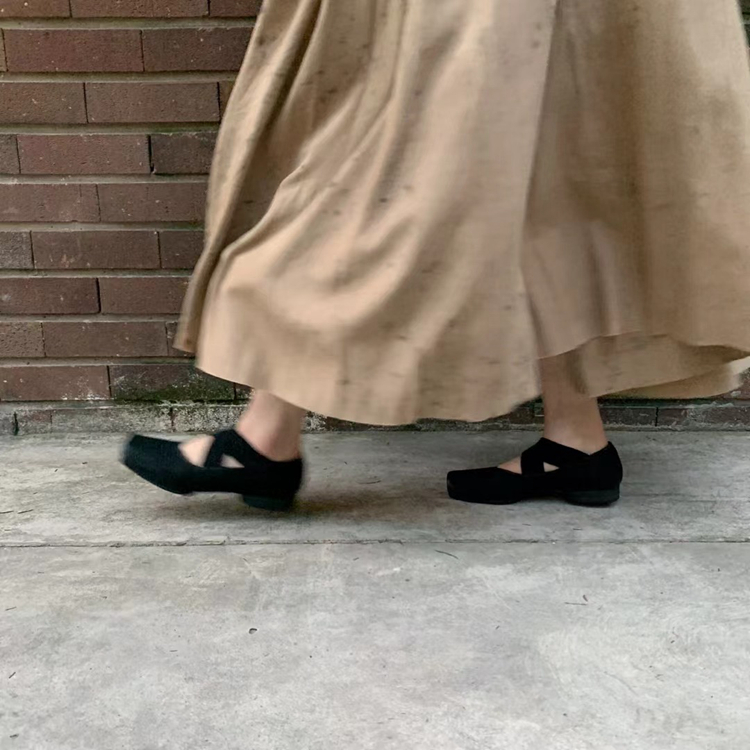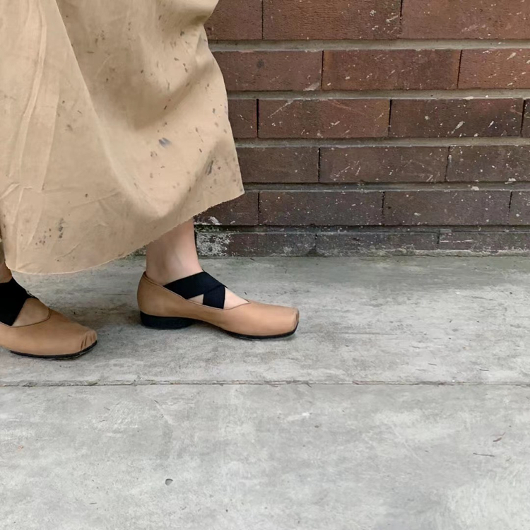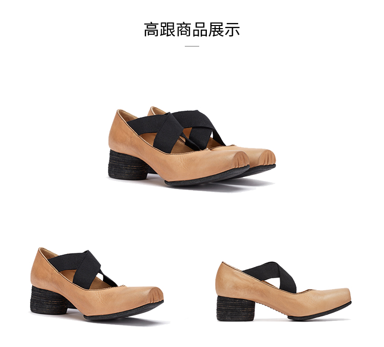 【UMA WANG】蕾虎手工方头交叉绑带芭蕾舞鞋平底高跟鞋经典款单鞋