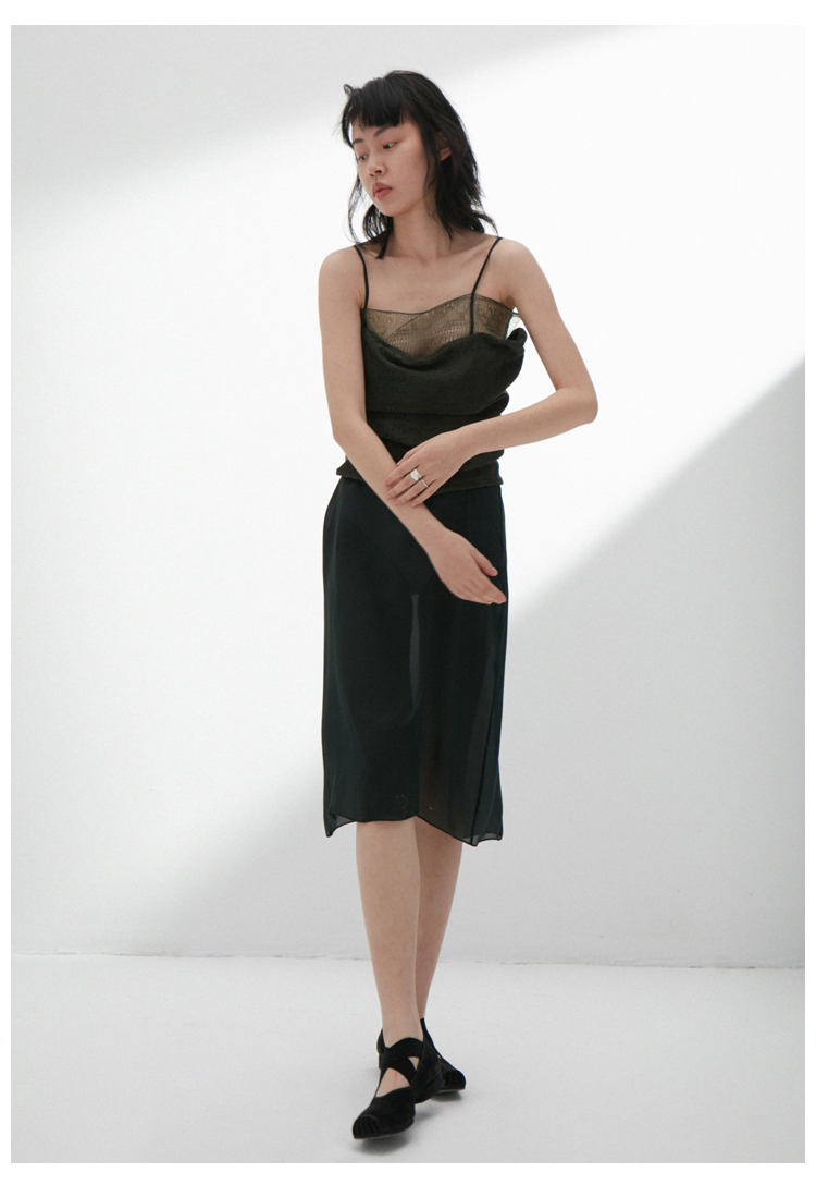 【SHUSHUTONG】蕾虎时尚拼色挂脖针织上衣2025春夏新款女装上衣