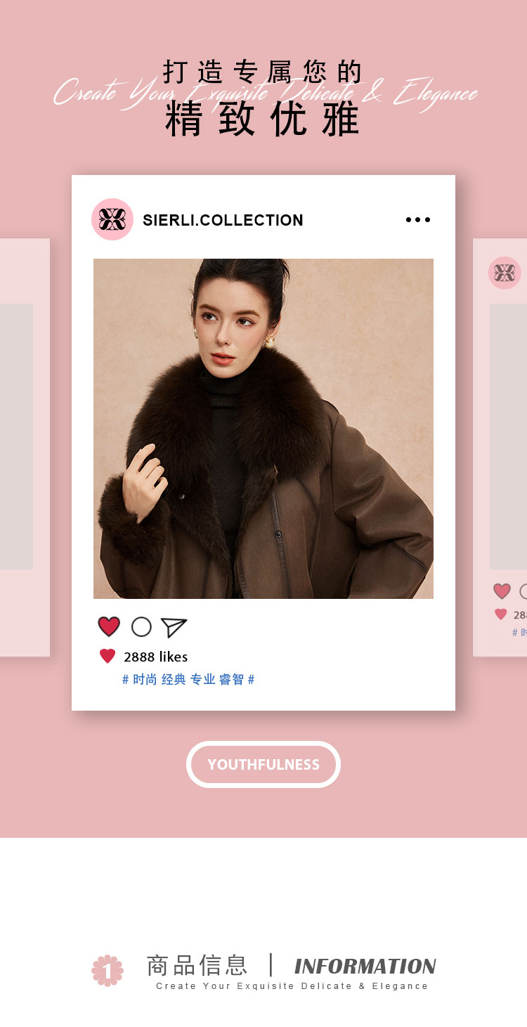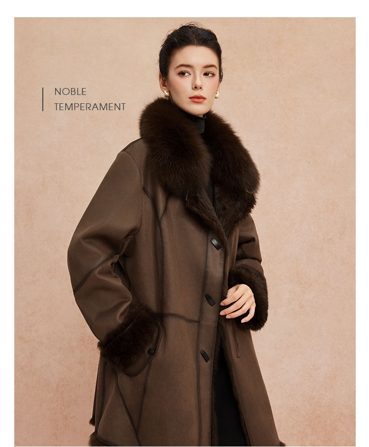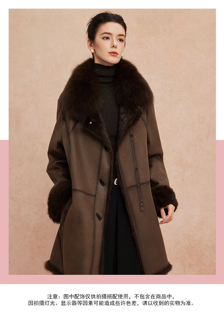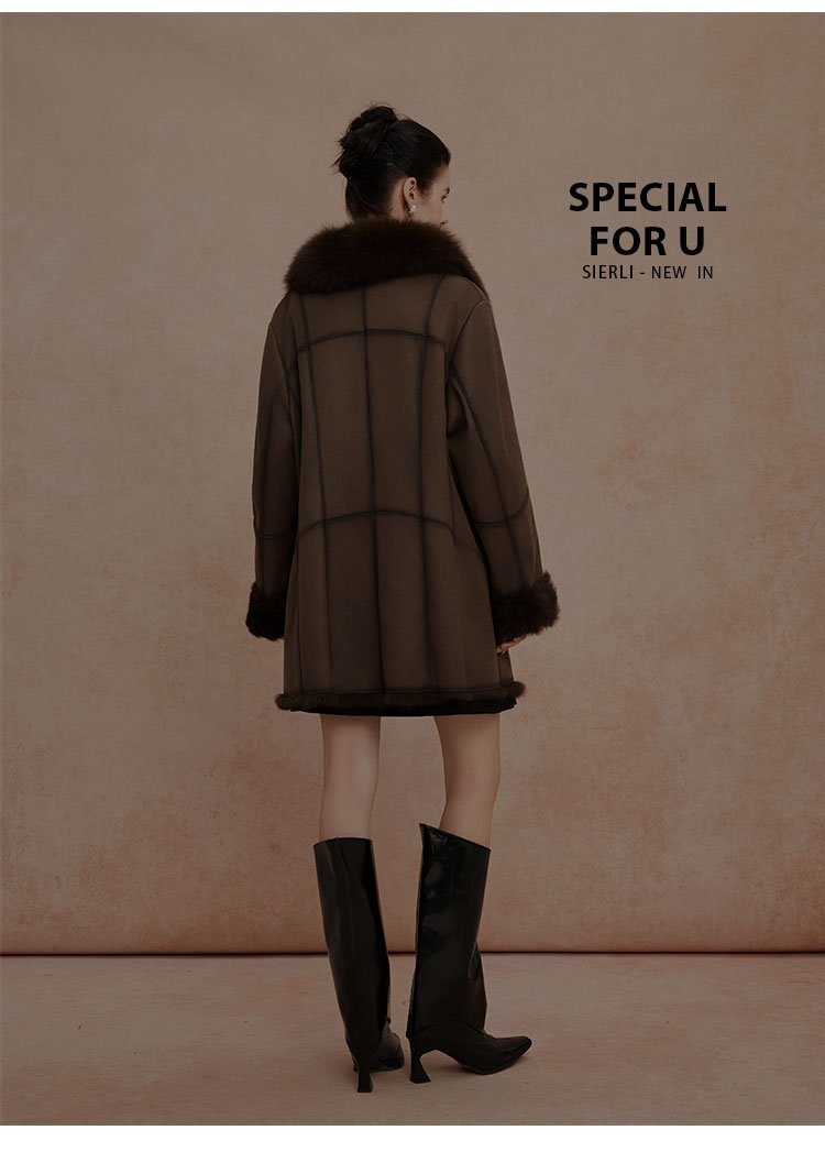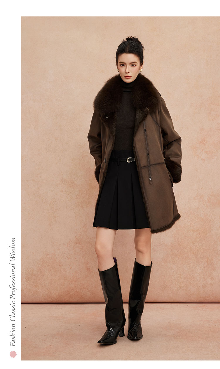 QP601斯尔丽2025冬季新款兔毛皮毛一体中长直身显瘦皮草狐狸毛领