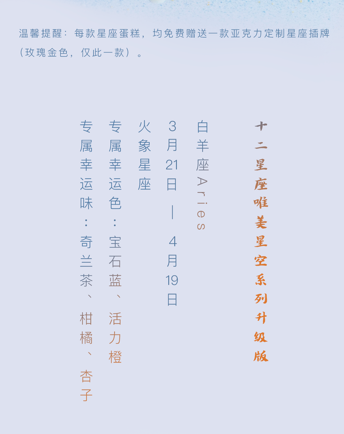 2026新版「白羊座」奇兰柑橘杏子味蛋糕|十二星座唯美星空系列