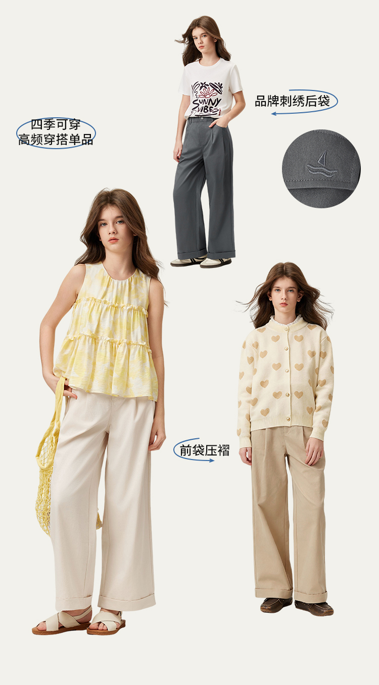 【纳维凯尔】【140-175】Navigare意大利小帆船女童简约风阔腿裤