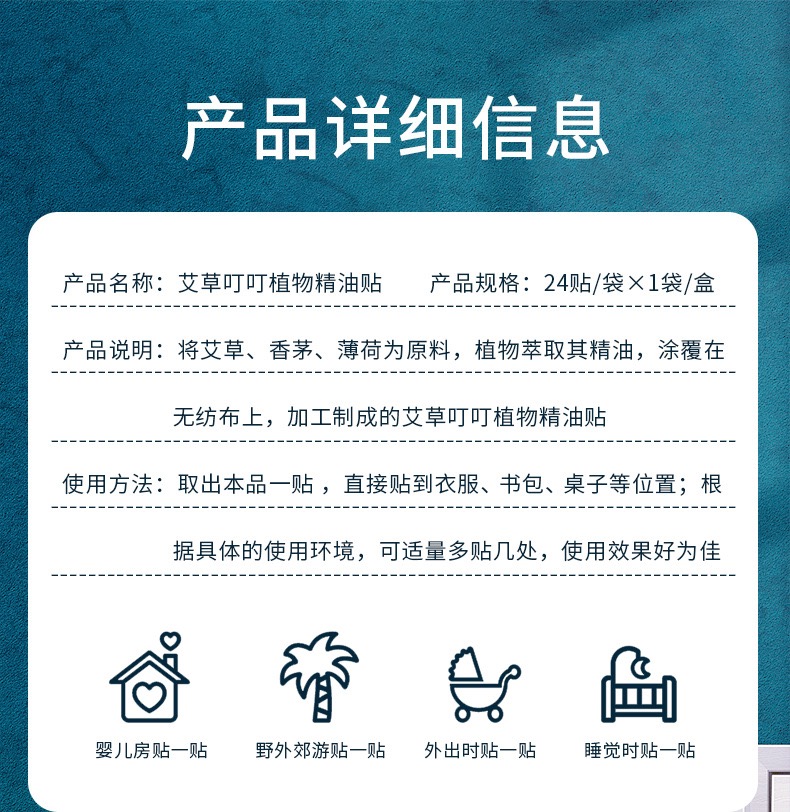 艾草叮叮植物精油贴 驱蚊贴 24贴/盒