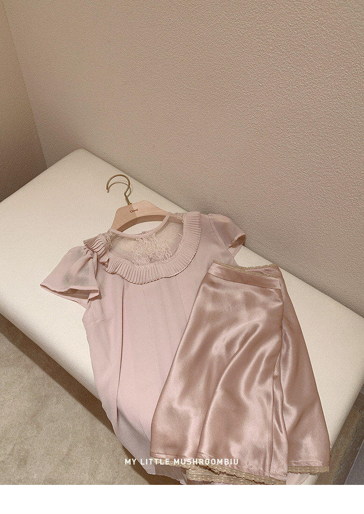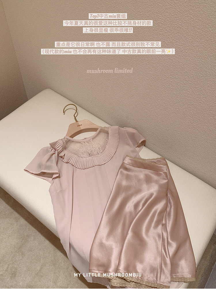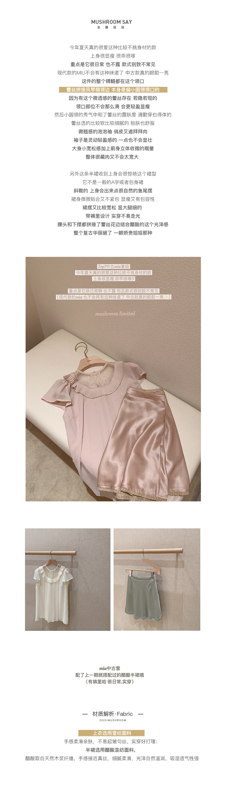 金蘑菇菇 古董茶话会 miu的中古千金 / 斜裁醋酸半裙一套甜甜搭配
