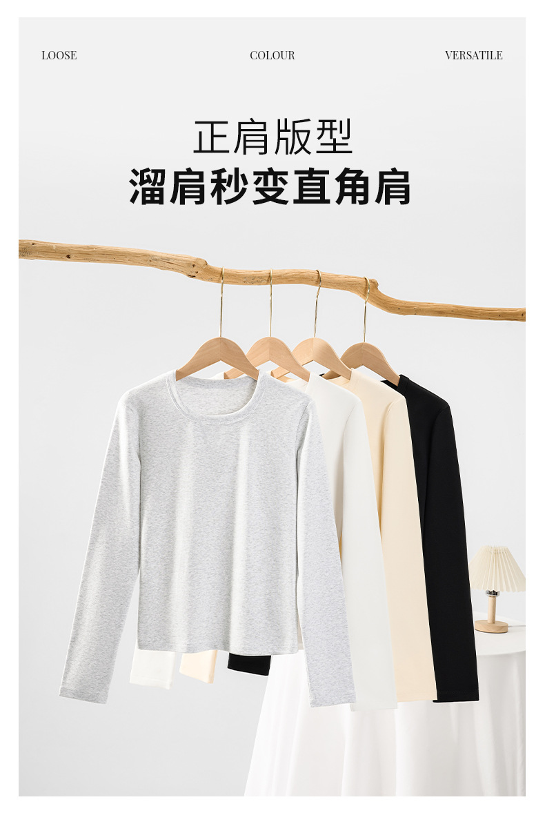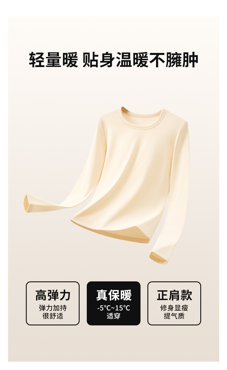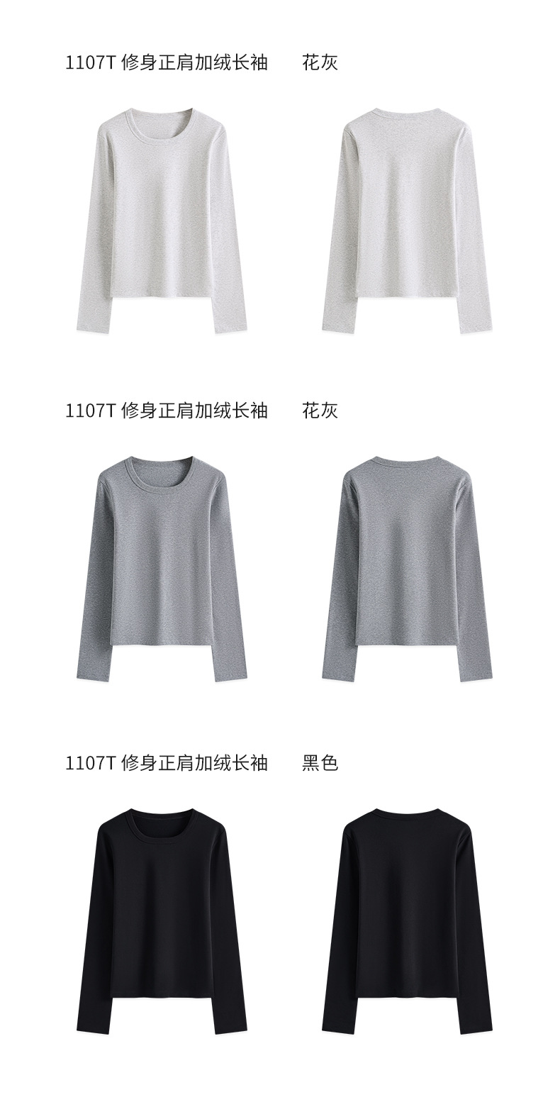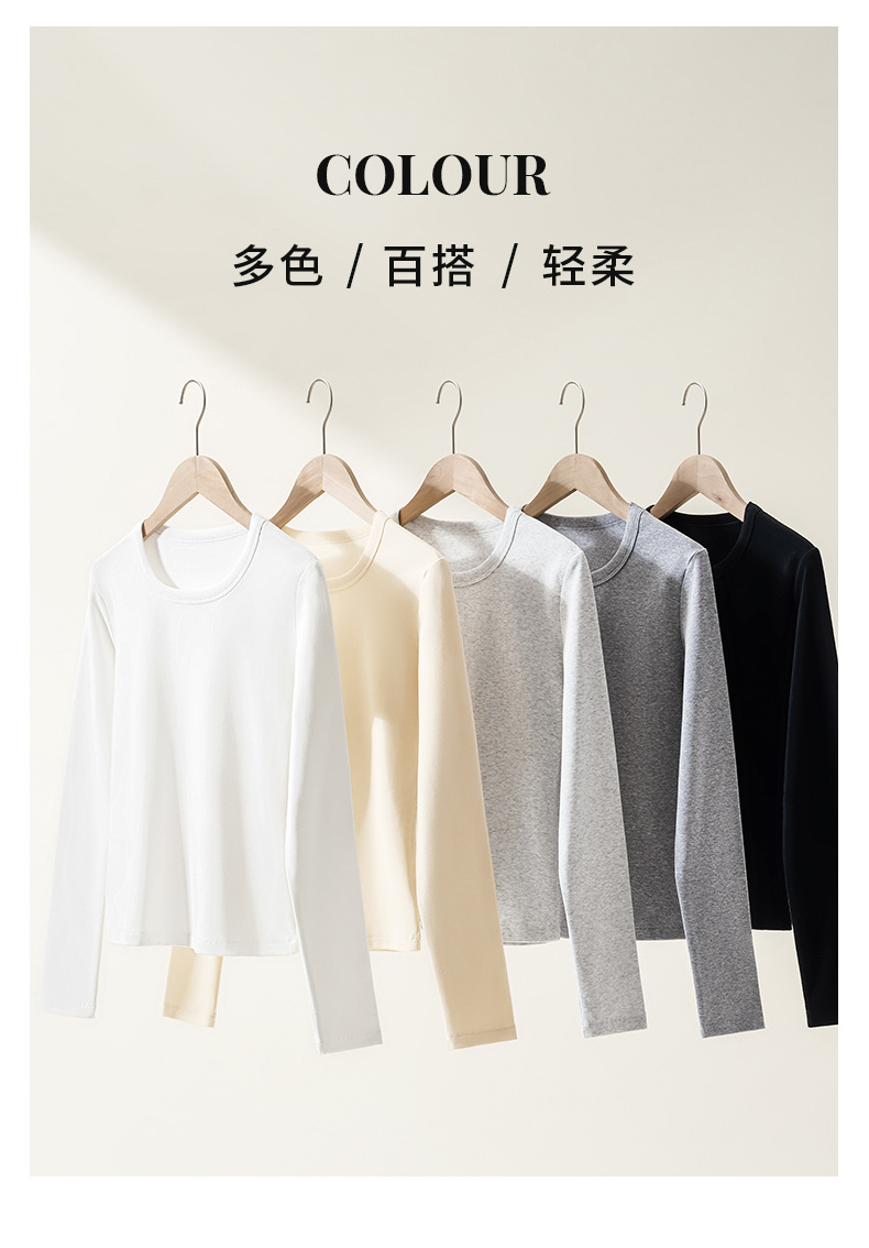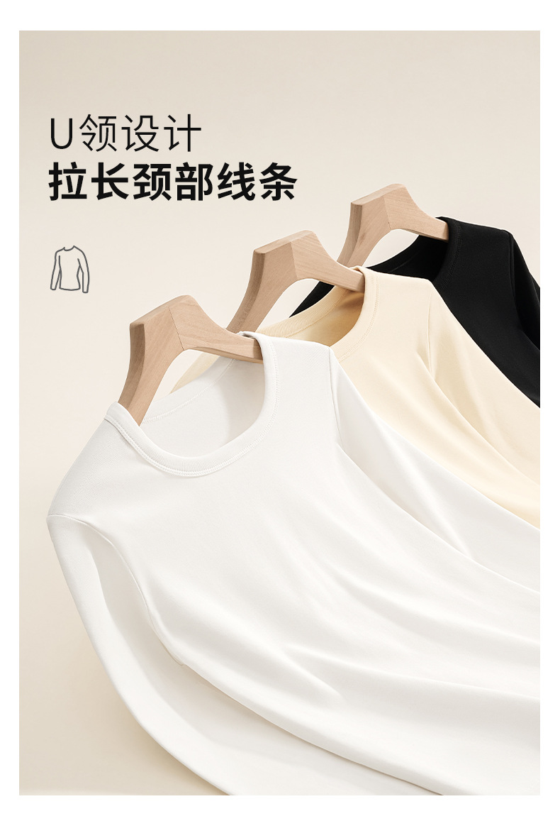 【U领加绒长袖t恤】秋冬新款 240g氨纶纱保暖内搭上衣 女生打底衫