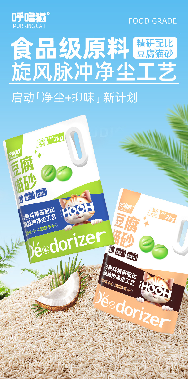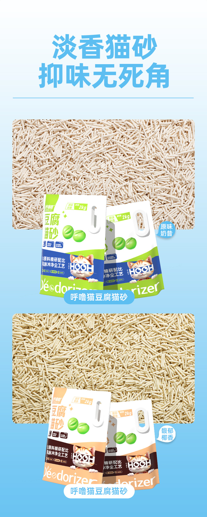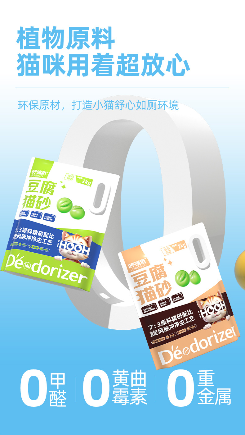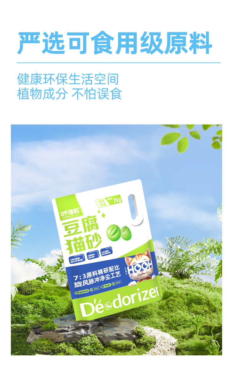 呼噜猫高品质豆腐猫砂2kg 原味/椰香味 低尘祛味 线下款 整箱=8袋 混拼请备注!