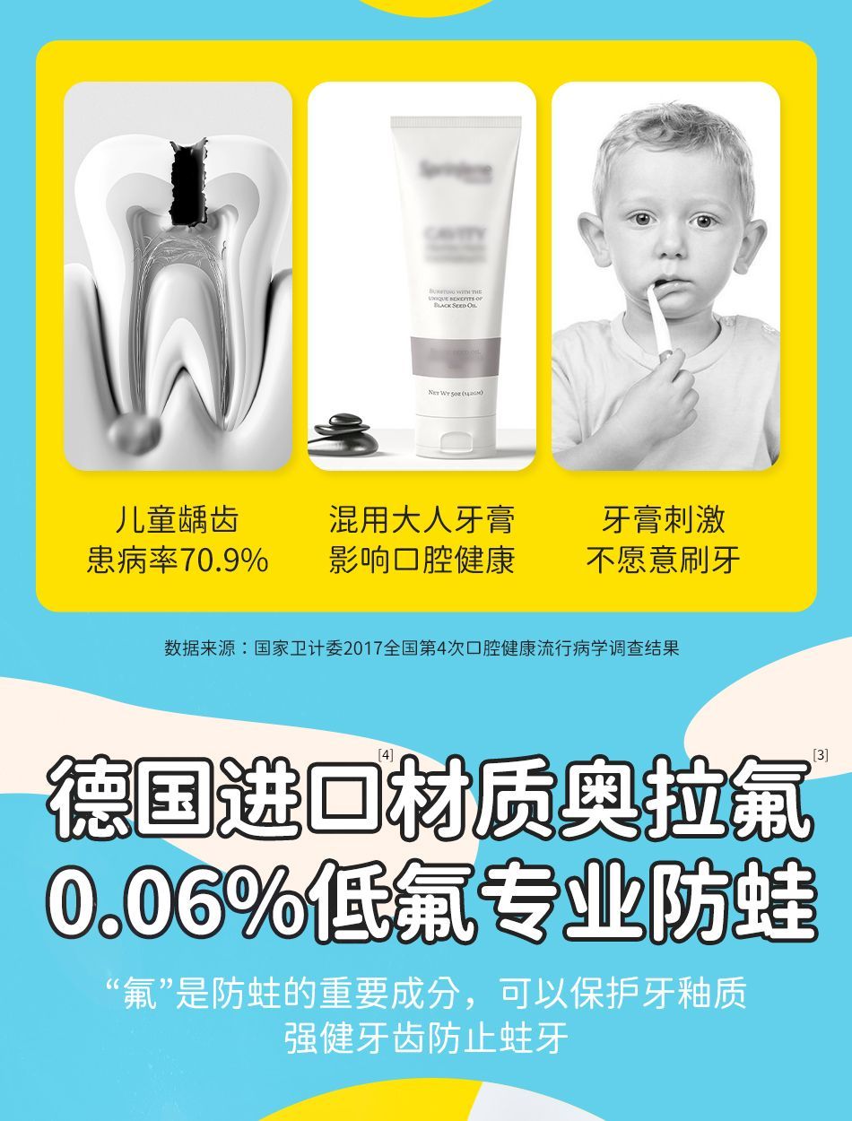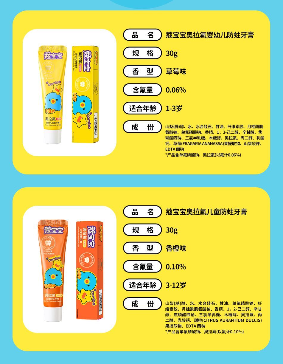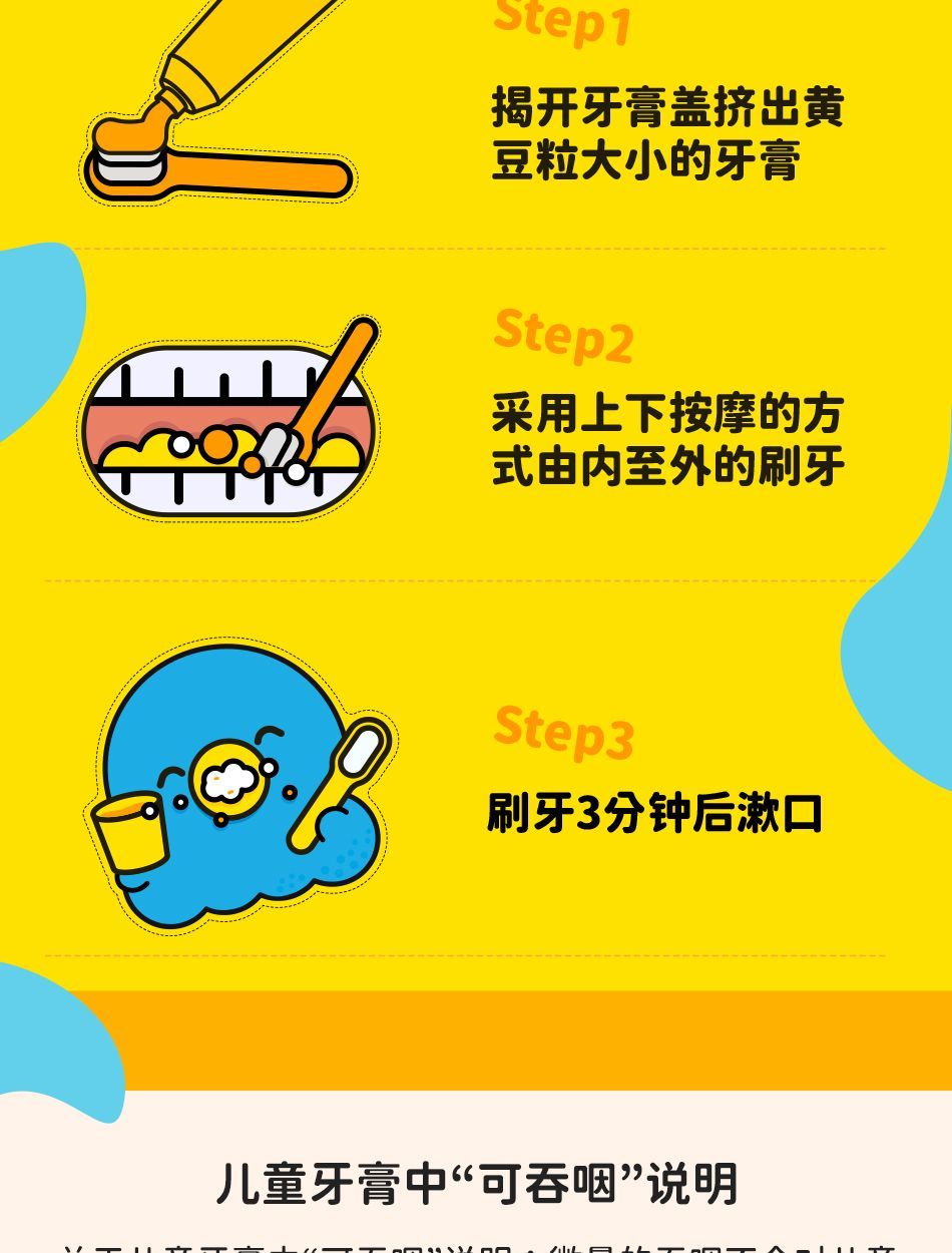 combo奥拉氟儿童1-12岁婴儿牙膏防蛀牙60g水果味安全宝宝专用