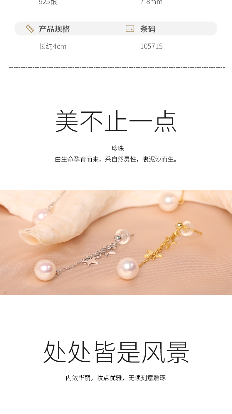 美裕 【星眸】银925淡水珍珠耳钉7-8mm白105715