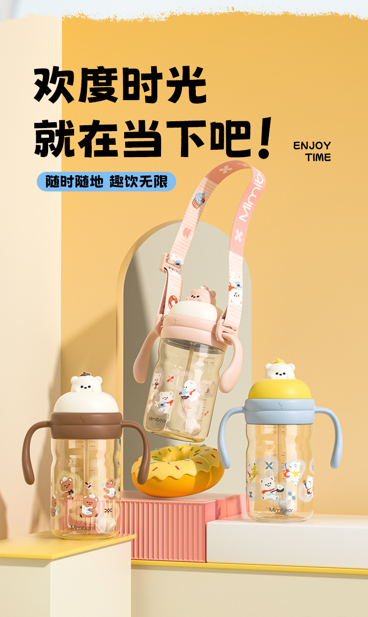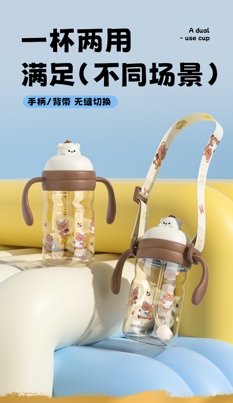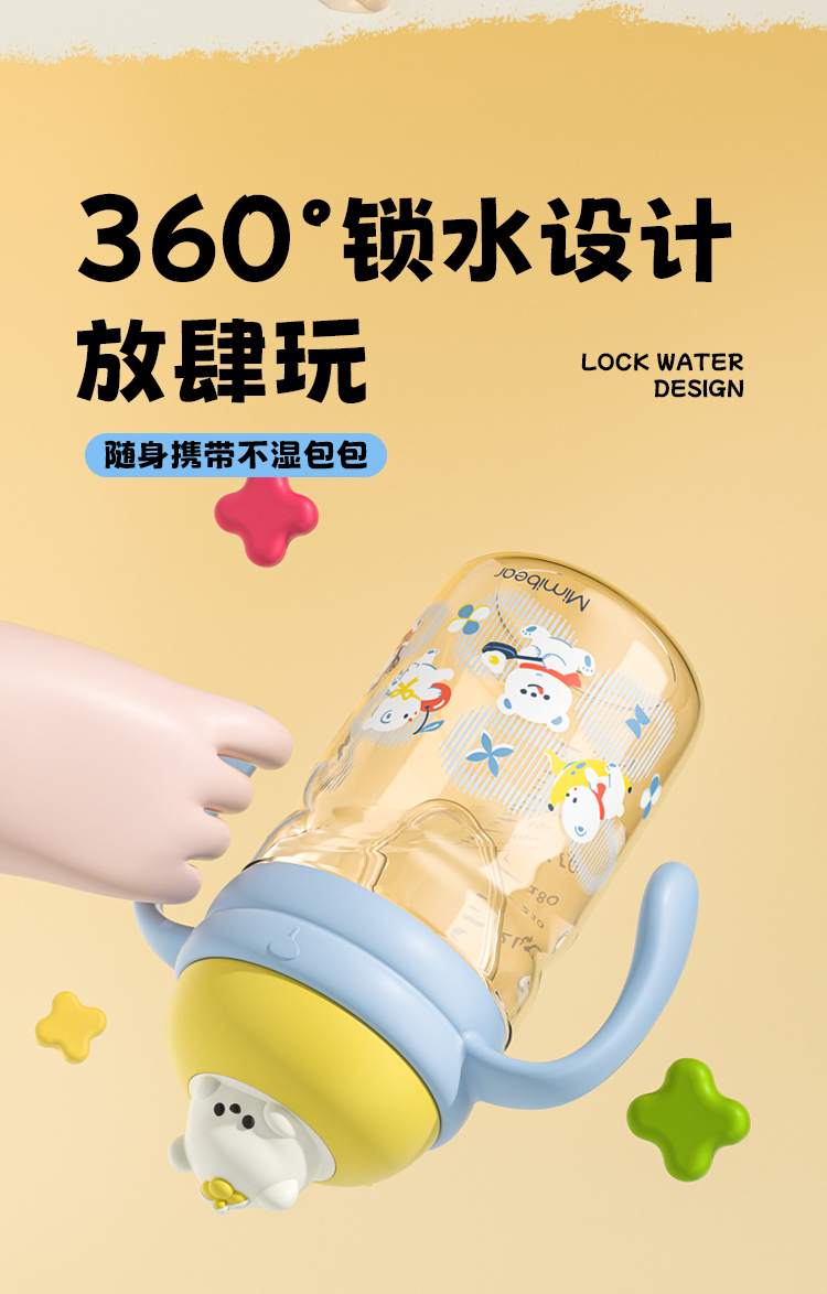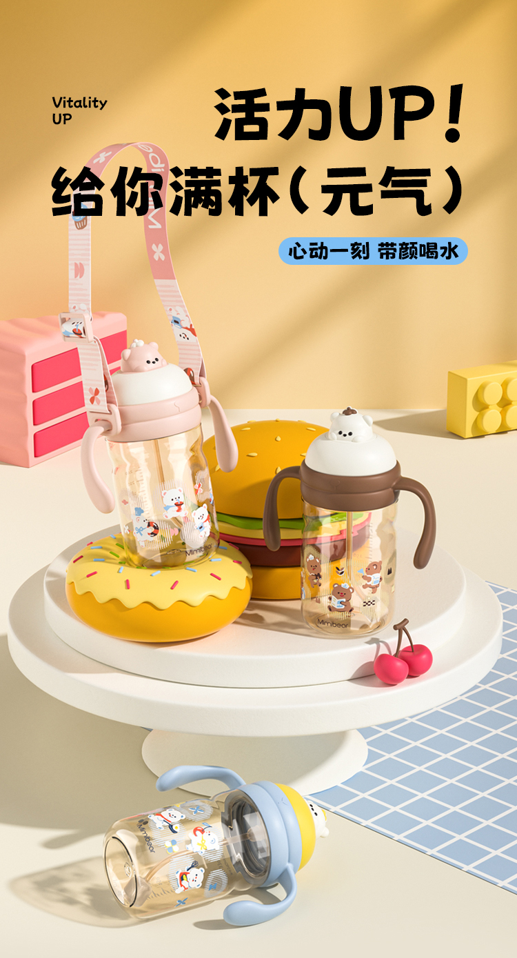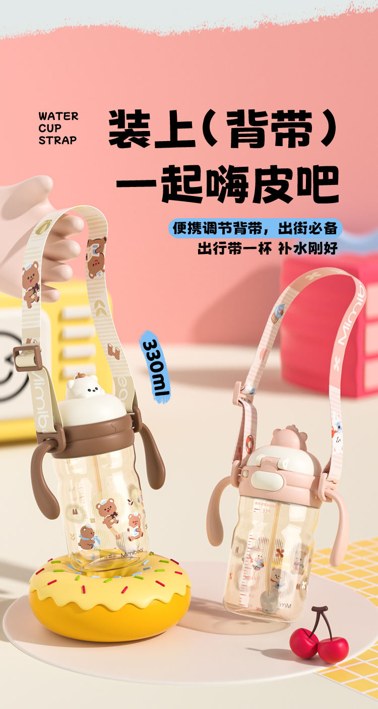 【59.9元起】眯眯熊儿童手柄背带吸管水杯子炖炖杯男女宝宝学饮高颜值可爱弹跳水杯水壶
