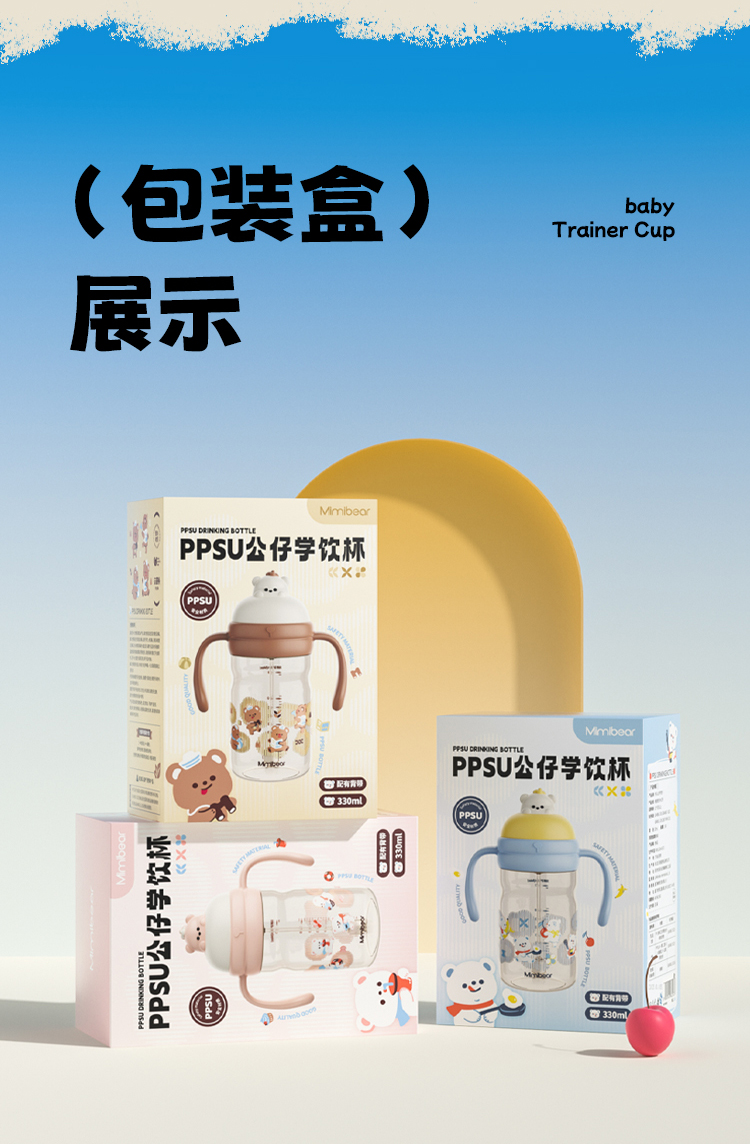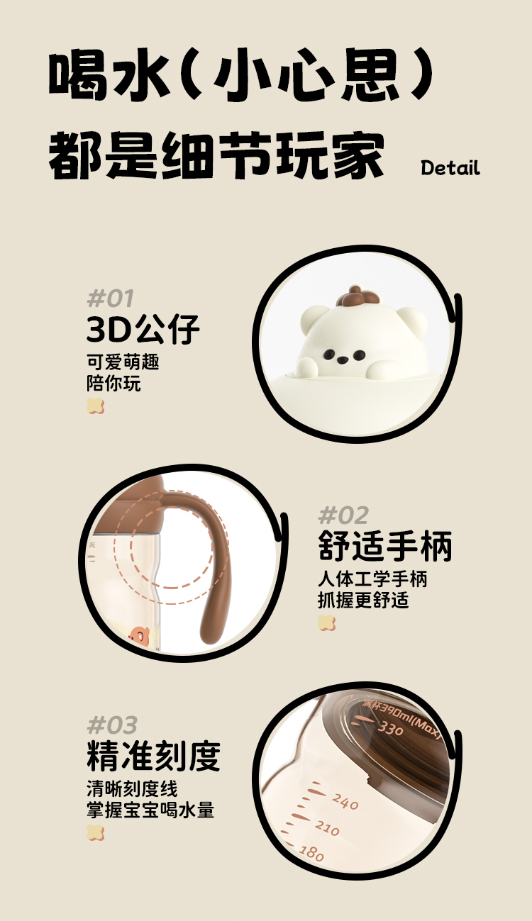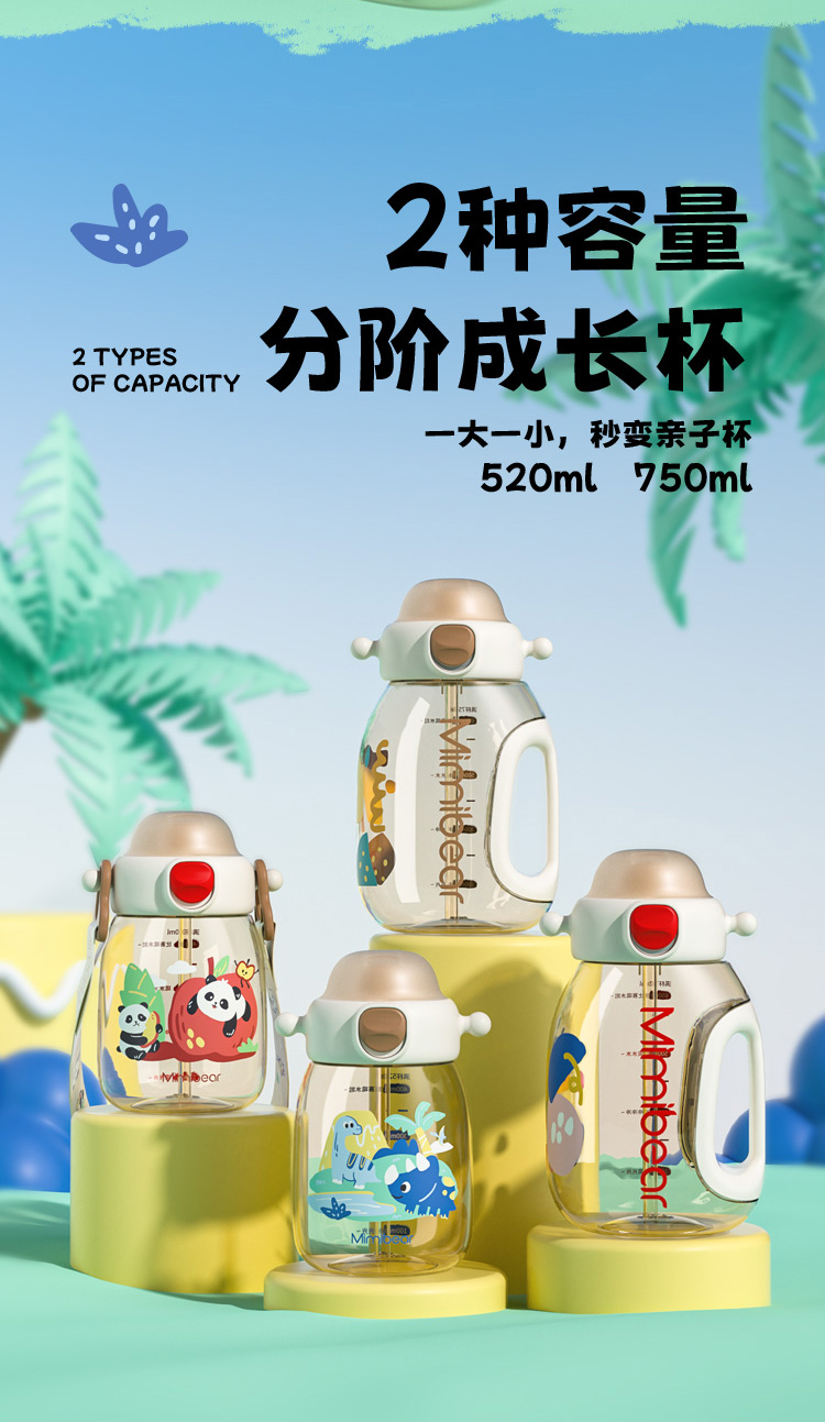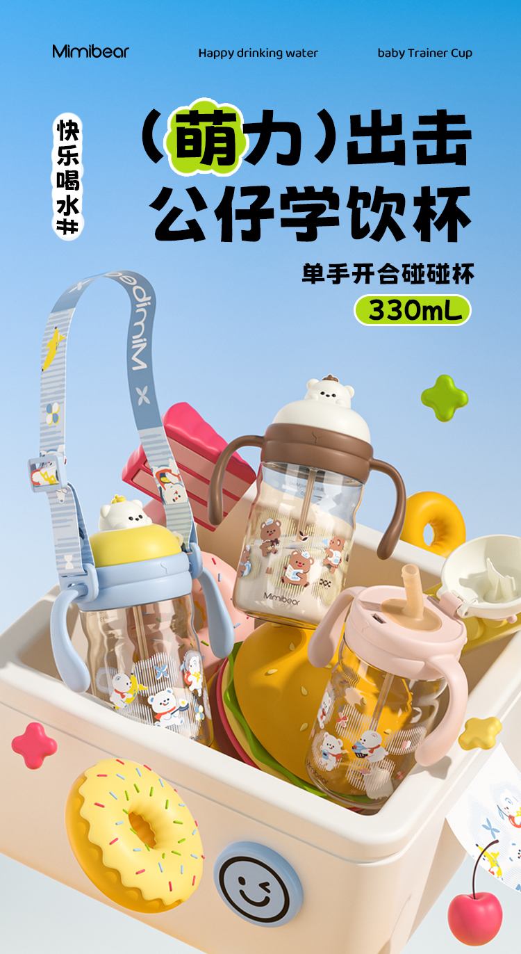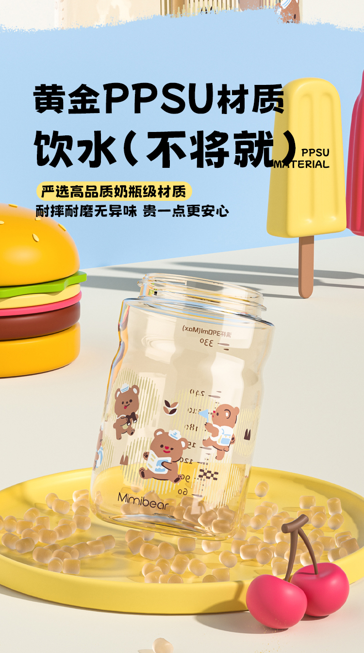 【59.9元起】眯眯熊儿童手柄背带吸管水杯子炖炖杯男女宝宝学饮高颜值可爱弹跳水杯水壶