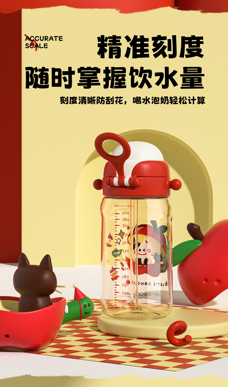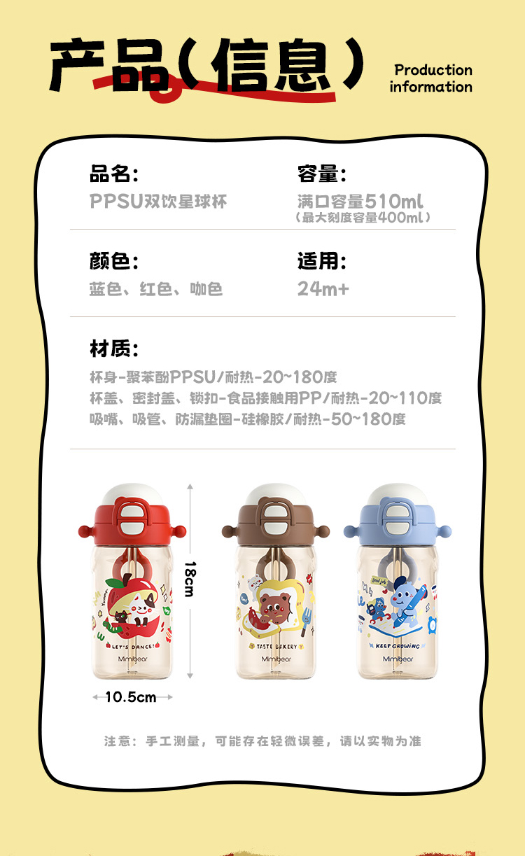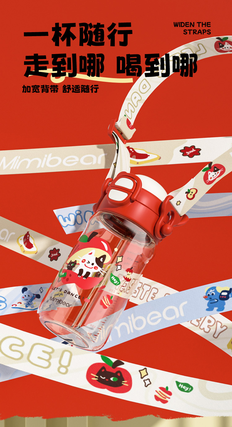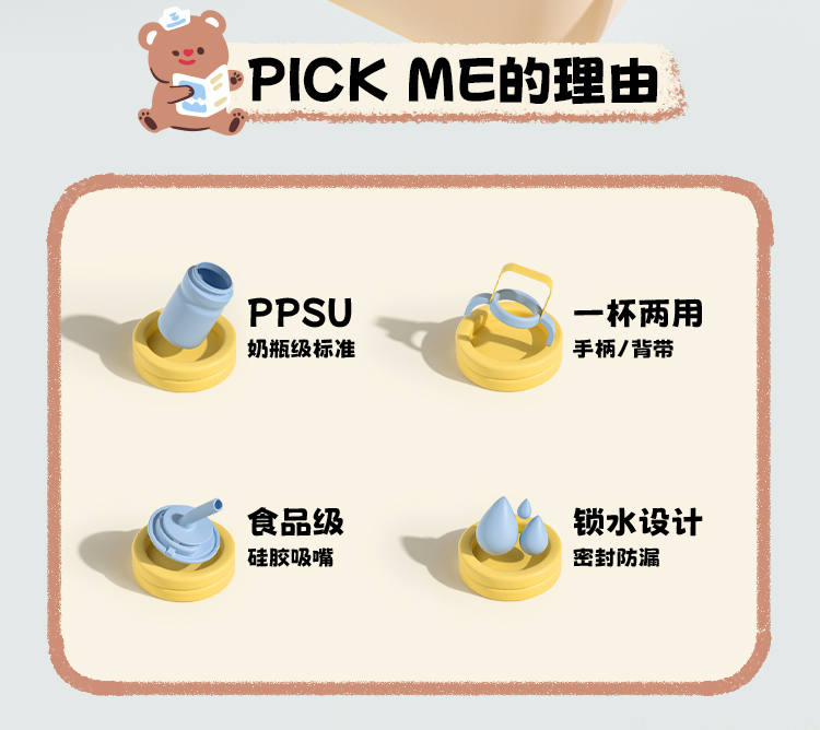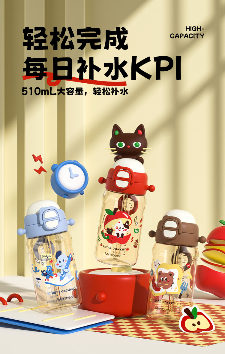 【59.9元起】眯眯熊儿童手柄背带吸管水杯子炖炖杯男女宝宝学饮高颜值可爱弹跳水杯水壶