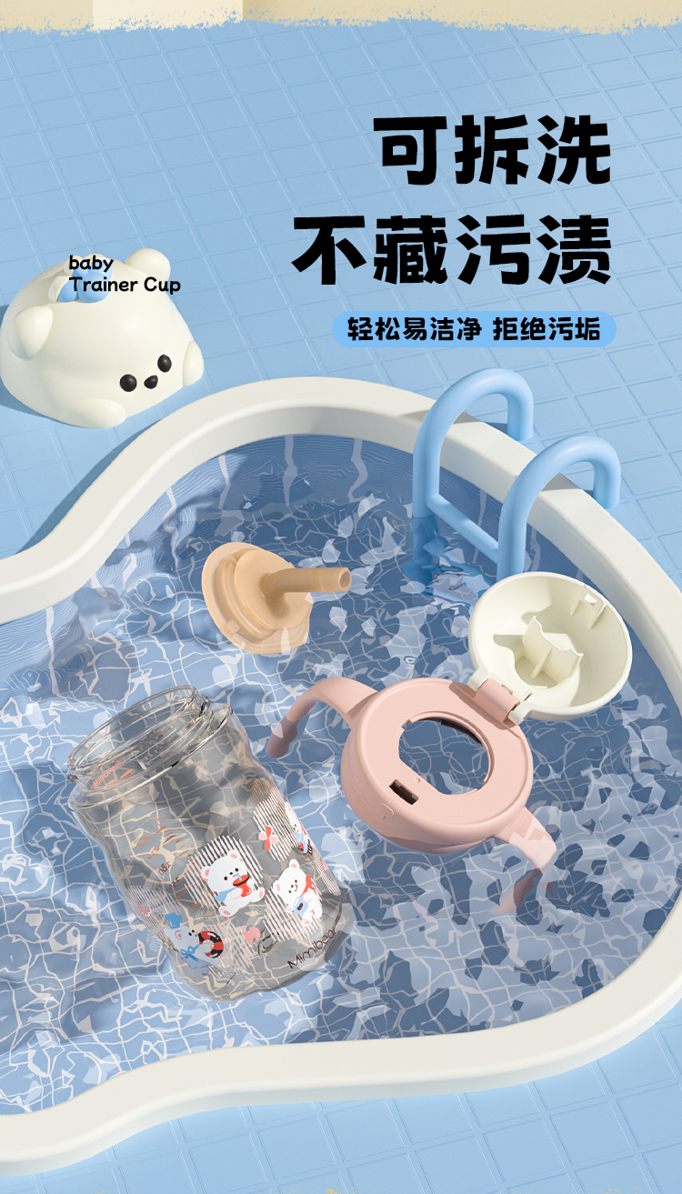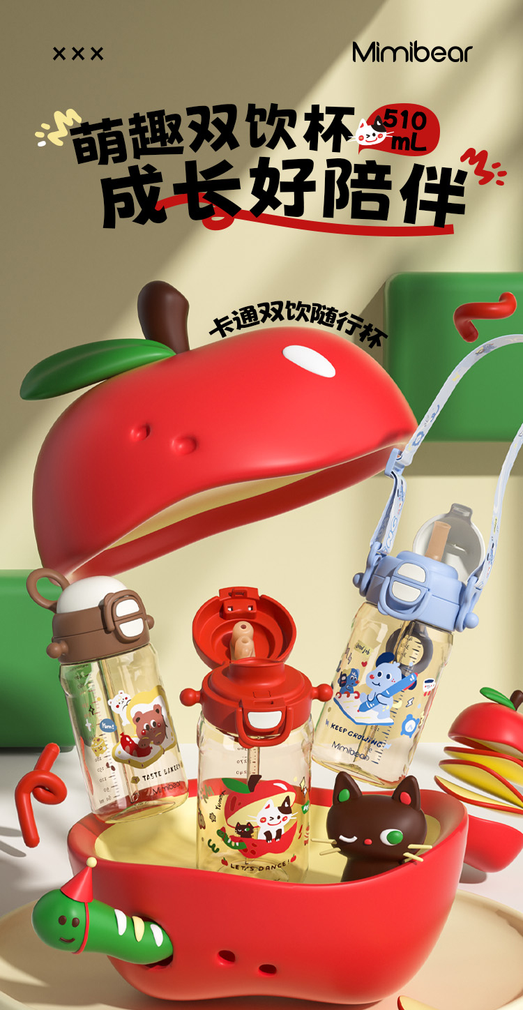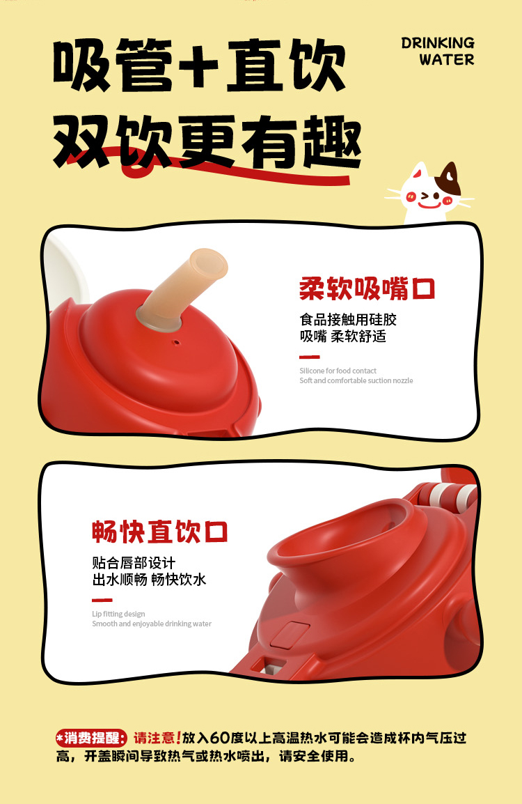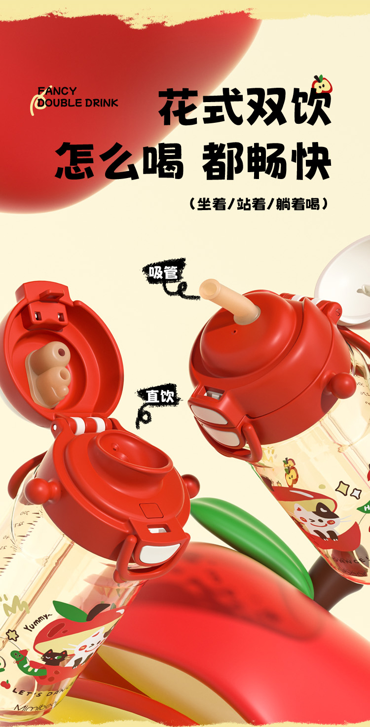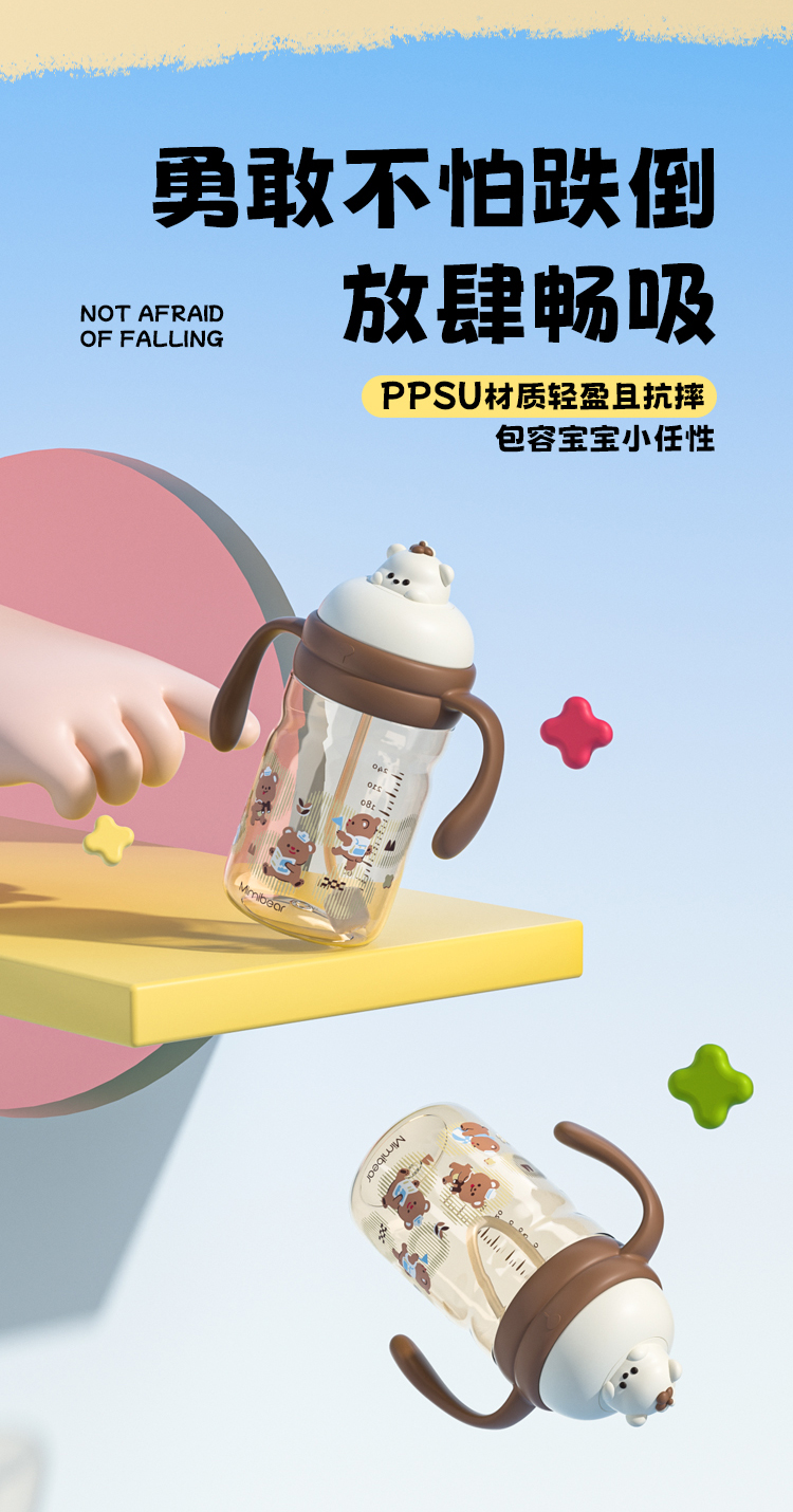 【59.9元起】眯眯熊儿童手柄背带吸管水杯子炖炖杯男女宝宝学饮高颜值可爱弹跳水杯水壶