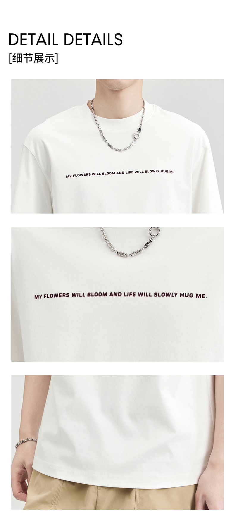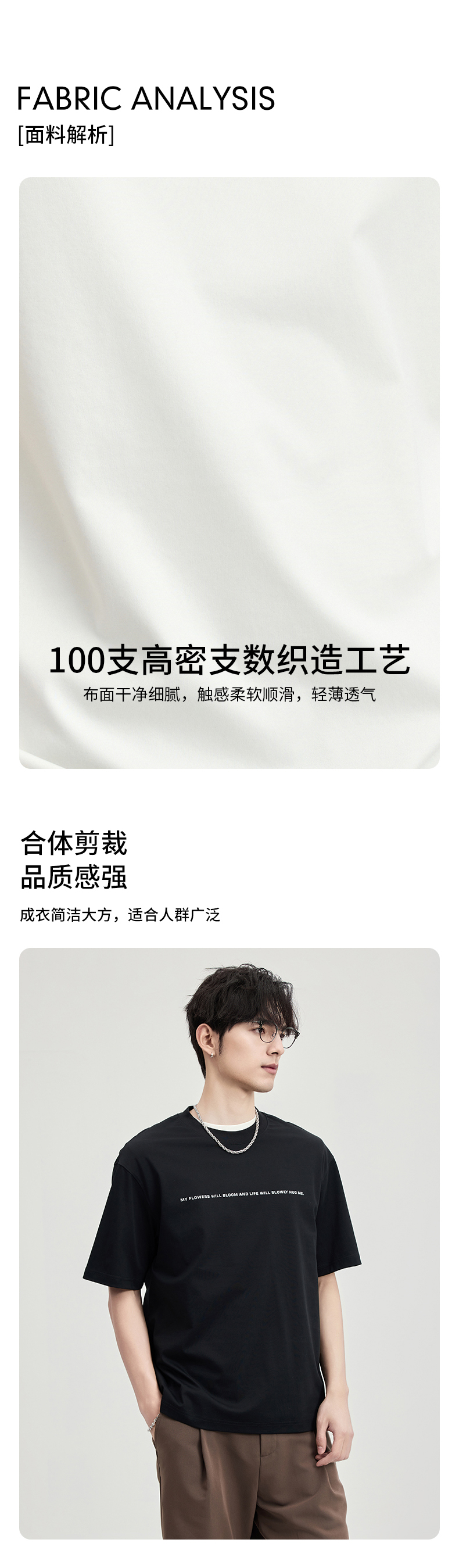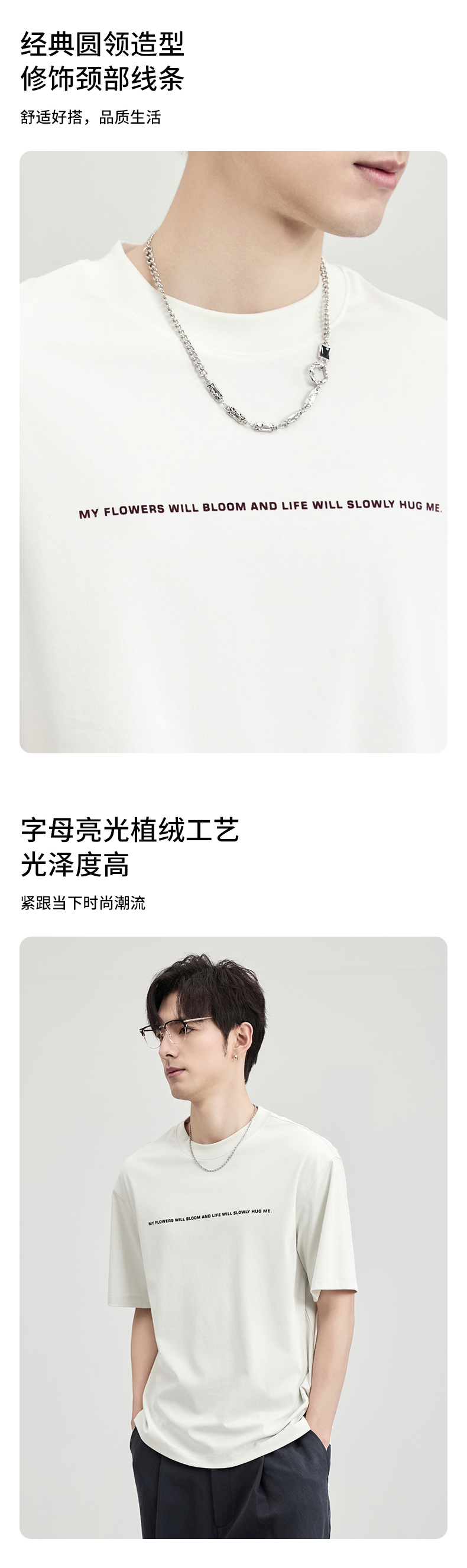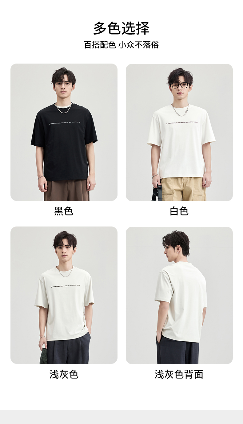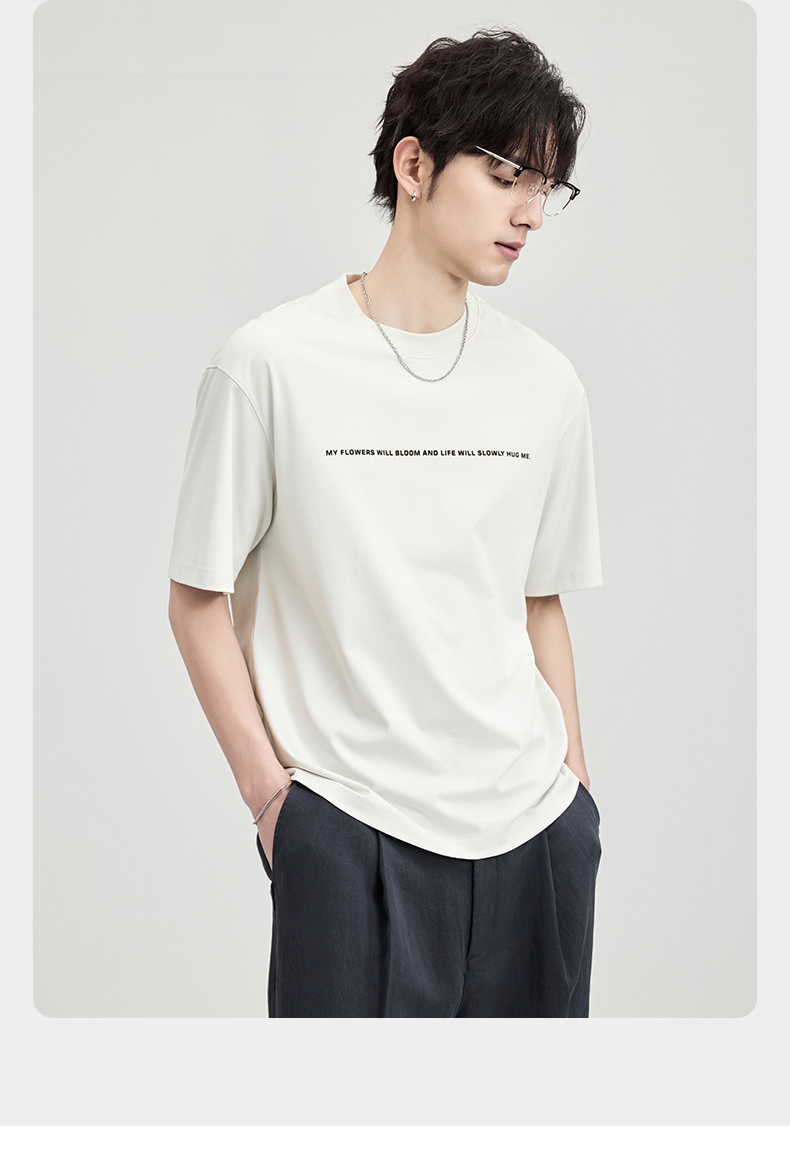 贝纳川100支高密字母植绒短袖T恤ECF114003