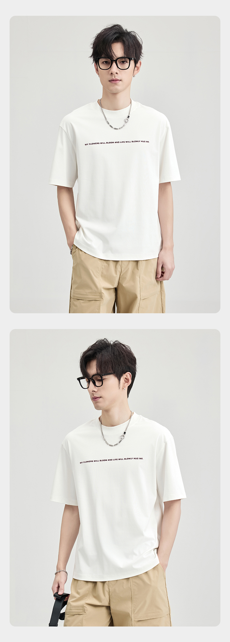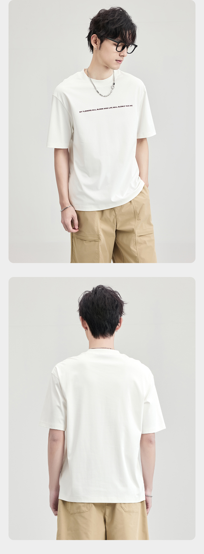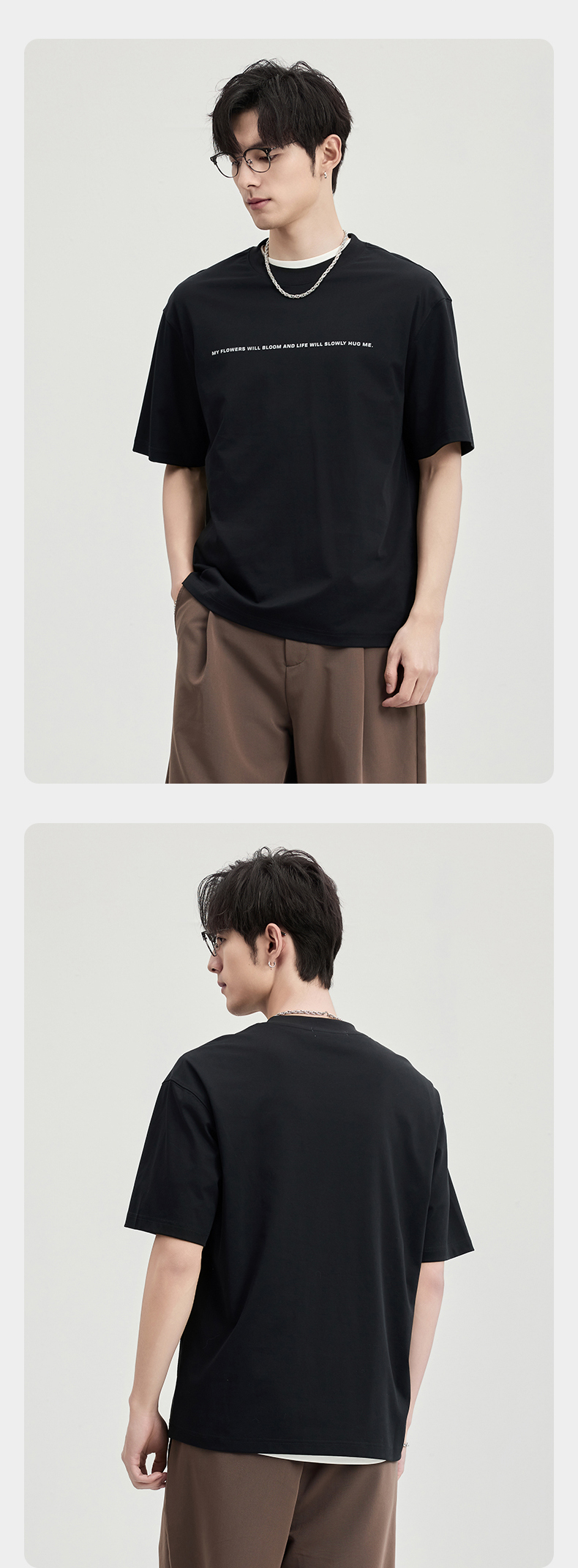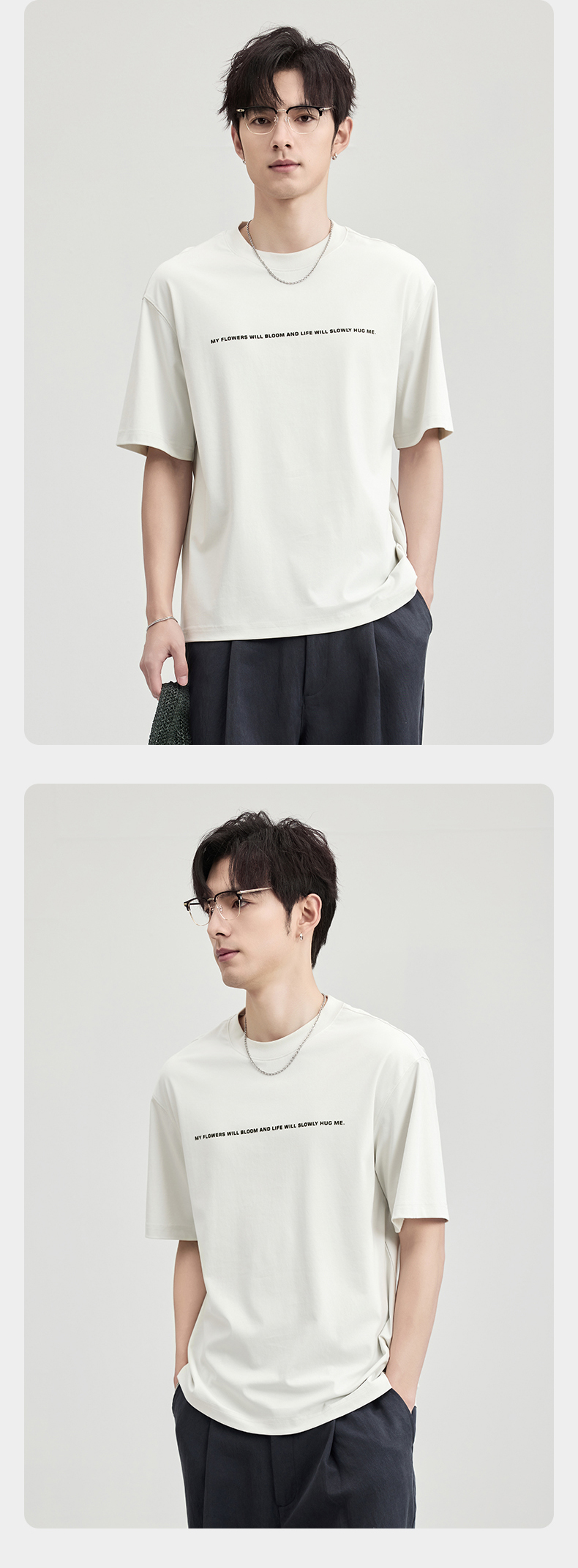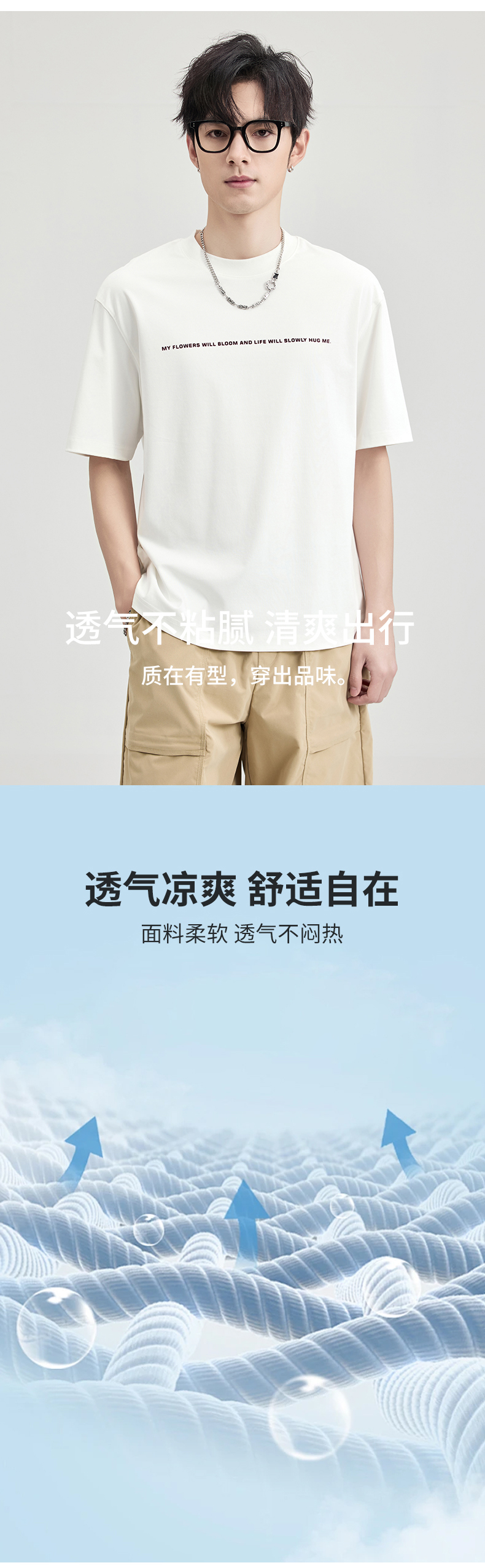 贝纳川100支高密字母植绒短袖T恤ECF114003