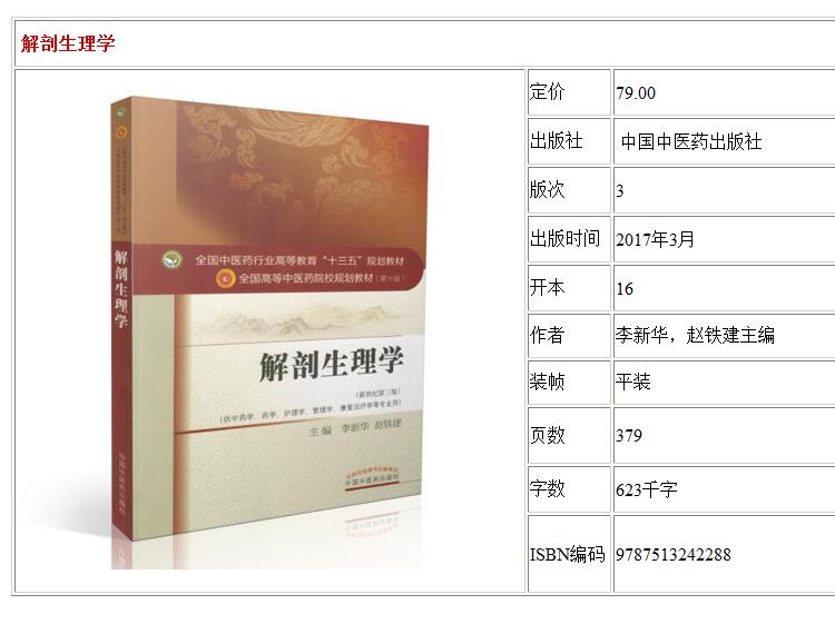 解剖生理学 新世纪第3三版 全国高等中医药院校规划教材 第十10版 十三五规划教材 供中药学护理学管理学等专业用 李新华 赵铁建