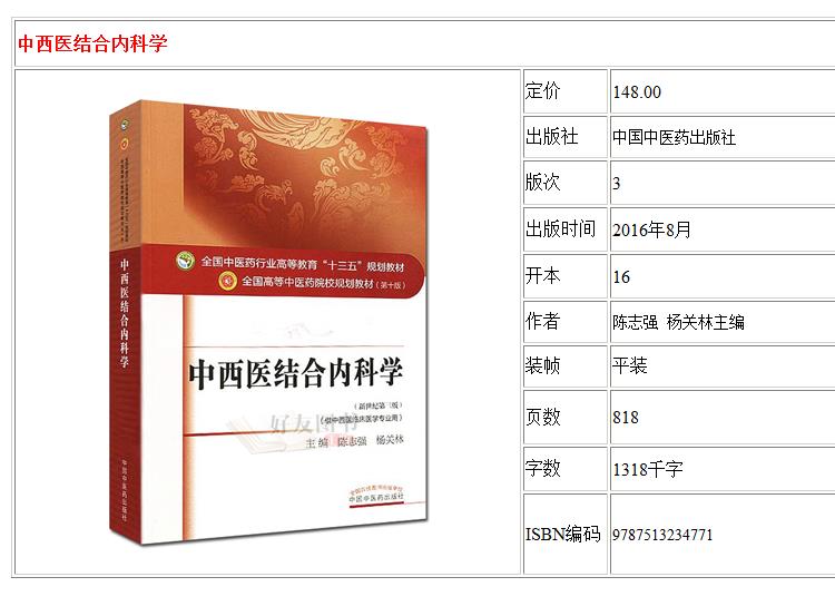 中西医结合内科学 新世纪第3三版 全国高等中医药院校规划教材 第十10版 陈志强 杨关林主编 中医药出版社供中西医临床医学专业用