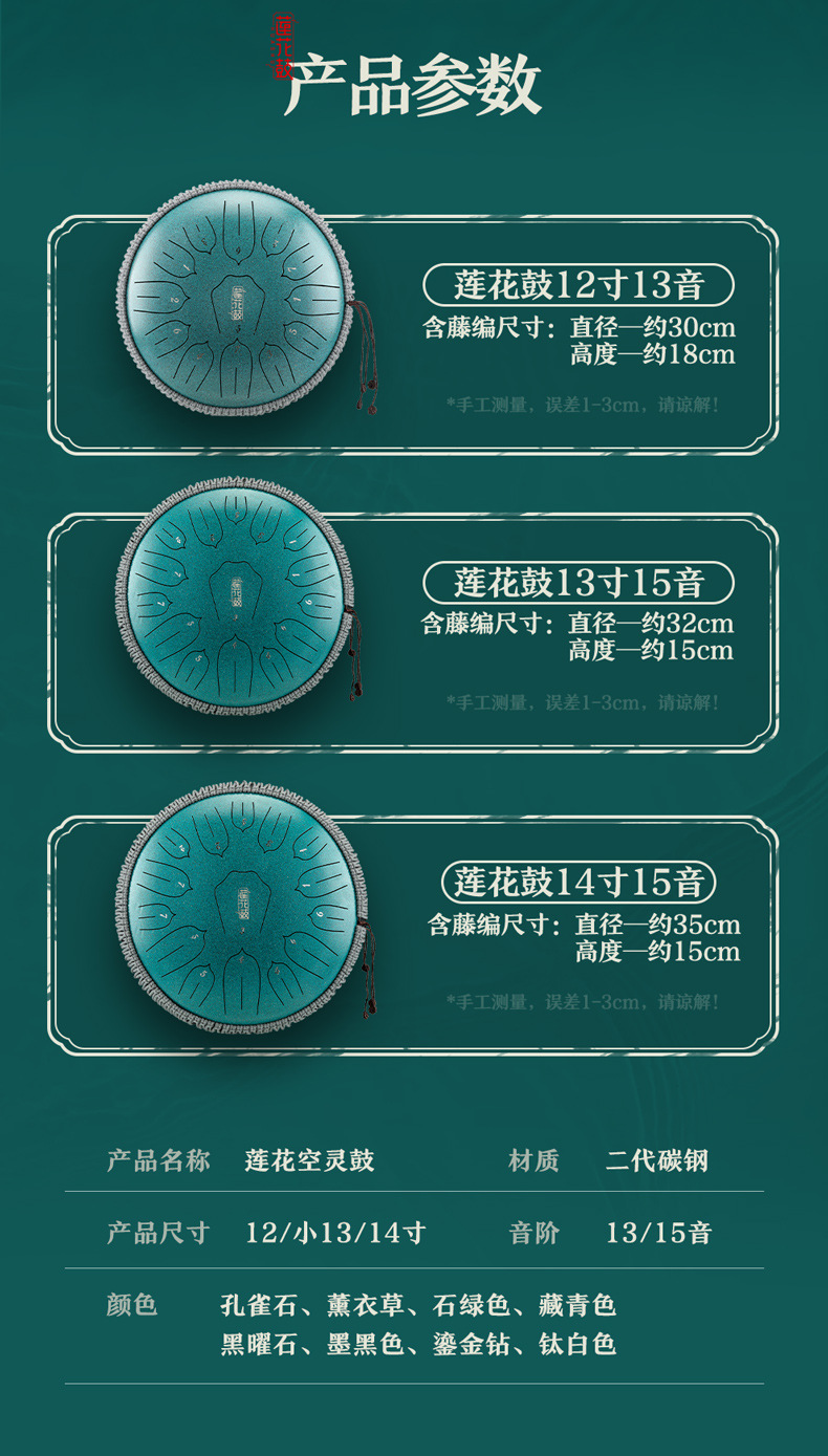 莲花空聆鼓13寸15音 乐器 3种颜色可选