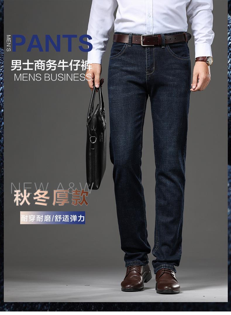 秋冬季男士休闲牛仔裤中年棉质宽松中腰微弹爸爸男装长裤