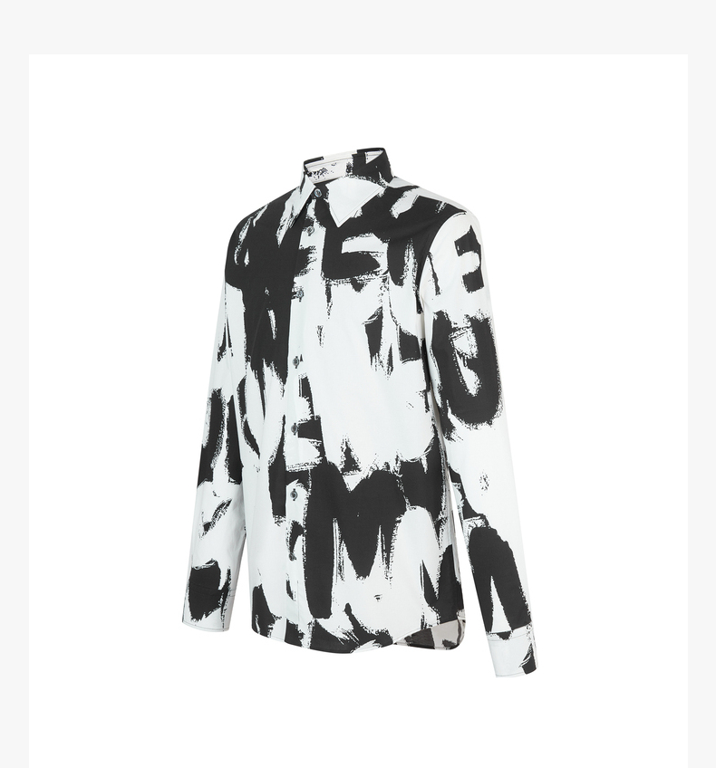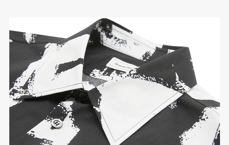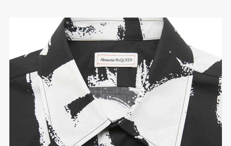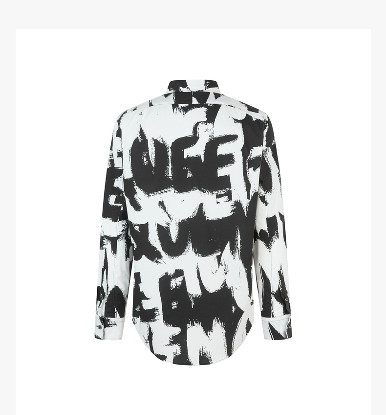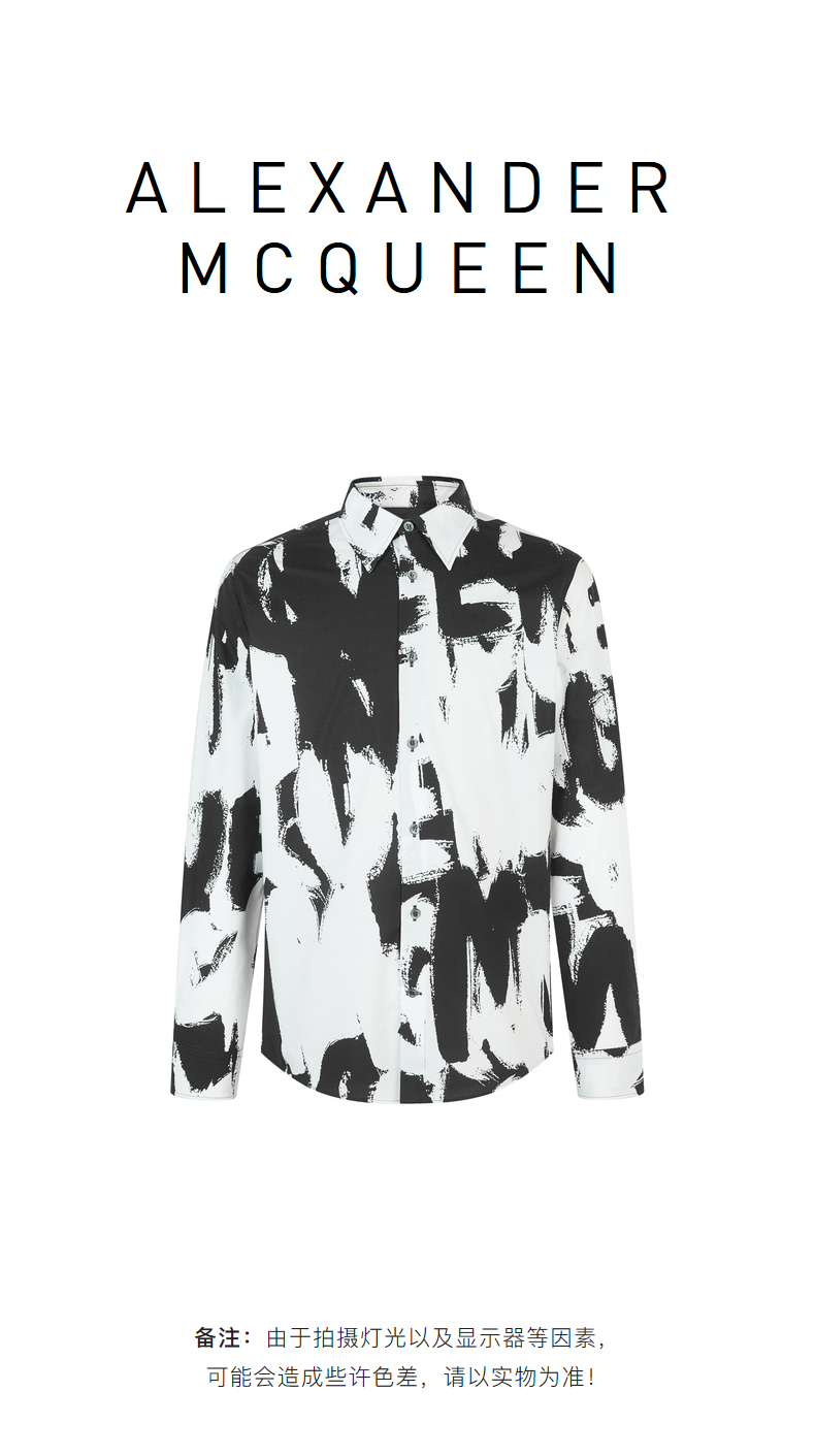 ALEXANDER MCQUEEN 亚历山大麦昆 2023春夏新品 男士字母涂鸦印花衬衫 黑色 704922 QTO66