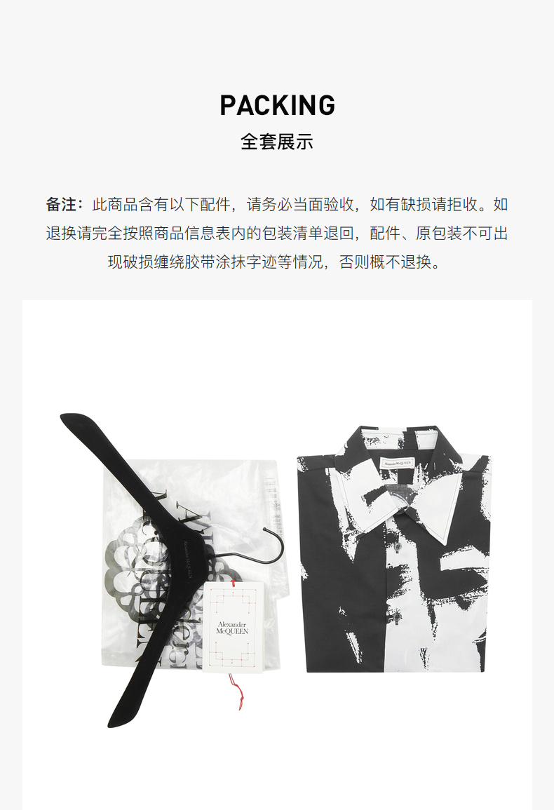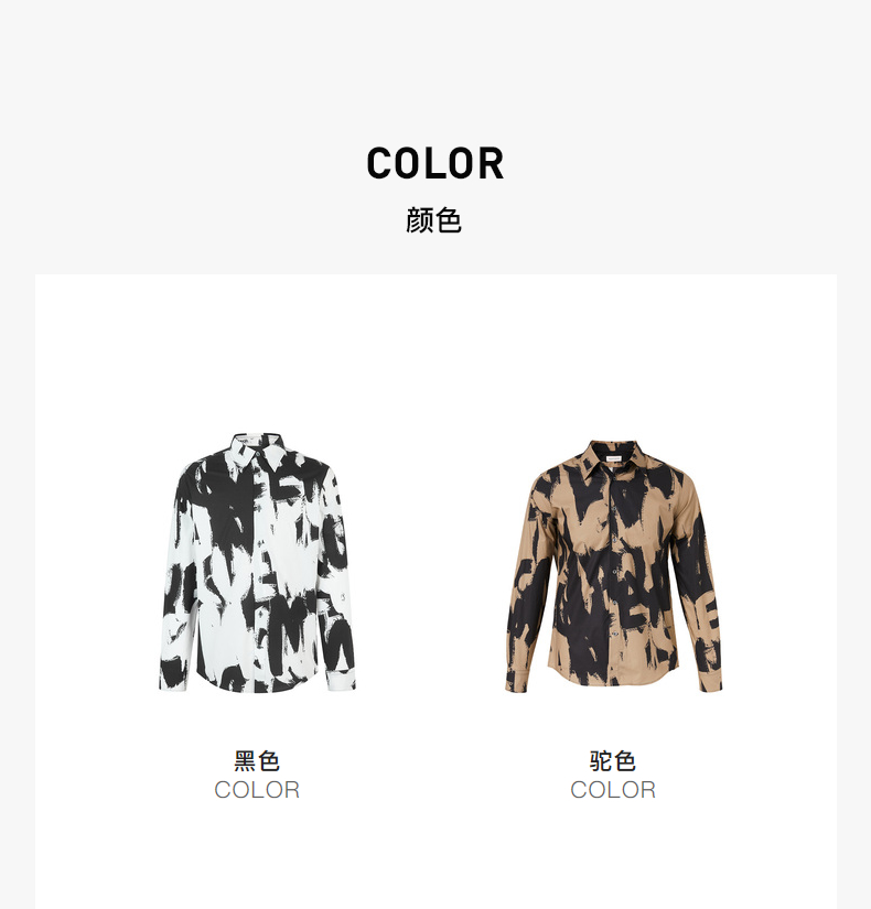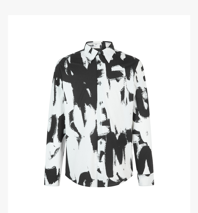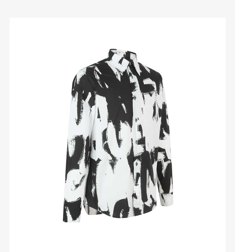 ALEXANDER MCQUEEN 亚历山大麦昆 2023春夏新品 男士字母涂鸦印花衬衫 黑色 704922 QTO66