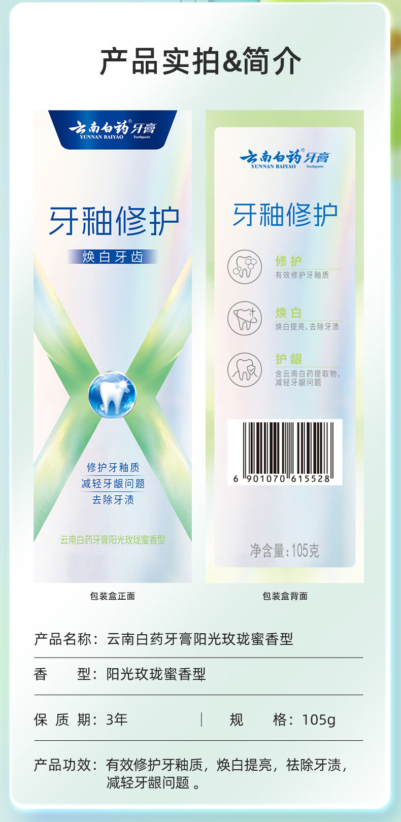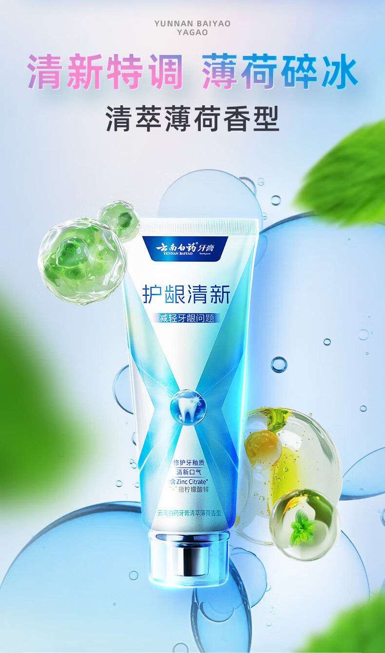 【官方正品】云南白药牙膏X护系列护龈清新含氟防蛀修护牙釉质独特配方清萃薄荷香型