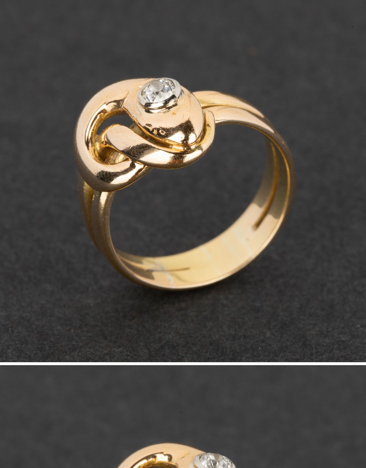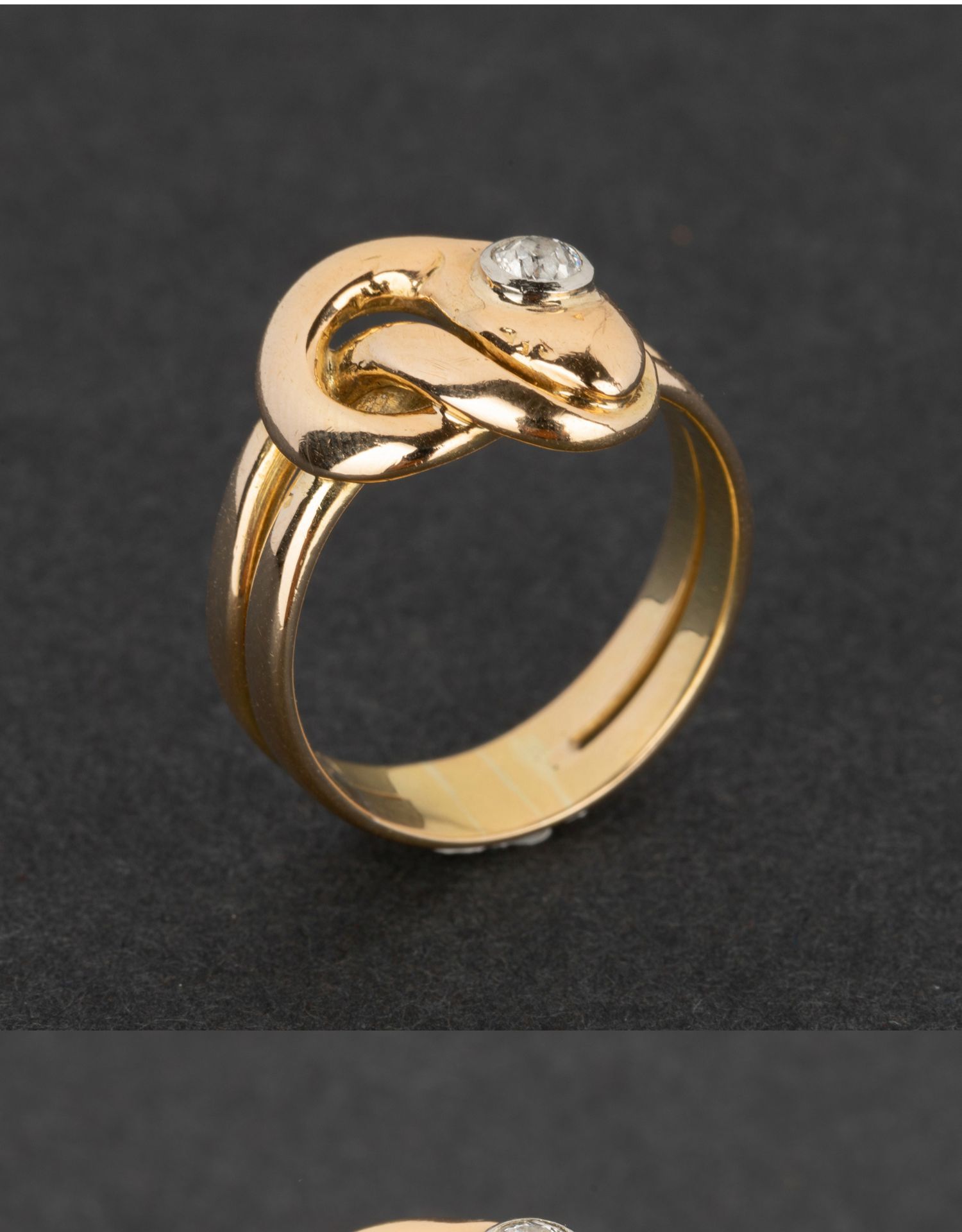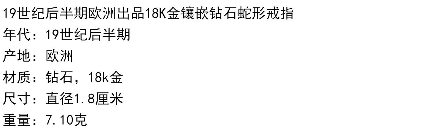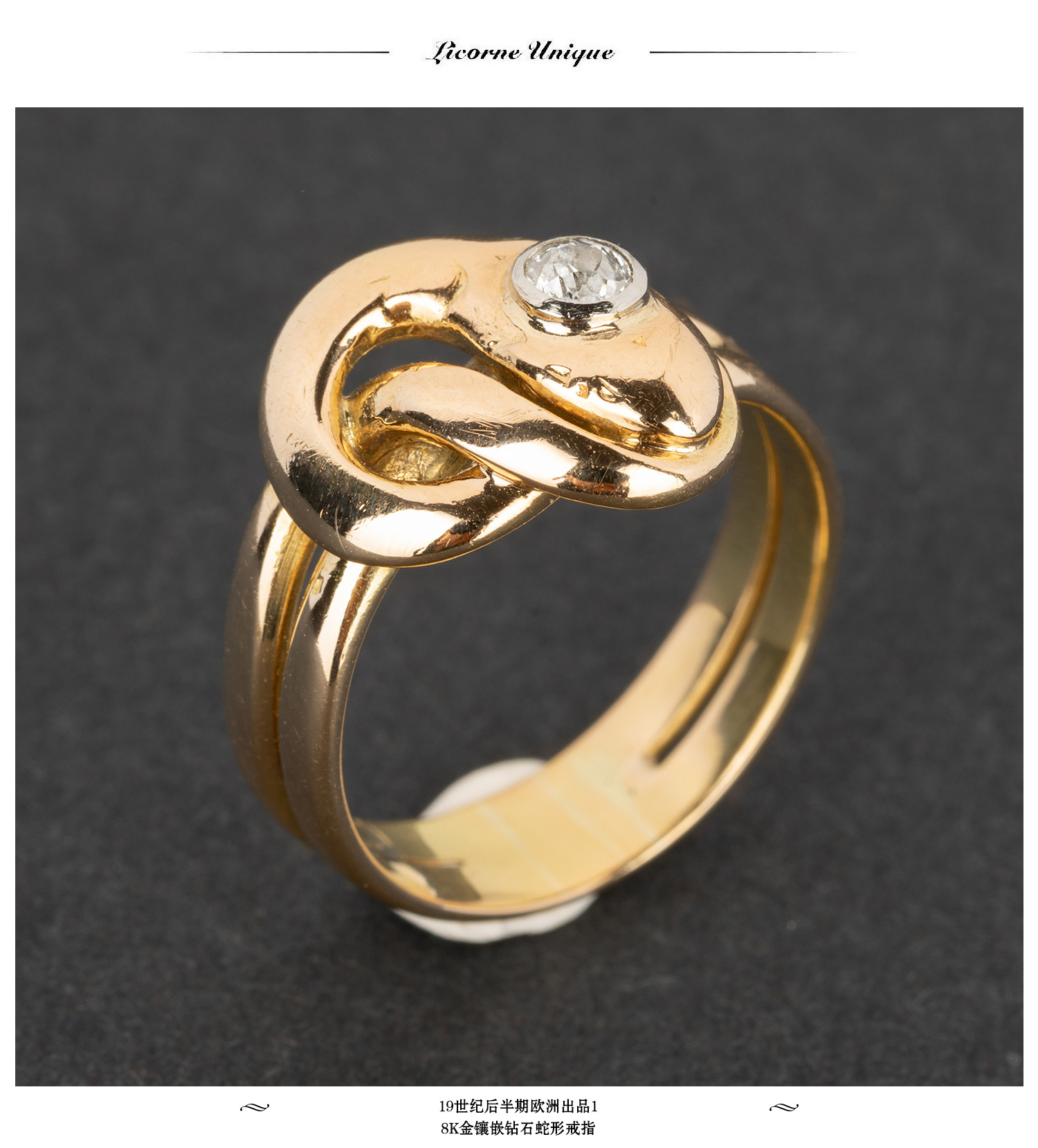 独角鹿西洋古董珠宝首饰19世纪后半期欧洲18K金镶嵌钻石蛇形戒指