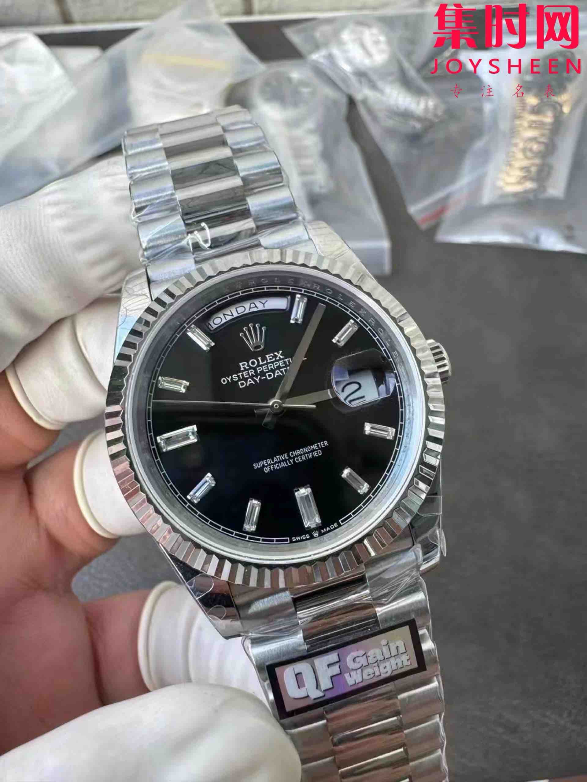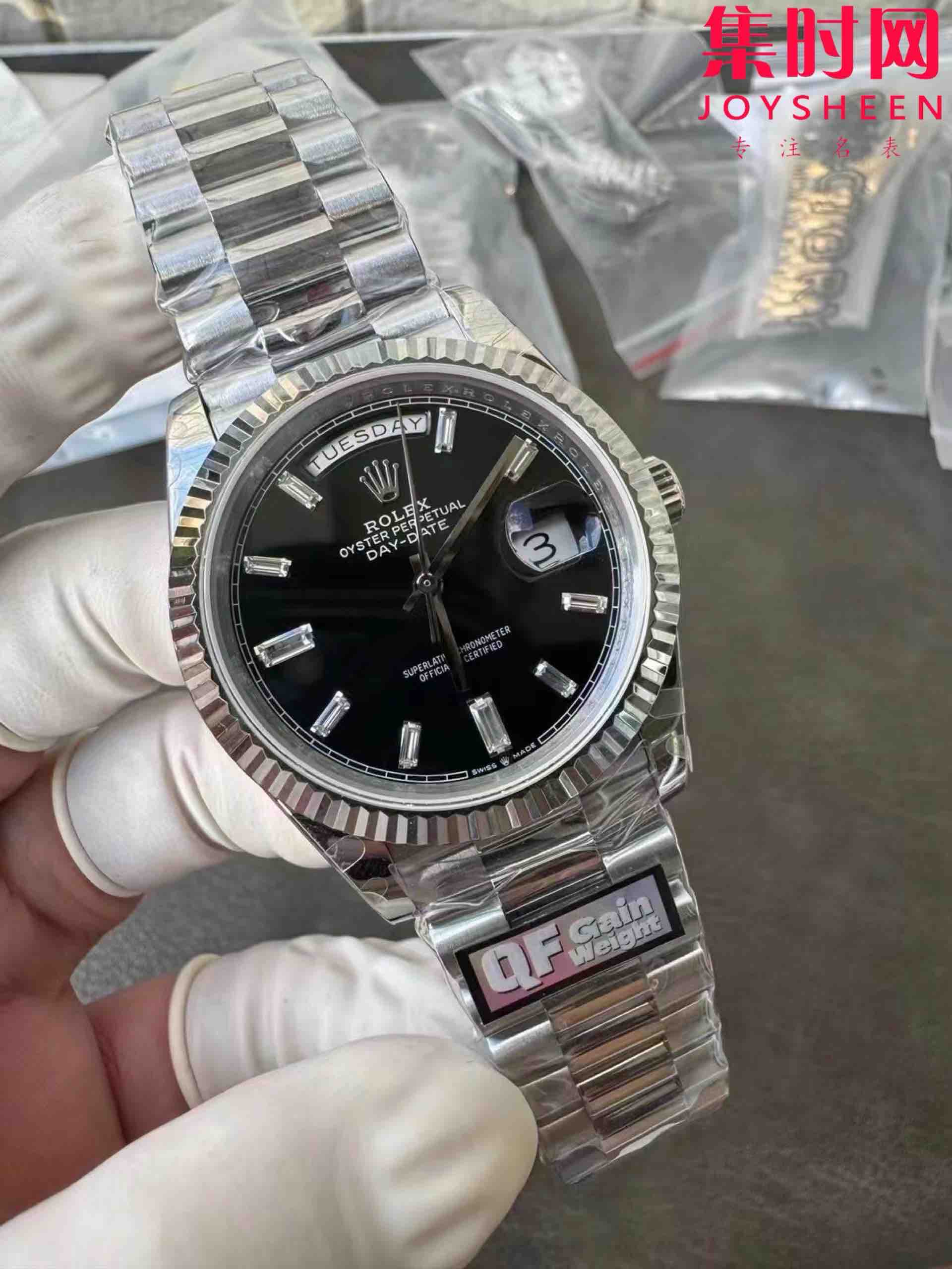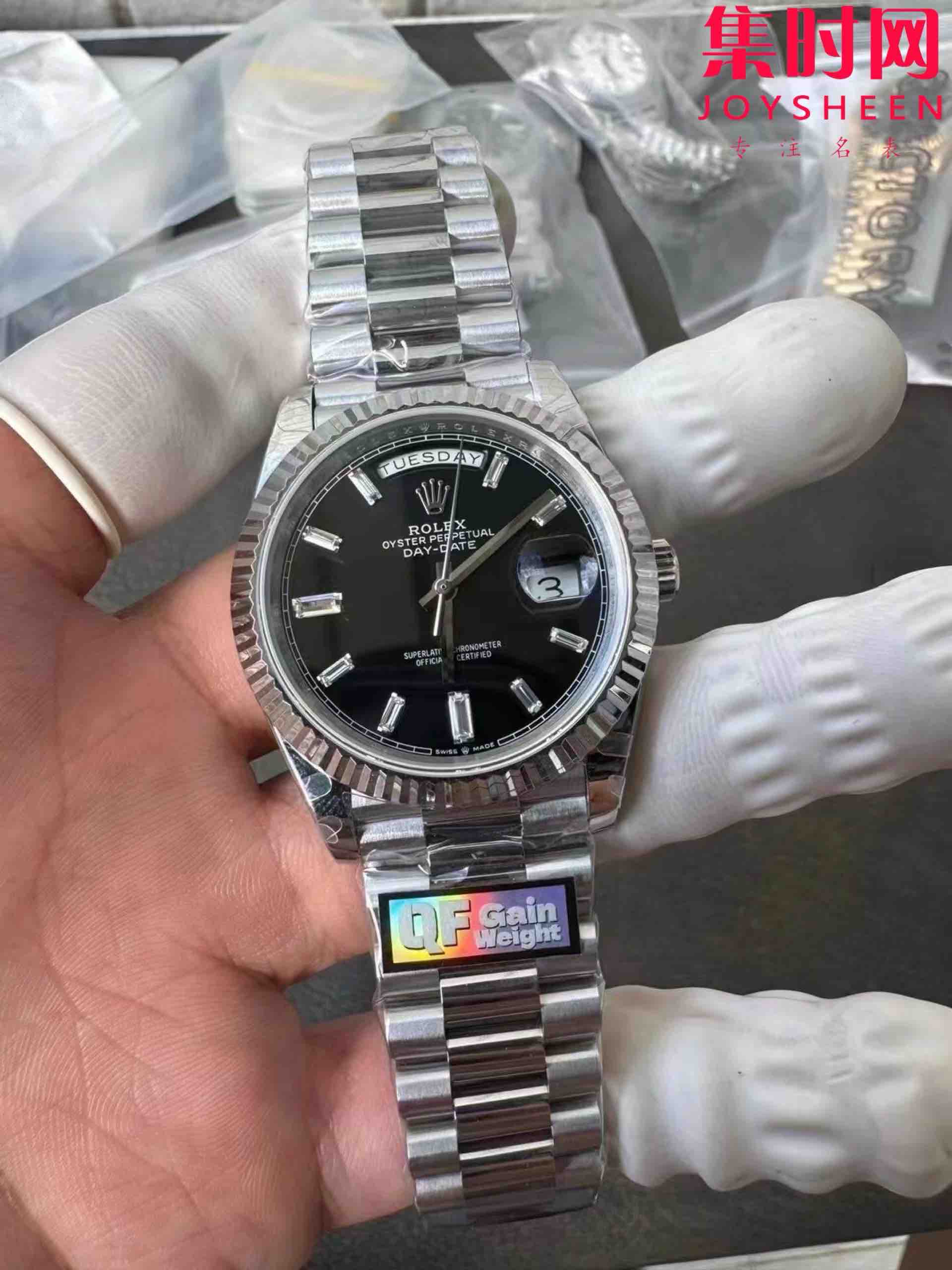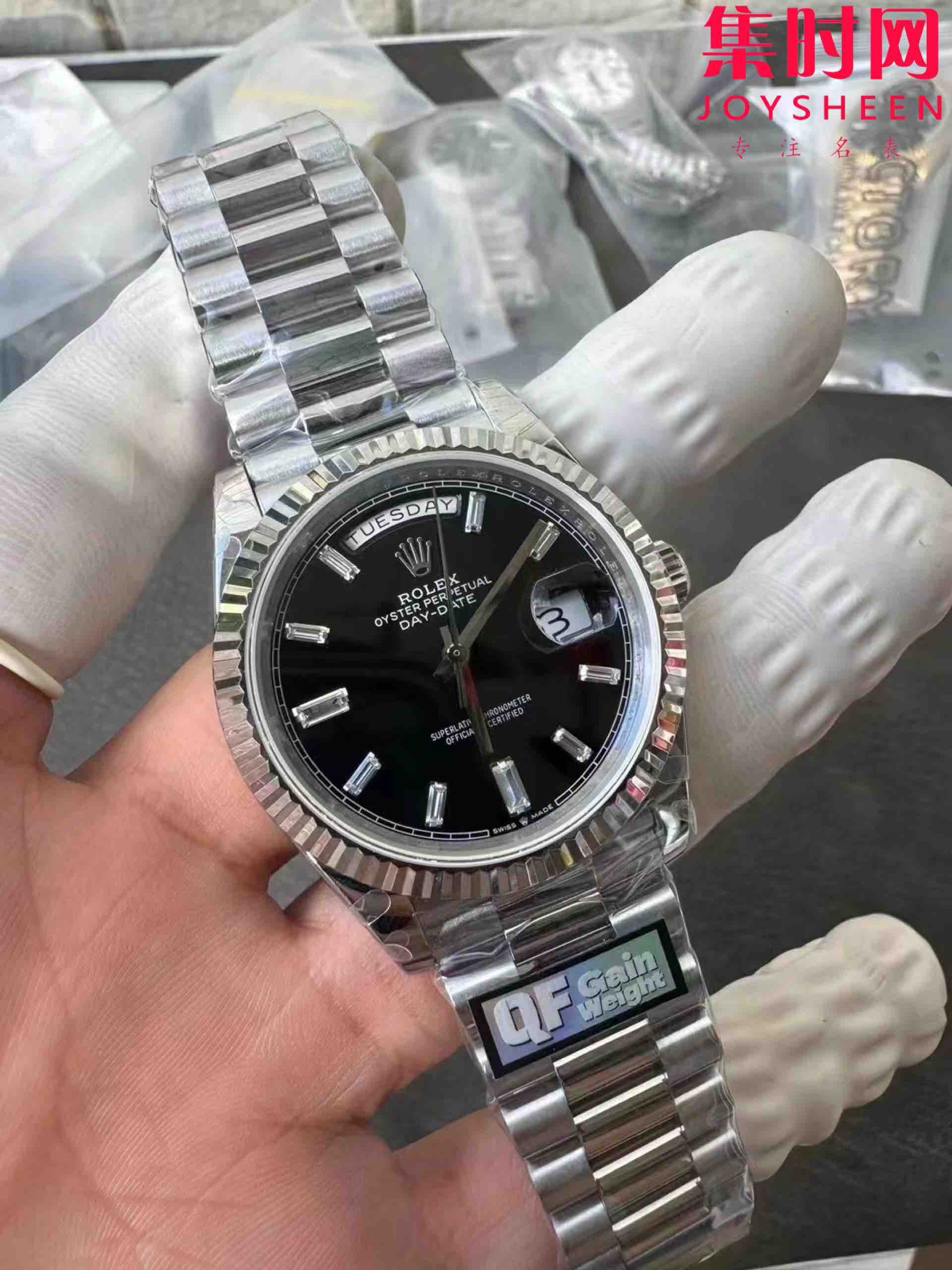 QF配重版 重量180克+ 劳力士星期日历型系列 日志40mm 白金黑冰糖DD