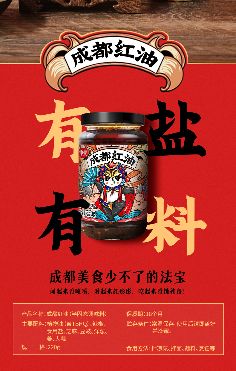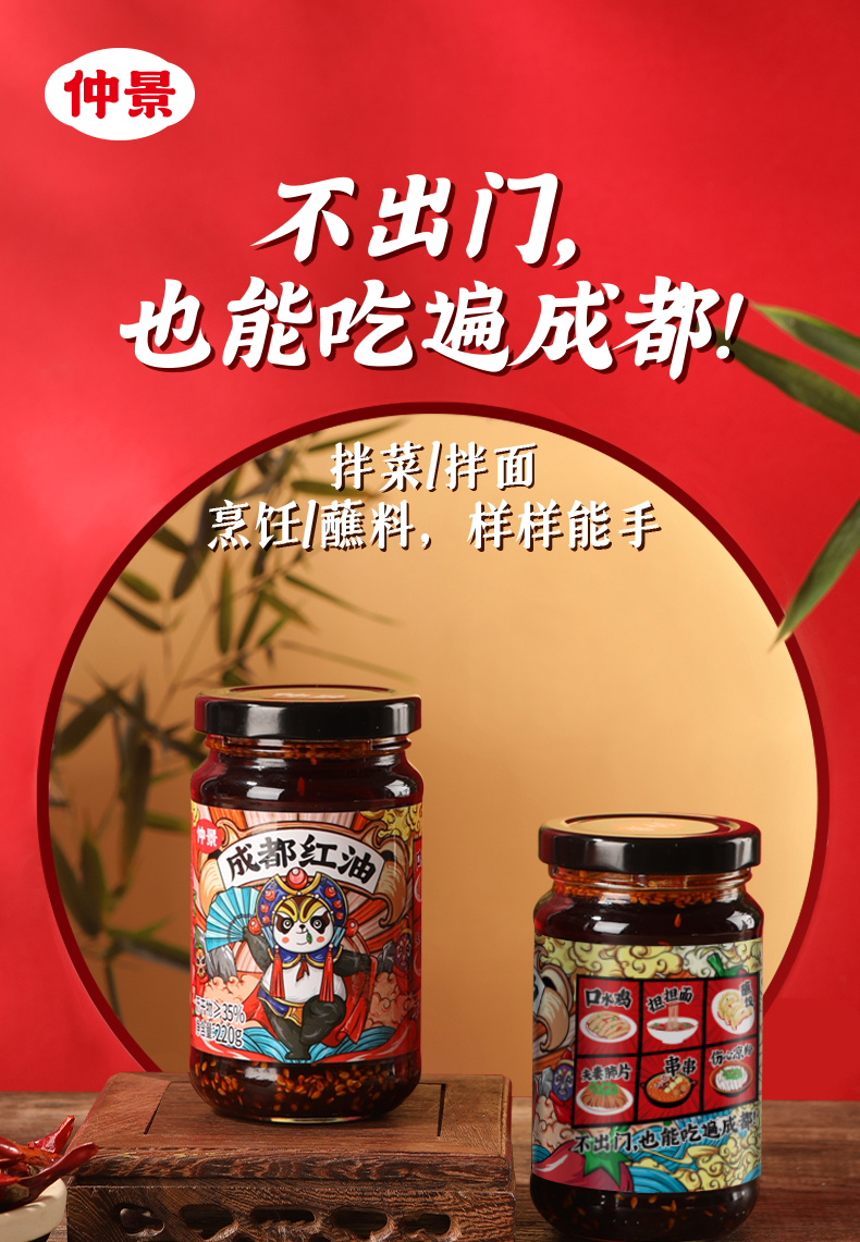 仲景 成都红油 辣椒油 四川油泼辣子 220g/瓶