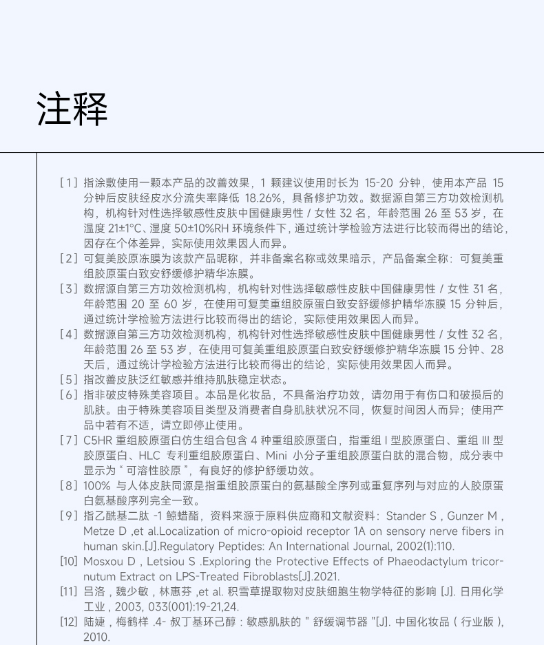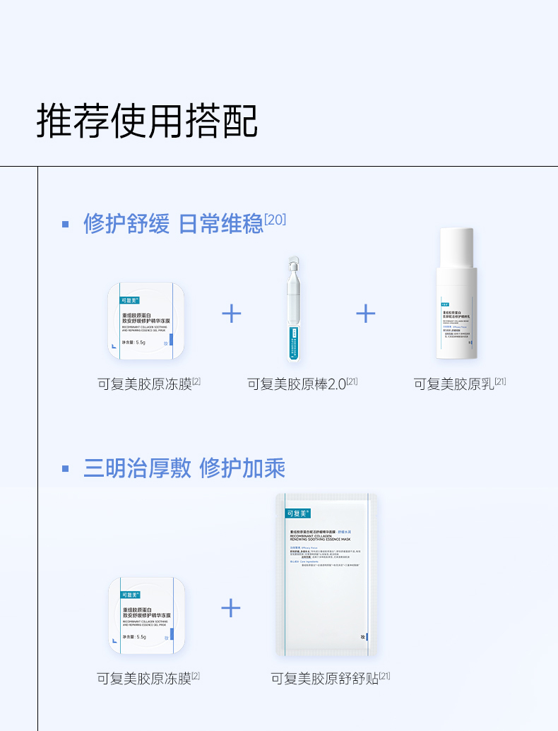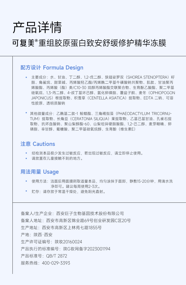【可复美胶原冻膜】可复美重组胶原蛋白致安舒缓修护精华冻膜 5.5g*10颗/盒