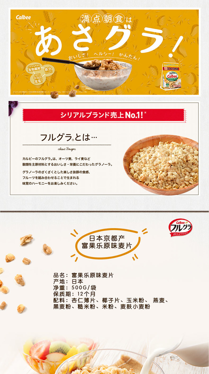 日本进口 卡乐比 北海道黄金混合燕麦片500g冲饮即食早餐