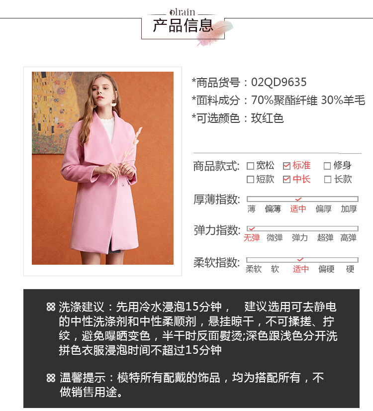 “精致”是欧芮儿olrain品牌文化的核心,欧芮儿认为,精致的女人,不但要外在动人,更要内在迷人,内外兼修,有魅力、有气质、有内涵,自信而不自傲,优雅而不矫揉,自有万种风情而不轻浮,更不故作矜持。