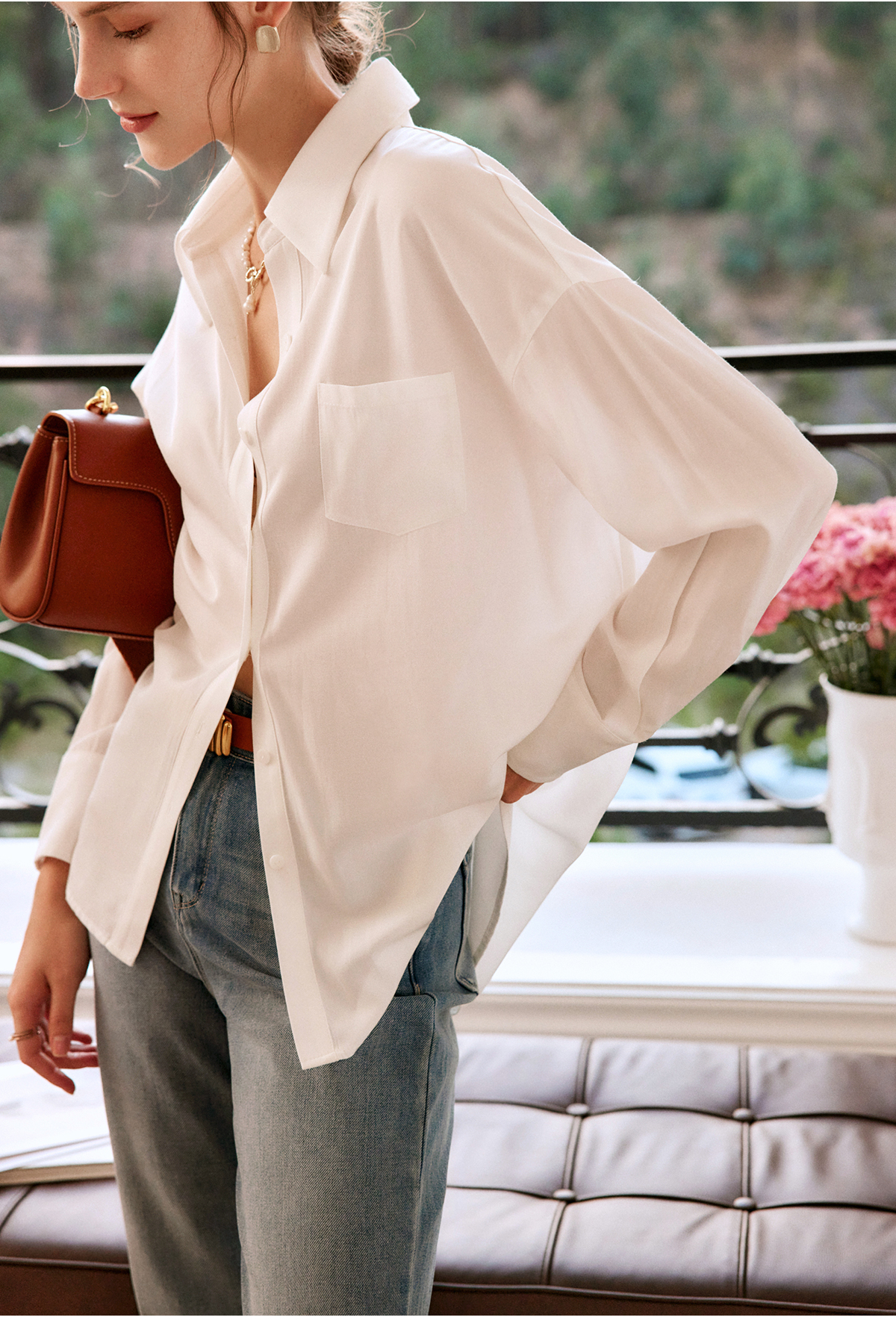 欧芮儿法式白色衬衫女2025秋新款气质休闲通勤长袖衬衣上衣高级感