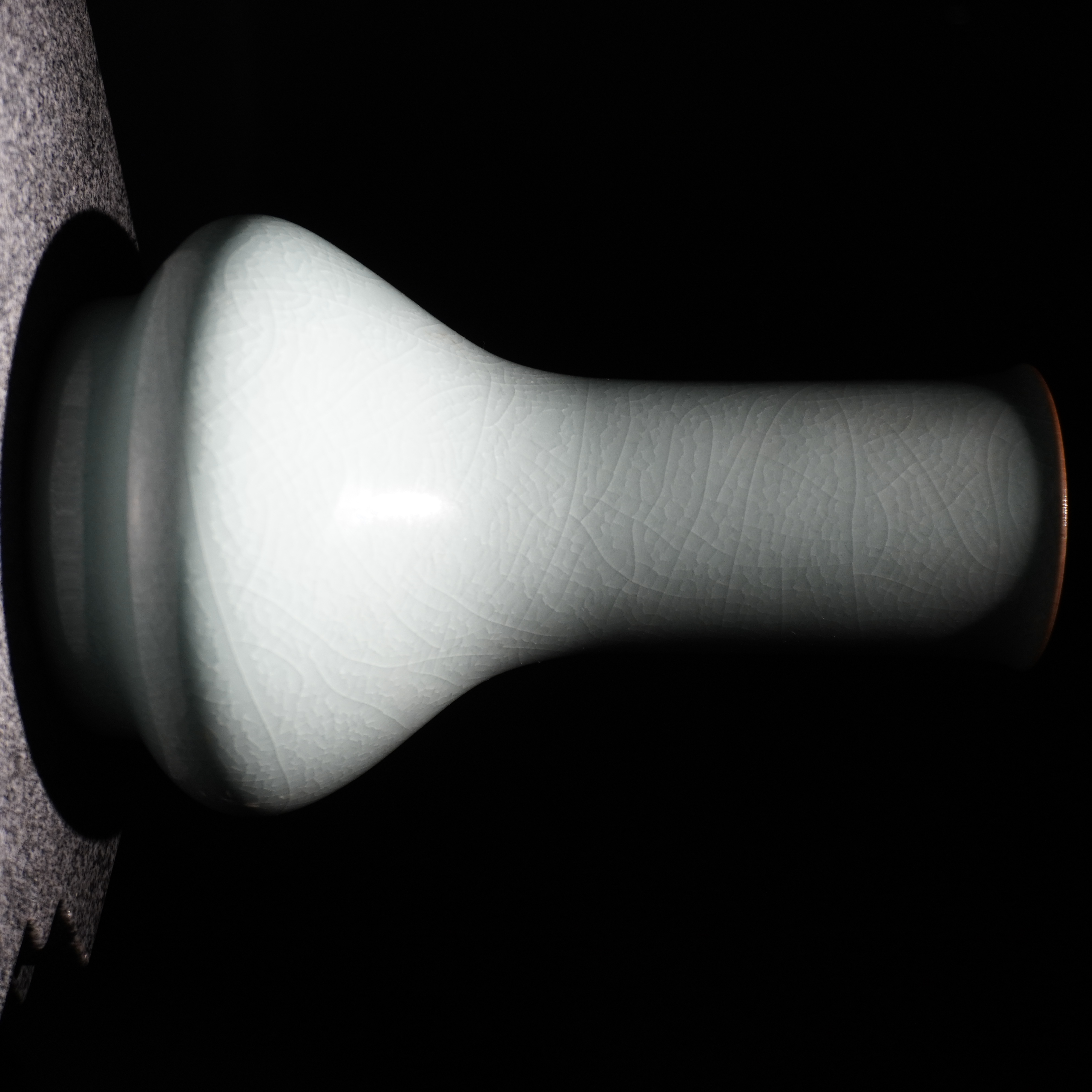 此瓶器形优美,线条流畅,釉质莹润,典雅高贵,为茶席案头陈设之佳器。