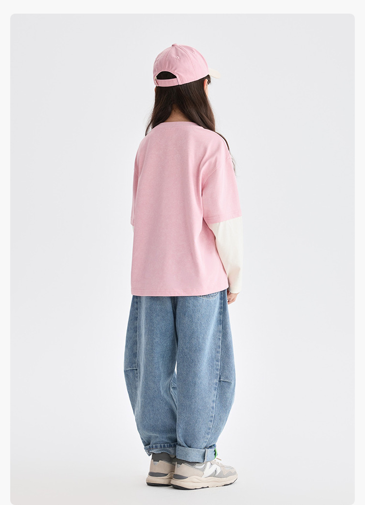 漫画家【糯糯衣】儿童T恤25秋冬男女童远红外蓄热保暖拼色打底衫