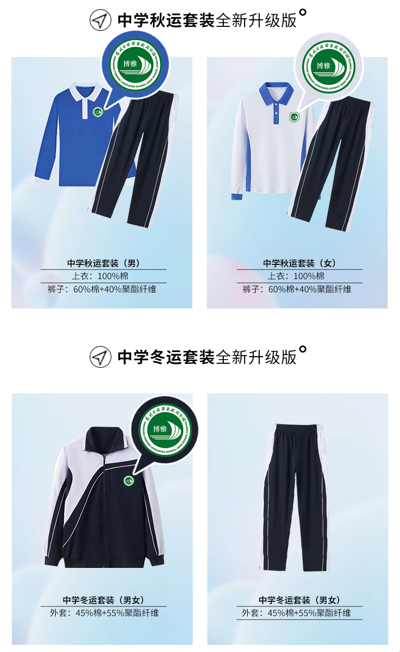 佛山市南海区英才学校(中学部)男女生夏秋冬校服(运动服+礼仪服)下单后一周内发货