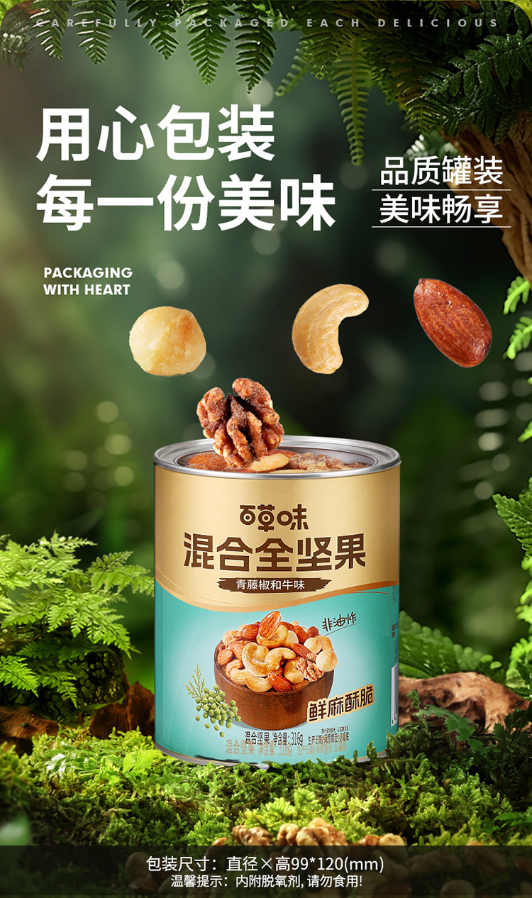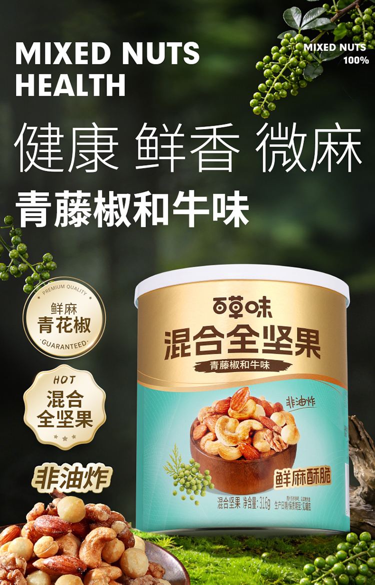 【百草味】混合全坚果 青藤椒和牛味316g 非油炸更健康