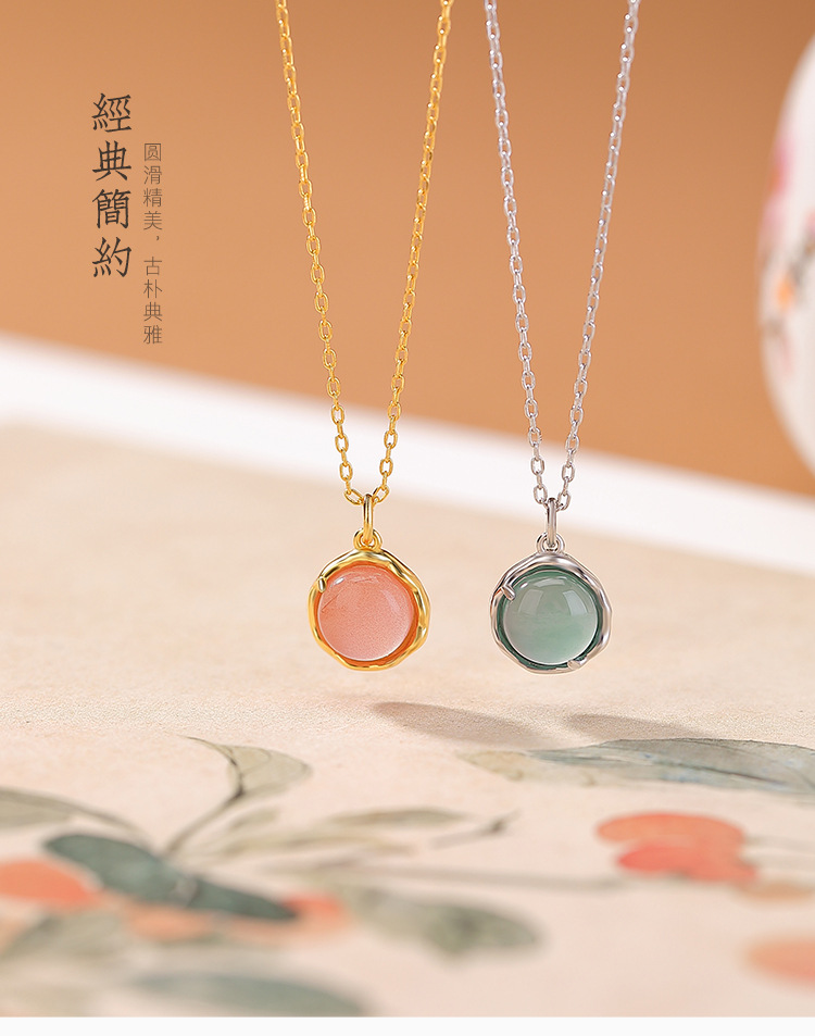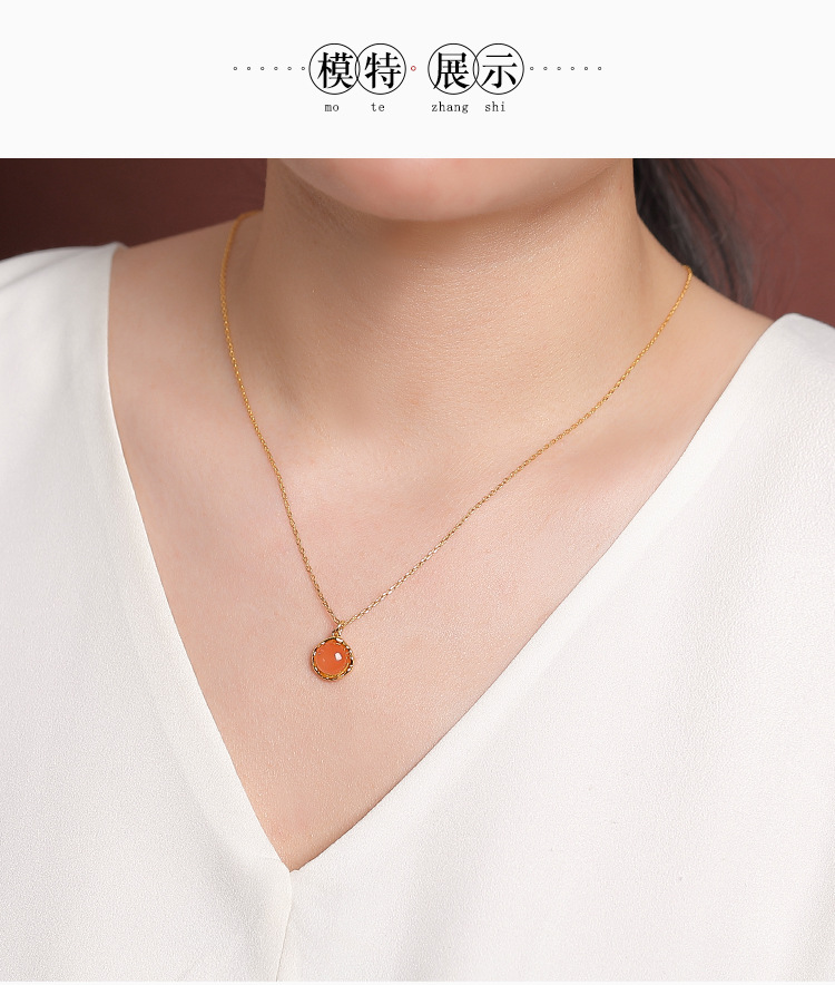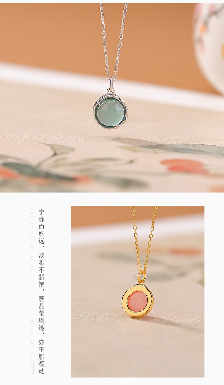 【景和岁安】S925纯银镀金水红南红玛瑙蓝水翡翠几何套链【CW-XL00575】