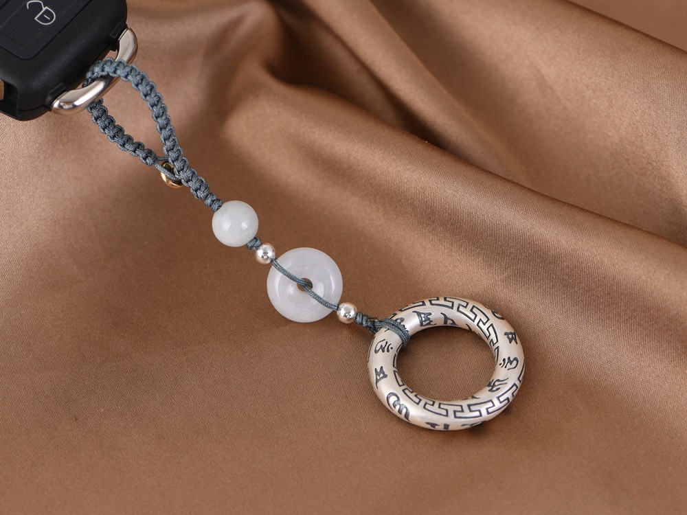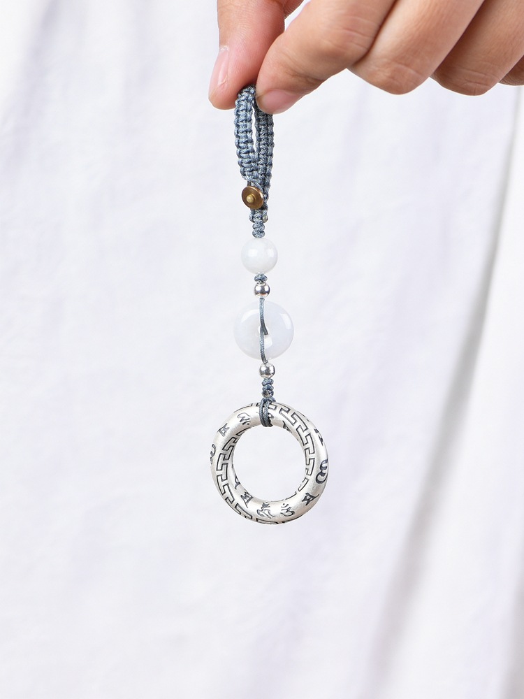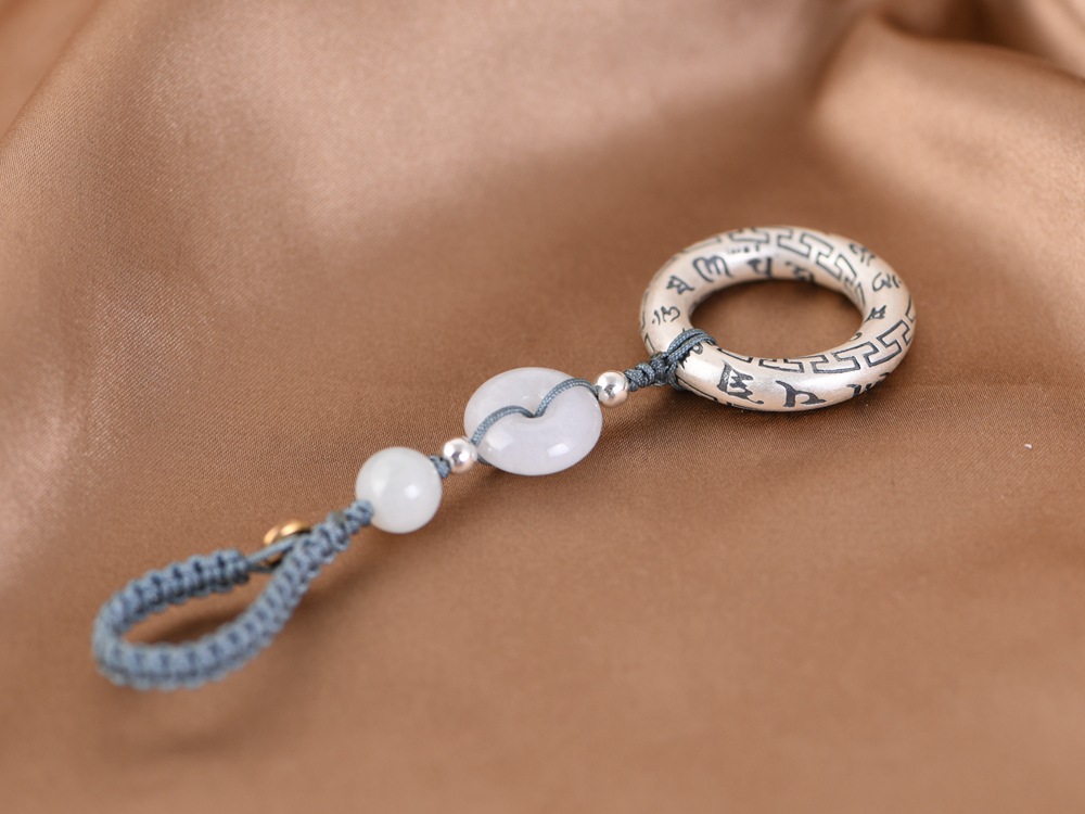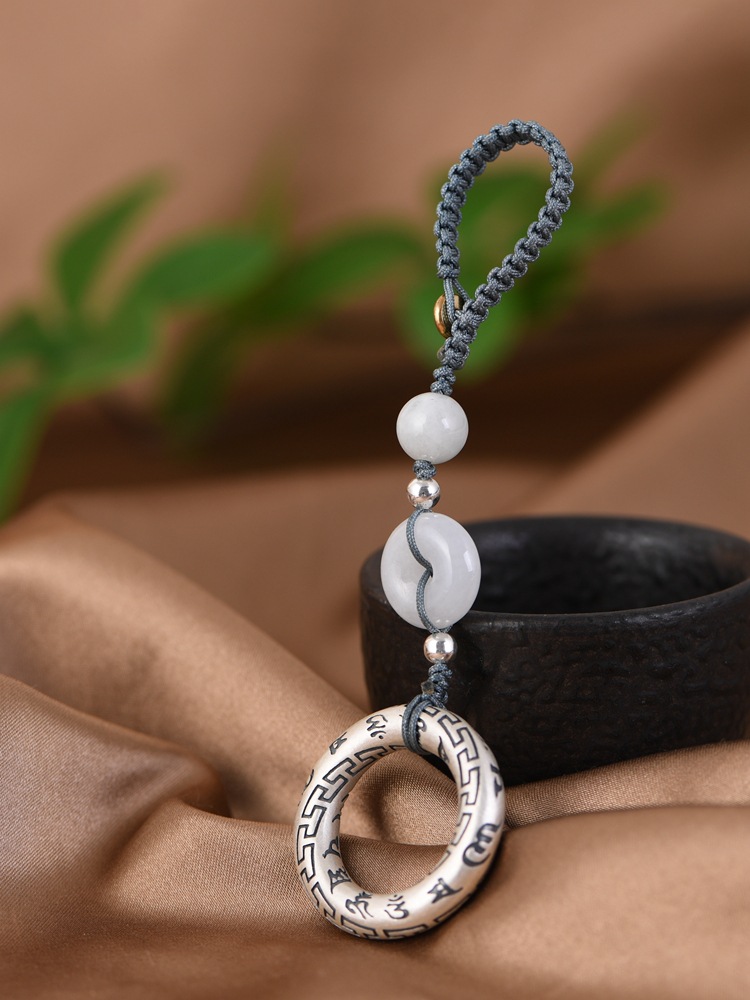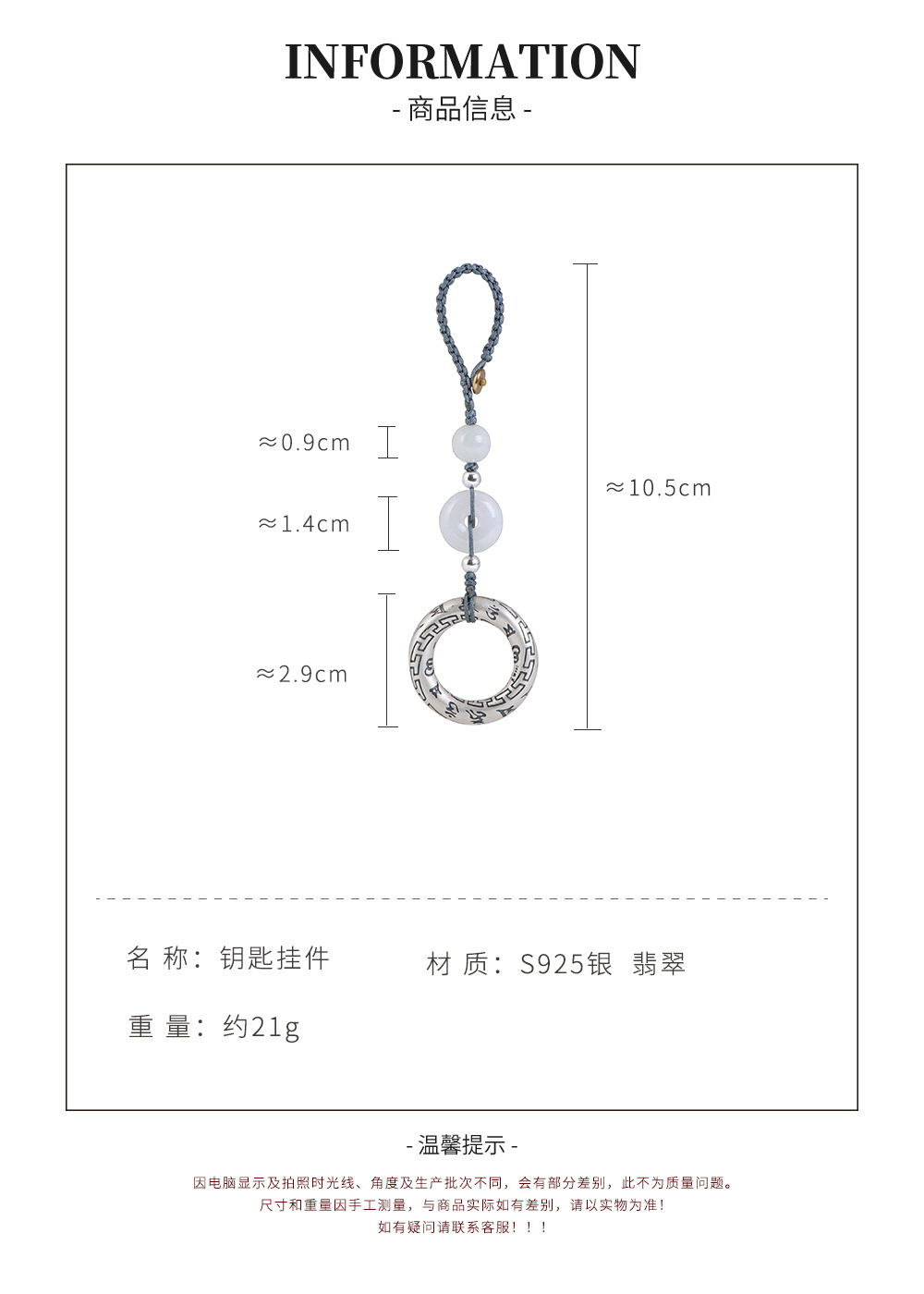 【相逢平安】S925银手工编绳翡翠平安扣钥匙扣【SCH-SY17220】