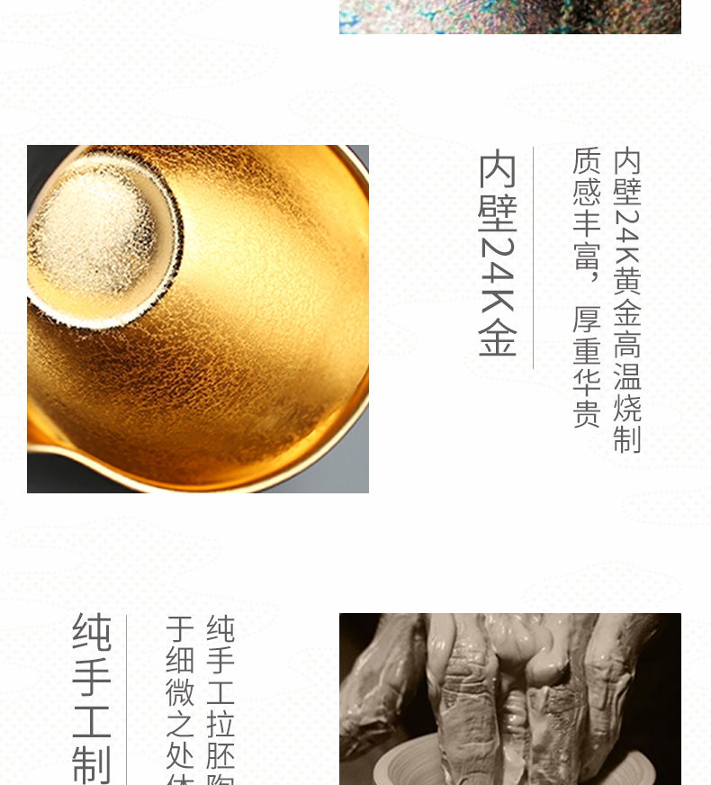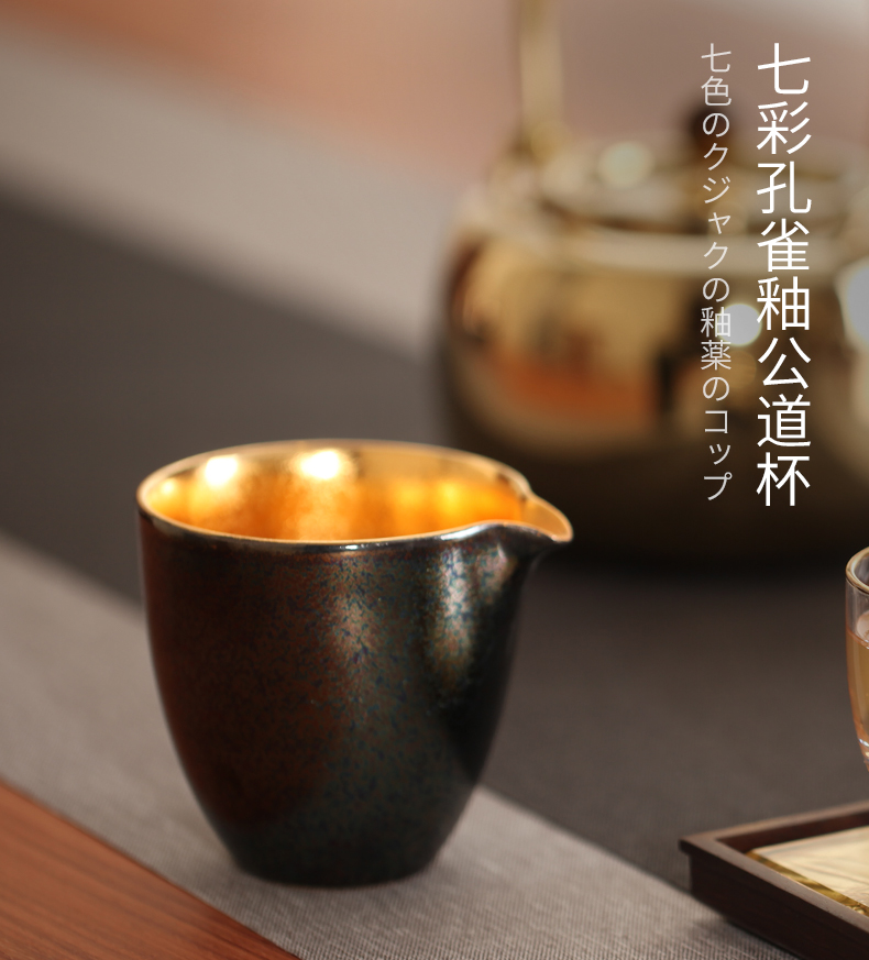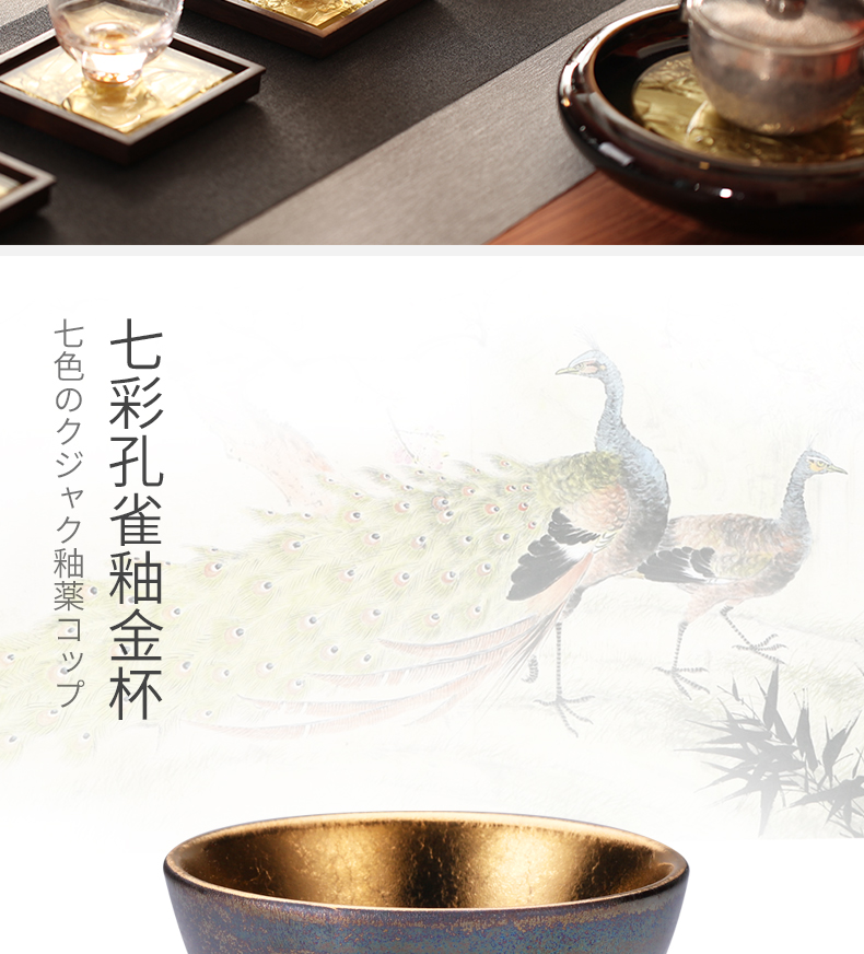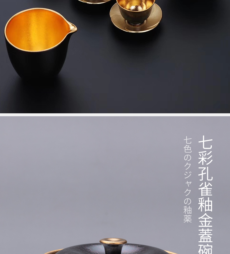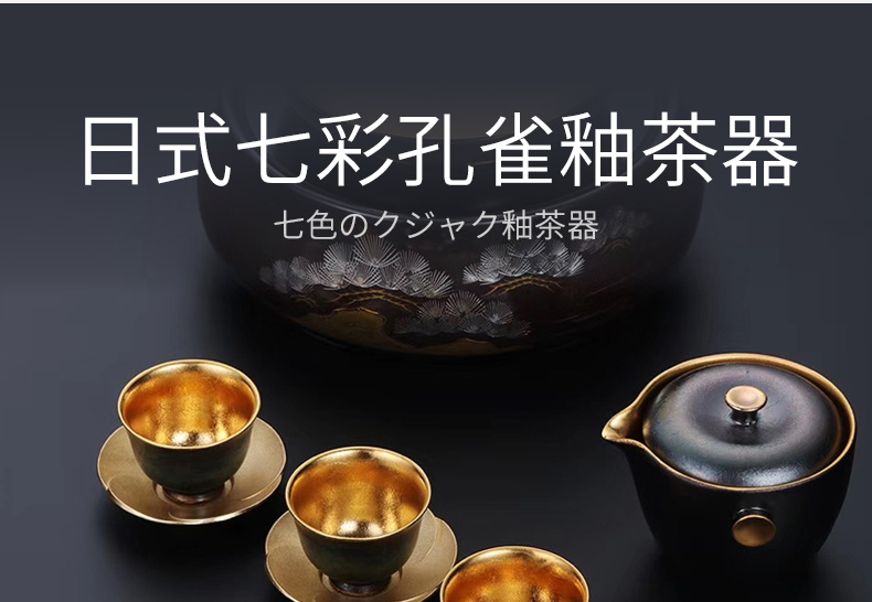莺歌烧 孔雀 釉莺歌 24K 金盖碗金公道金杯 日式金杯公道杯盖碗家用茶杯茶具茶道