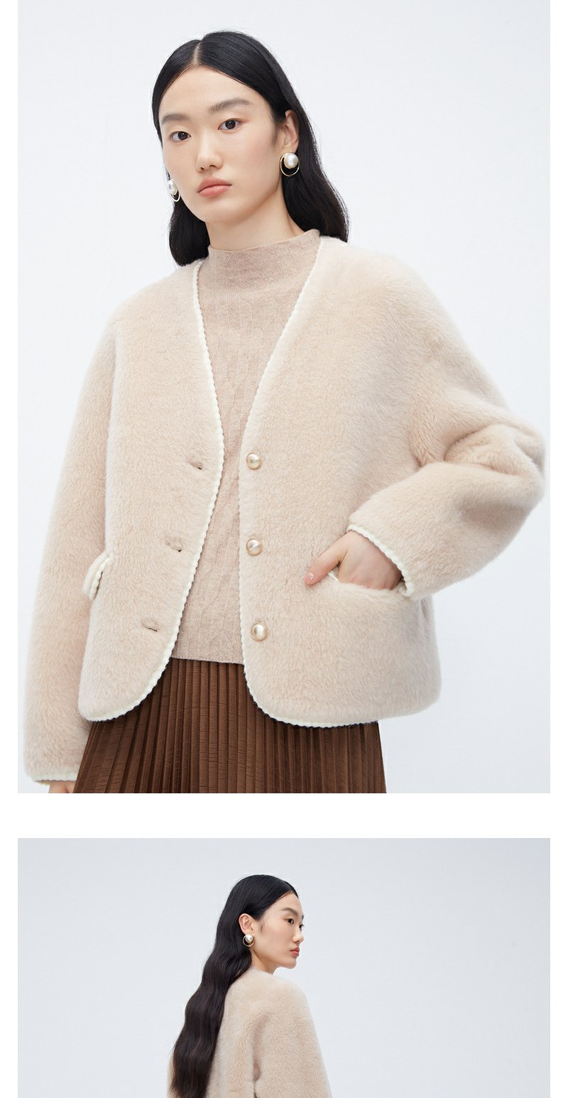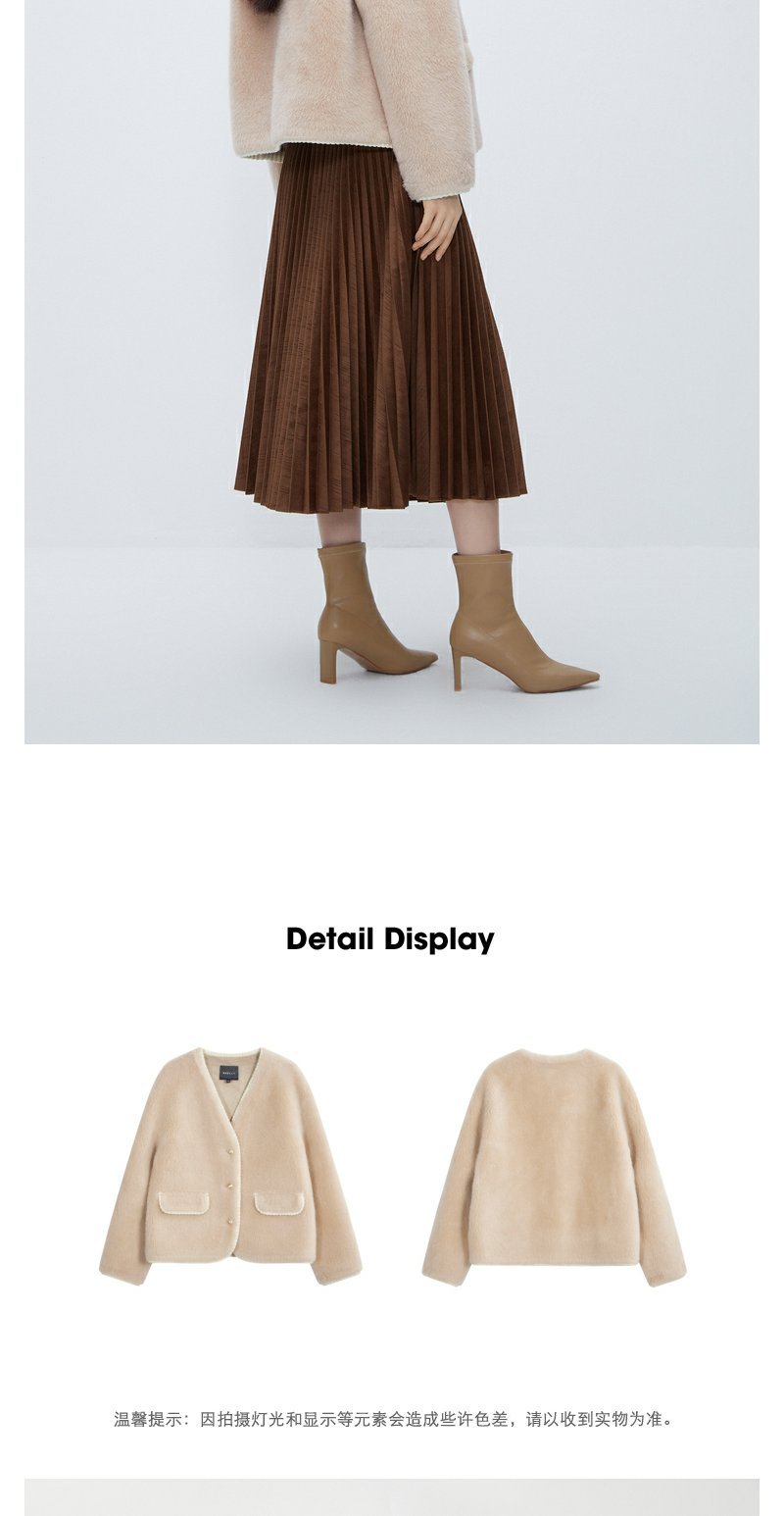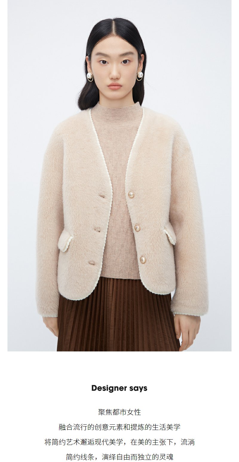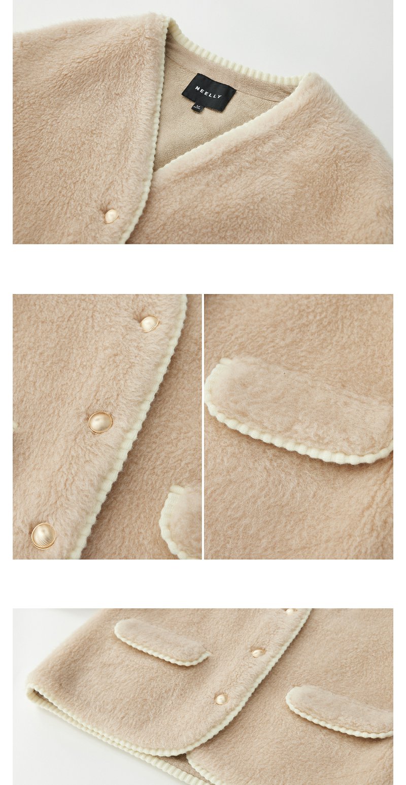 NEELLY纳俪商场同款*绵羊毛皮草外套女短款高级感保暖毛毛外套N24104C04611