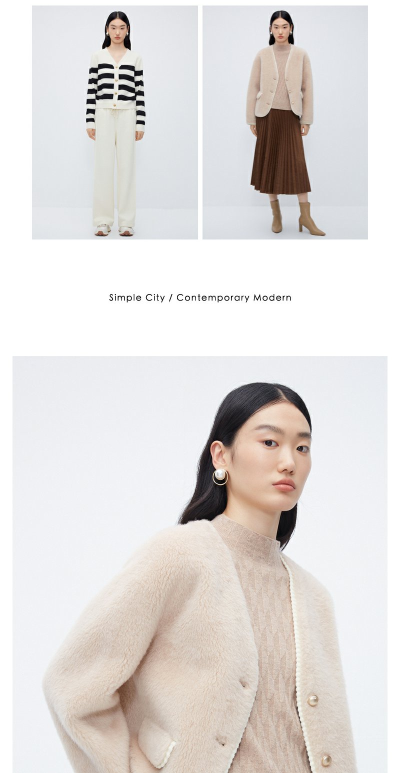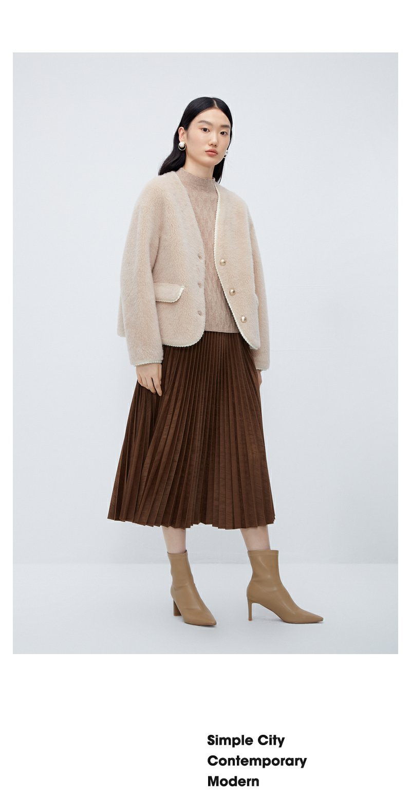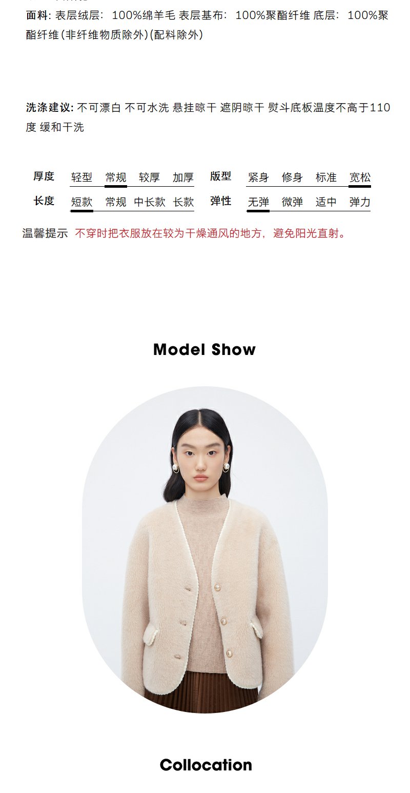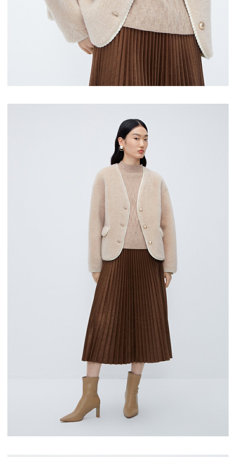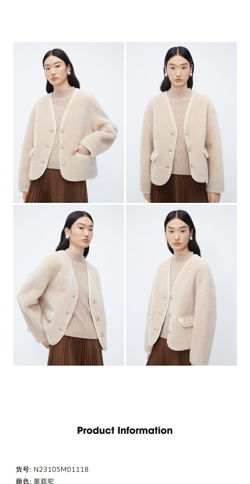 NEELLY纳俪商场同款*绵羊毛皮草外套女短款高级感保暖毛毛外套N24104C04611