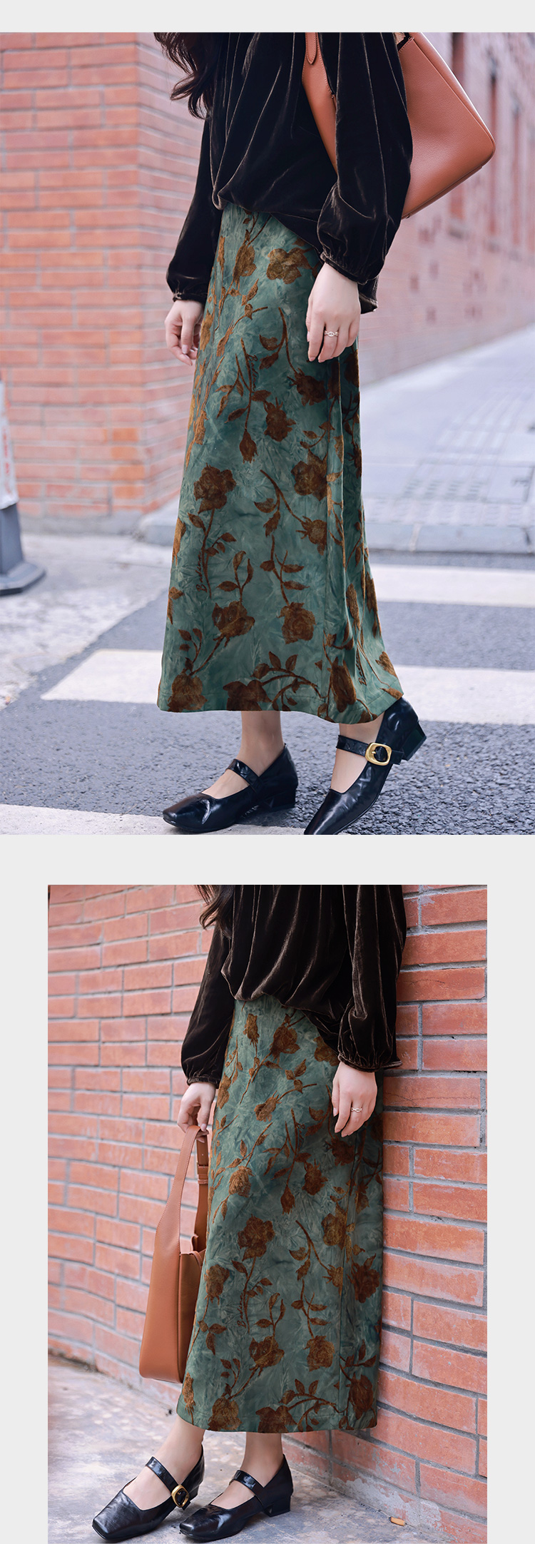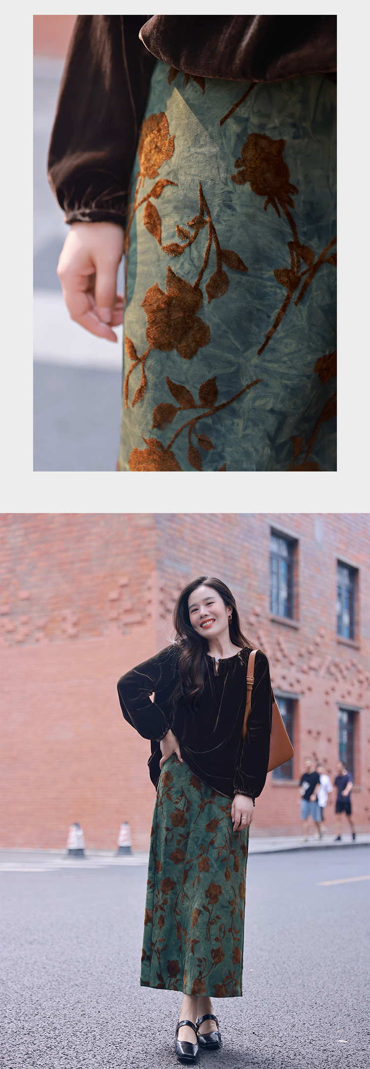 新中式植绒复古H型显瘦修身半裙