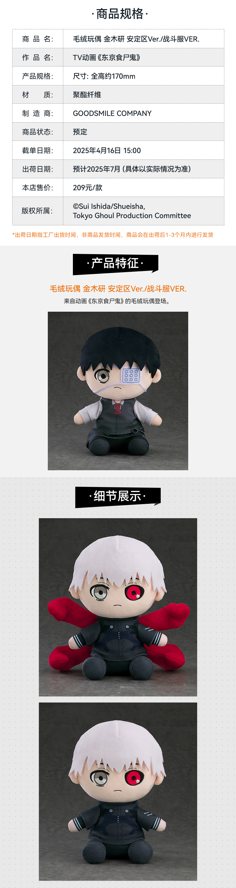 【GSC补款】毛绒玩偶 金木研 安定区Ver./战斗服VER. Tokyo Ghoul